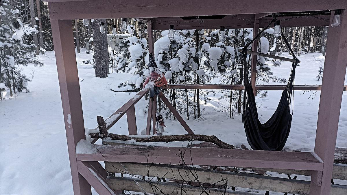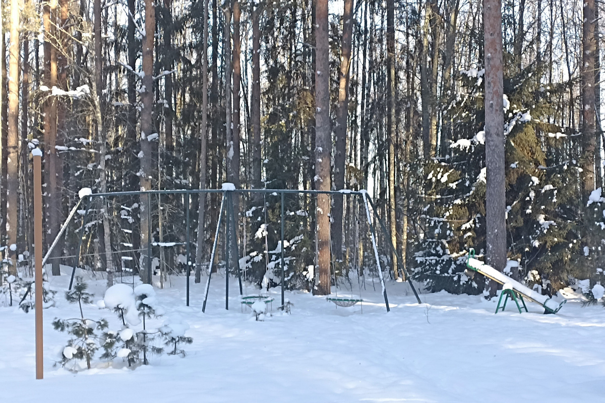Позже уже, гуляя по базе после рыбалки, нашли и детские площадки, правда по зиме, да еще в такие морозы, они были не сильно востребованы.