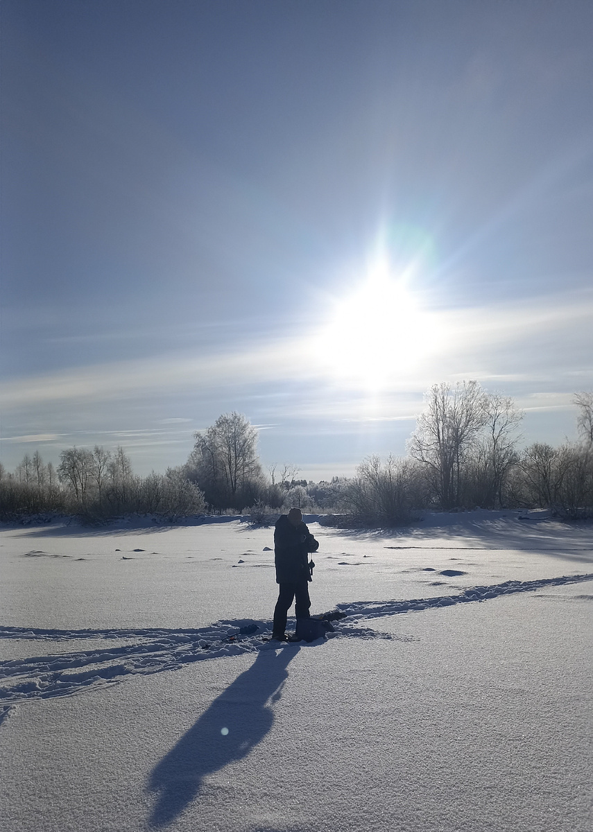 Выехали довольно рано, и с самого начала отошли от плана. Мороз минус двадцать шесть отбивал охоту заниматься жерлицами и донками. Поэтому проигнорировали живцов, и по пути взяли только мотыля. Я б не брал и его, ограничился бы только блеснами, но все ж стоило подстраховаться на случай полного бесклевья на блесну.