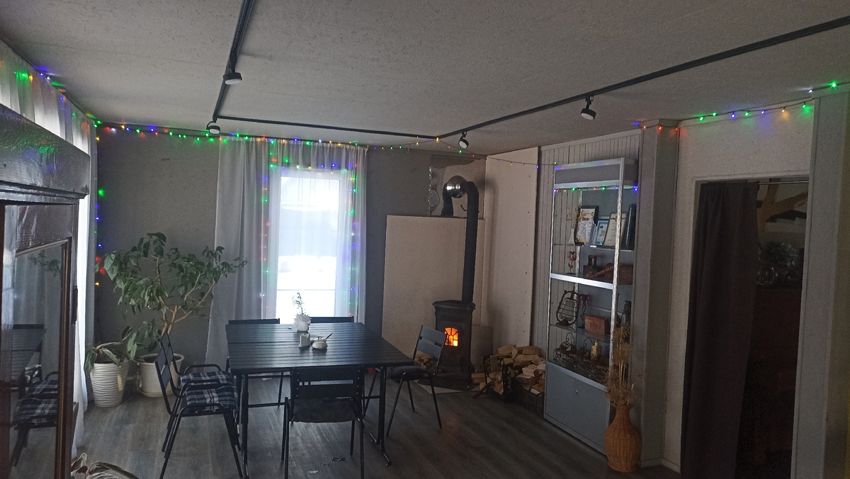 Но оказалось что первое впечатление обманчиво. Несмотря на обилие окон и стеклянных дверей, выходящих на летнюю веранду, в доме оказалось тепло. Да, конечно из-за экстремальных температур на улице, в домик поставили дополнительные радиаторы, и обаятельная и предупредительная администратор выдала нам дополнительные теплые пледы, но это оказалось не сильно востребованным. Пледами мы так и не воспользовались, а обогреватели включили и выключили, потому что оказалось жарковато. Теплоизоляция вполне современная.