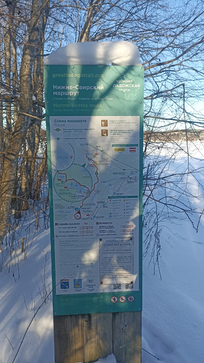 Вид на Свирь не очень впечатлил. Много торосов и вмерзший буй. Я ожидал более широкой реки.