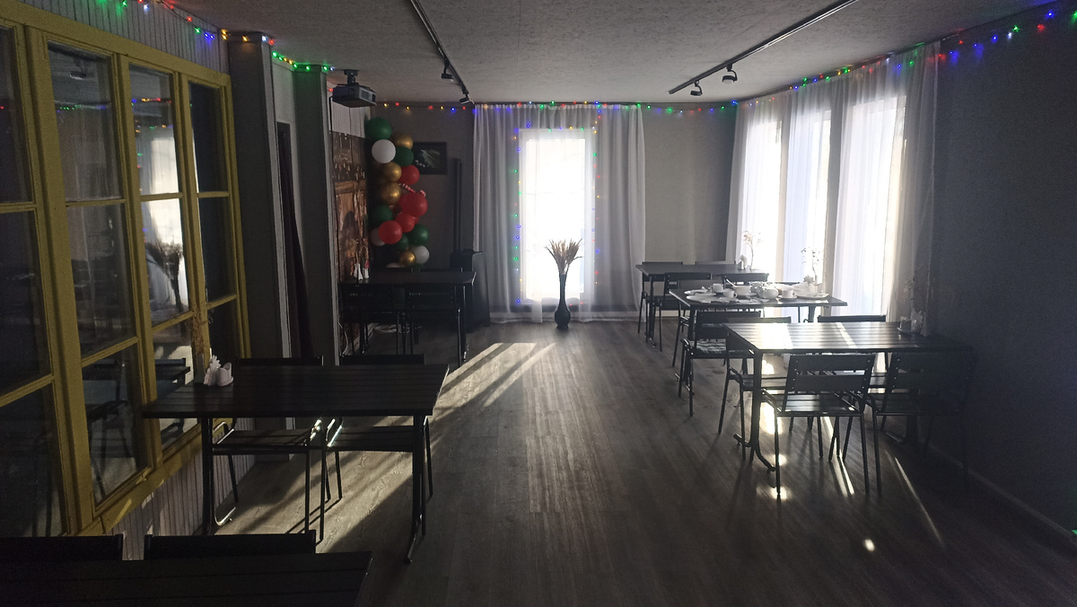Если нет желания готовить самим, есть возможность питания в ресторане. Комплексное трехразовое питание. Уютный небольшой зал.