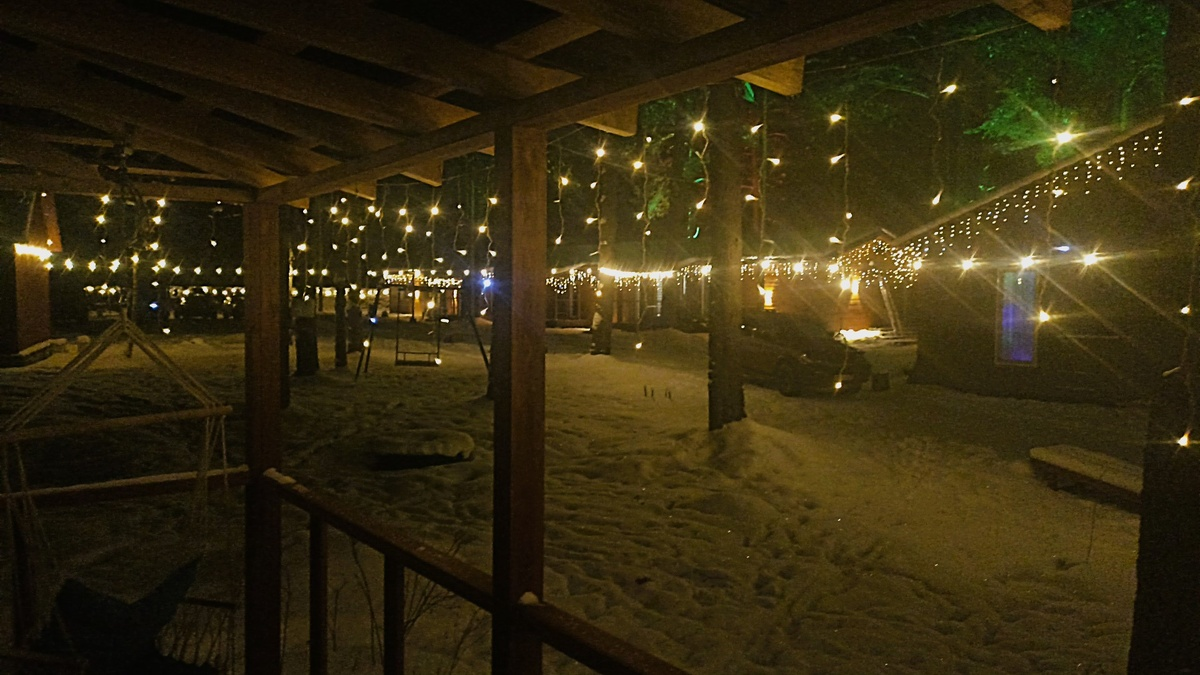 А вечером оказалась, что база еще очень душевно украшена подсветкой. Не знаю, осталось ли это с новогодних праздников, или это просто следствие того, что администрация старается сделать пребывание на базе радостным и красивым. Но в ночи все смотрится очень празднично.