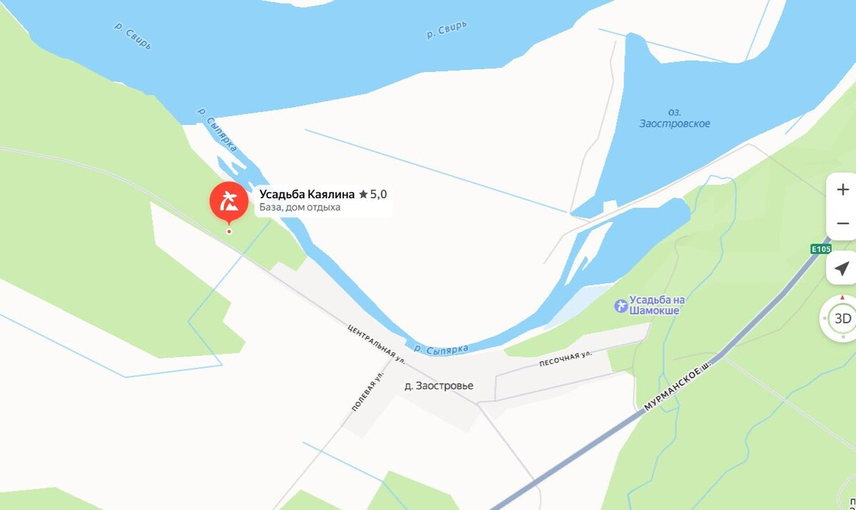 Причем местные рыбаки приезжают ловить несколько дальше базы, к месту окончания дороги, туда, где раньше ходил паром на другой берег.Но до туда от базы 2 километра. А с базы по Сыпярке до Свири около 300 метров.