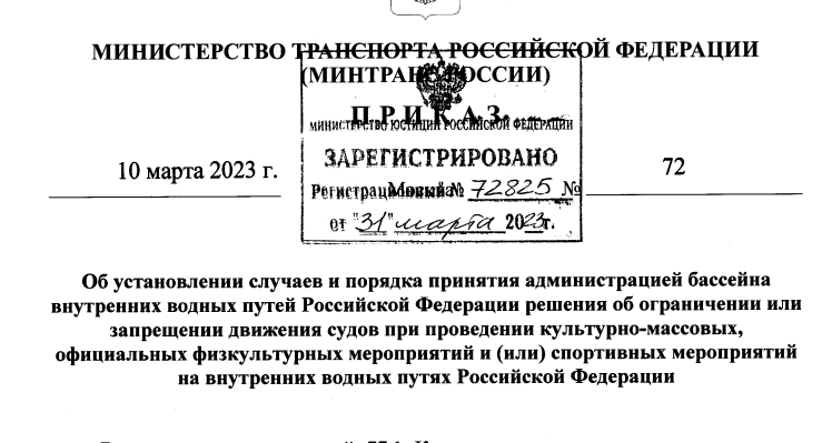· участником мероприятия может быть любой владелец водномоторного плавсредства, удовлетворяющего своим техническим состоянием требованиям прохождения маршрута. Владельцы плавсредств, требующих государственной регистрации, должны иметь соответствующие документы (судовой билет маломерного судна, свидетельство о прохождении технического осмотра, права на управление судном);
