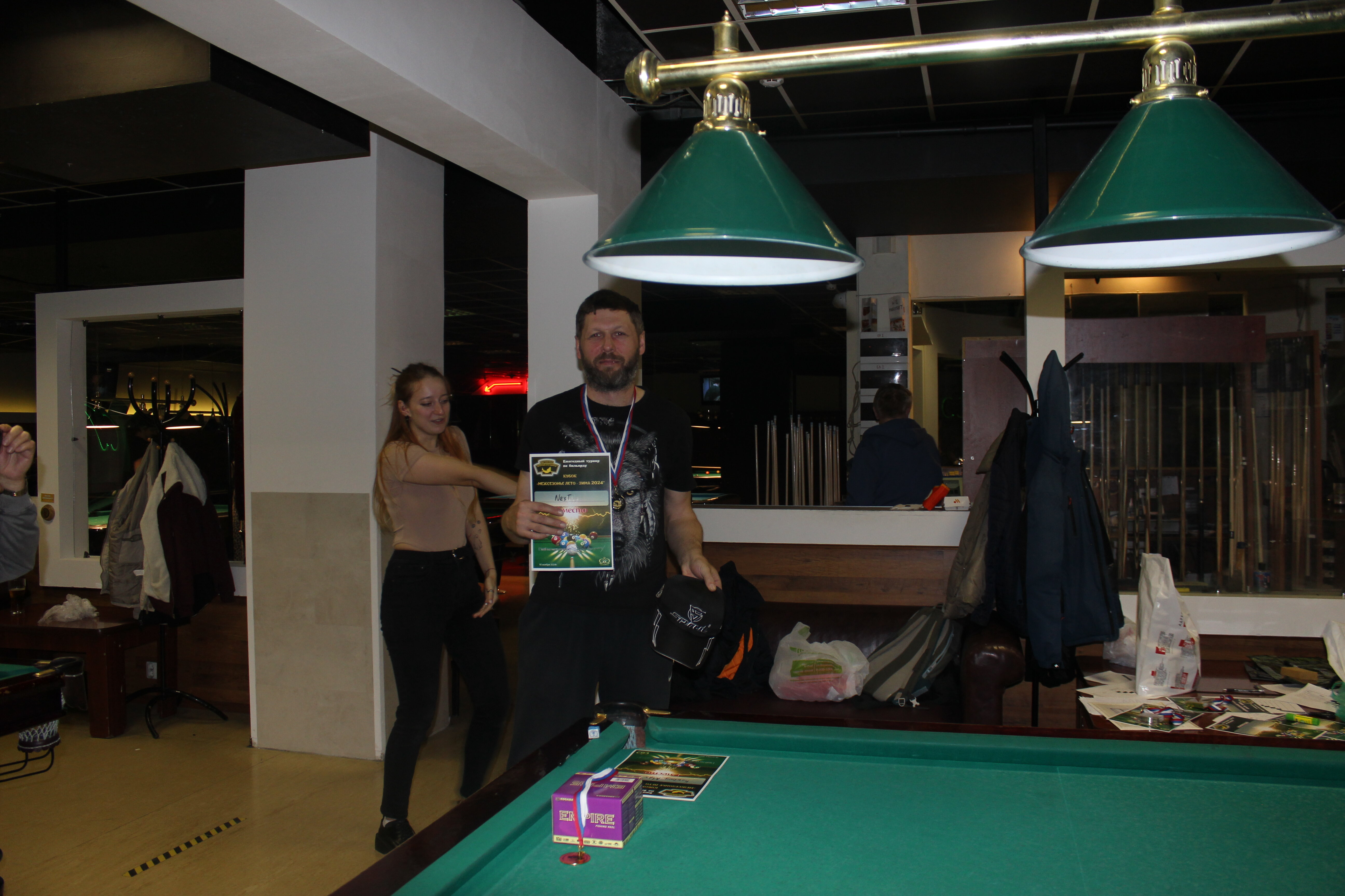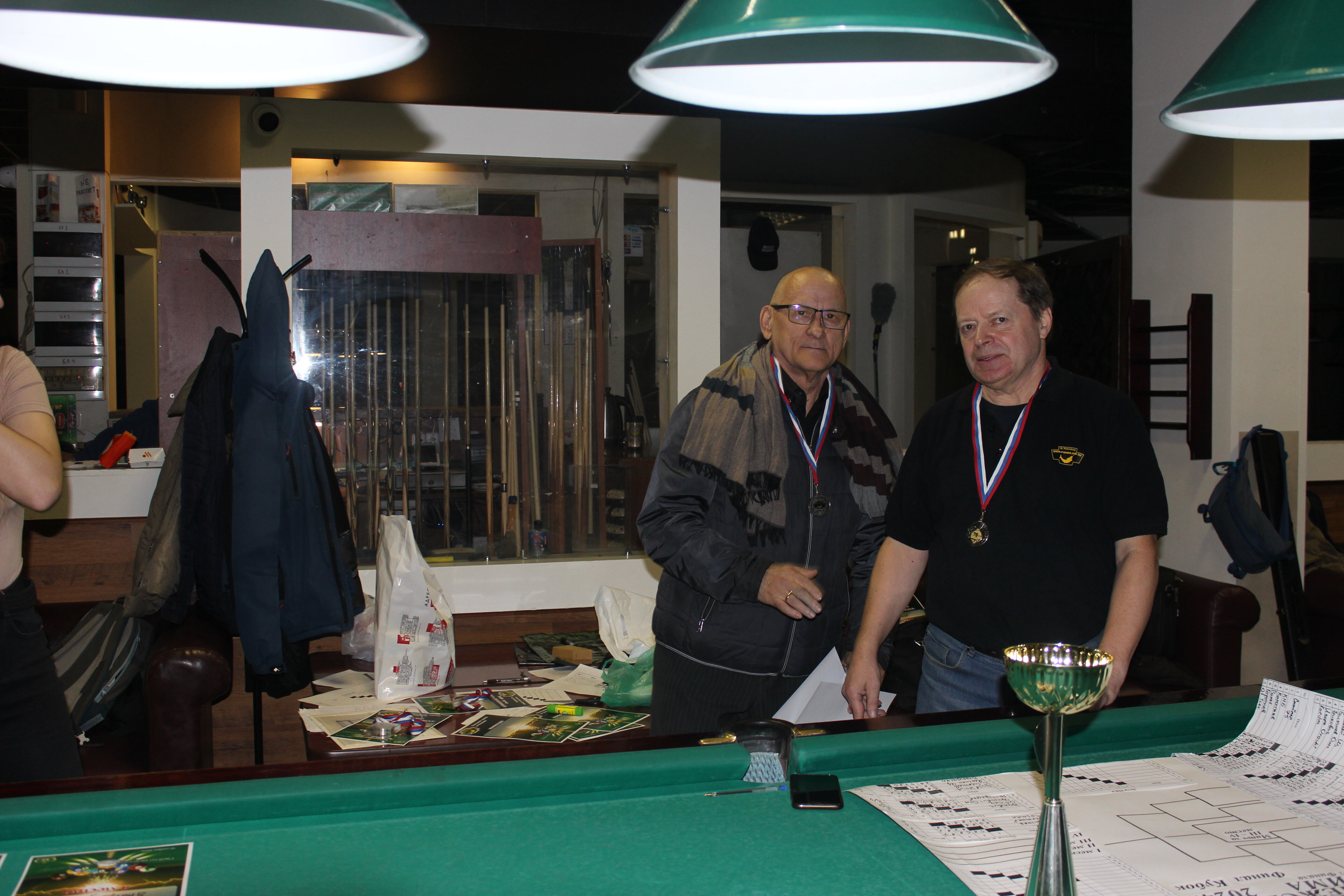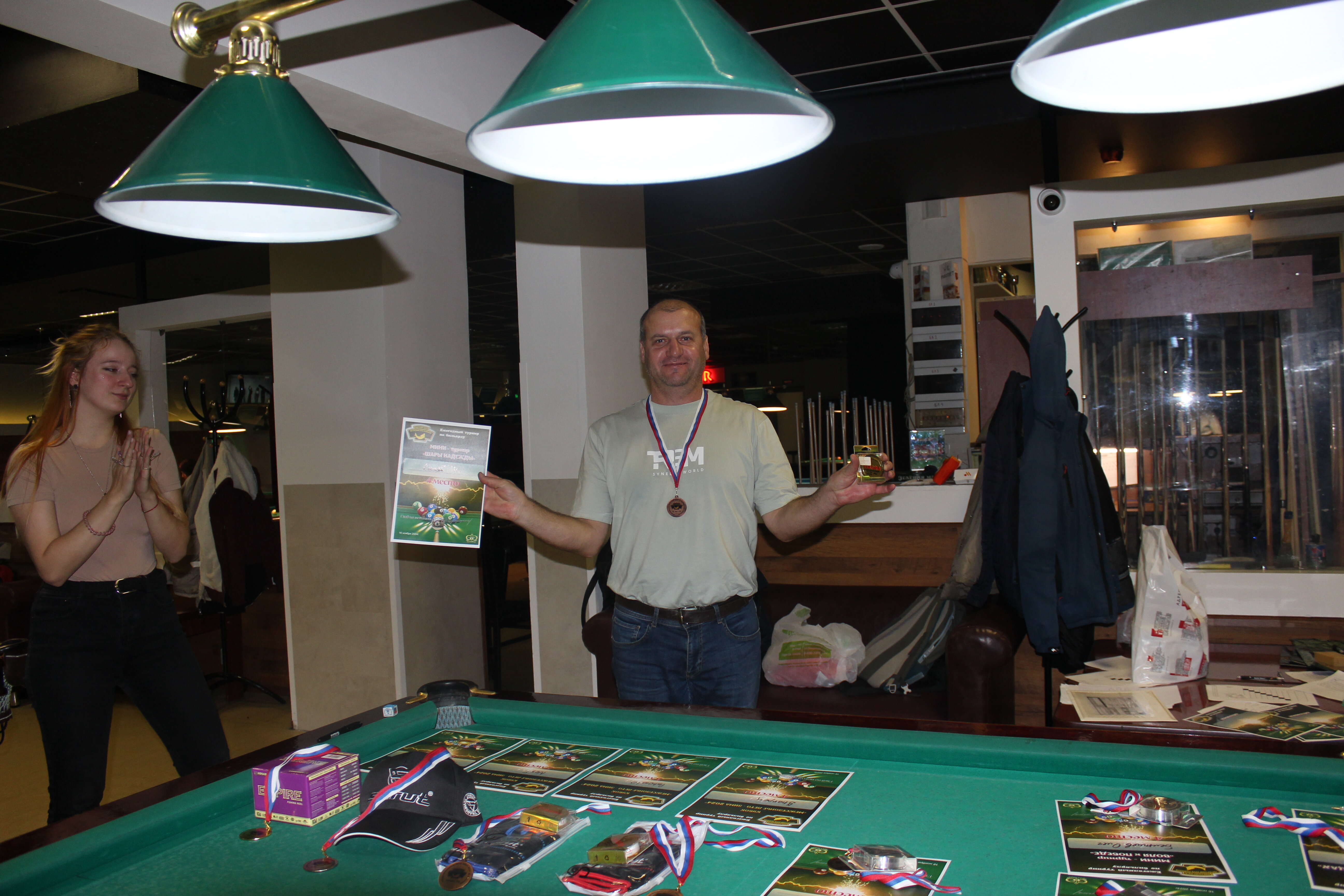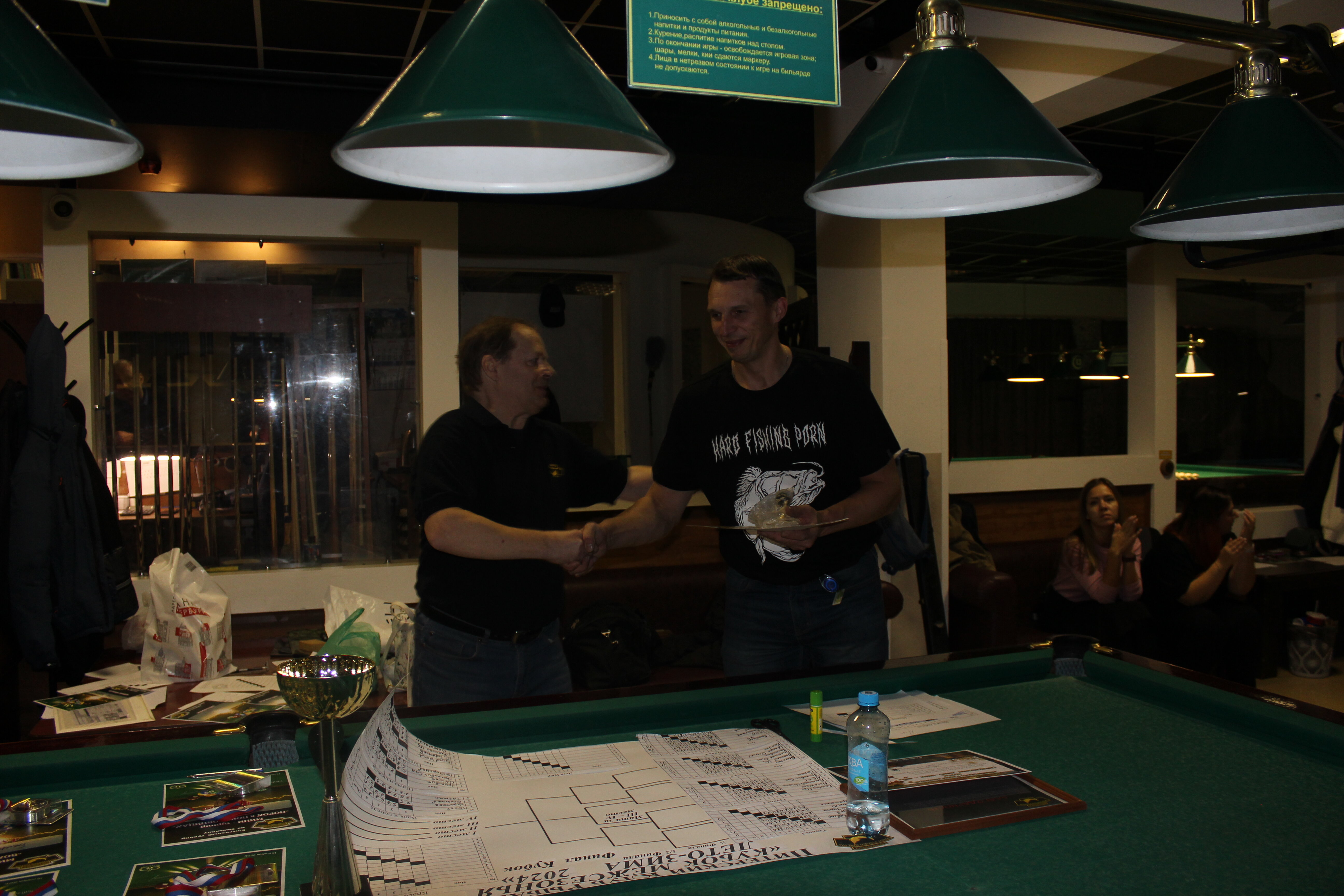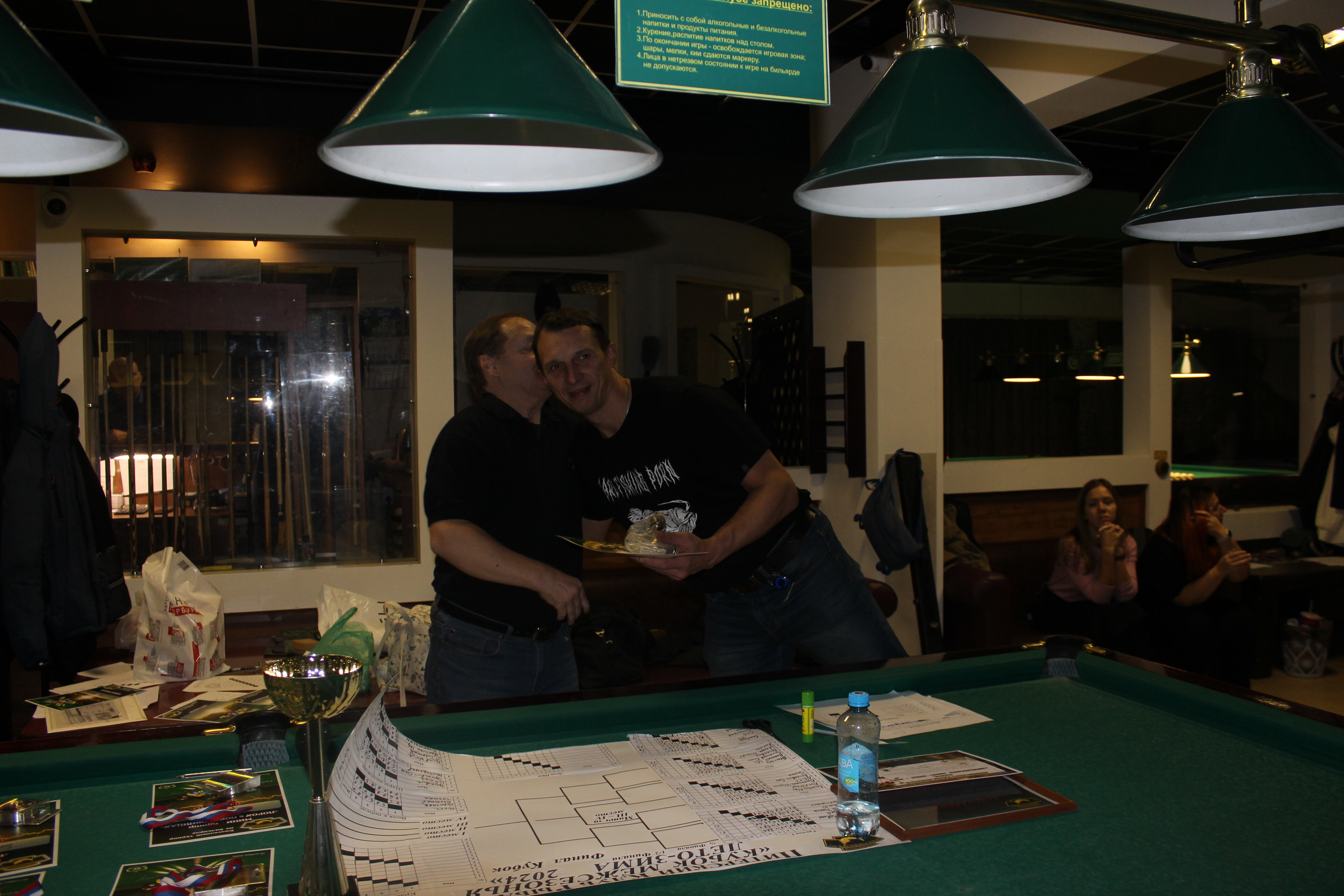 Верещагин Опубликовано: 21 ноября 2024 Жалоба Опубликовано: 21 ноября 2024 (изменено) Первенство ПКР по бильярду "Кубок межсезонья Лето – Зима 2024" ! Участники по факту: Мужчины: 1. Верещагин 2. Sharpey 3. Дима Снайпер 4. Алексей Щ 5. 75-ый 6. Белышев Олег 7. ТусклыЙ Воблер 8. Tasman85 9. Игорь Orochi 10.Эрикович-Сан 11.Эрикович 12. KowboyMax 13. Алексей Удача 14. Poker 15. Kapdva 16. NEXT 17. КНБ 18. Ростислав 19. Горюнов 20. Большой Шурик 21.oFicer 22. NordWest 23. Гараж 24. Pahom10 25 Расторгуев Дамы : 1. Olia 2 Татьяна 3. НадюХа 4. Анюта Сумская 5. Елена 6. Таня И. 7. Галина 8. Ирина Дети: 1. Илья 2. Колян 3. Вероника 4. Миша И снова собрались, поиграли, отдохнули. В этом юбилейном 20-ом турнире удалось провести и дамский турнир с большим количеством участниц -8 и детский- 4 участников. (здесь дружные несмолкающие овации ) Подтянулись достаточно дружно. Предварительно посчитались и оказалось, что заявившихся было слегка побольше. Выпали по разным обстоятельствам достаточно много участников, кто-то не сумел даже предупредить. Лёша Прораб, хоть и не смог участвовать непосредственно в турнире, сумел добраться со мной до клубного склада и забрать призовой фонд, а Кирилл (Тусклый Воблер) помог весь этот праздничный набор, таблицу и меня помог доставить к месту проведения, за что им, конечно, большущее спасибо. Успели четко началу. Итак, размявшись, "отжеребились", сфоткались и ринулись в бой. Стартовые 4 группы сформировались по 6-7 участников. Получилось вполне нарядно. Дамы и дети дружно поддержали турнир и азартно включились в борьбу. Мне не хватило времени последить в подробностях за их игрой , но видел, что там было довольно живенько и весело). Здесь отменно проявили себя мои помощники )НадюХа и Аннушка Сумская. Дима (DEMON) неожиданно захворал и я уже запаниковал, но дамы так активно взялись за организацию, что скоро стало понятно, что девчата справятся. Они-то, собственно, и провели на высочайшем уровне дамский и детский турниры. Оба эти соревнования проводились по специальным правилам, что помогло динамично и интересно добиться желаемых результатов. Ну молодцы же. В высшей степени отличились наши народные спонсоры. Артём "Poker" и конечно же, как всегда, Слава "Гараж". Там и цветы и Бутылочка вкусного вина для дамских финалистов. Спасибище за такую поддержку. Максим "Kowboy MAX" создал традиционные тематические дипломы, которые по достоинству оценили их обладатели. И, конечно же, сам турнир среди мужчин не прошёл бы так организованно и динамично без неоценимой помощи НадюХа и Аннушки, которые с первых минут включилась в работу и весь турнир тащили на себе организаторско - оформительскую часть этого действа. К ней активно подключался Володя kapdva. Да в принципе все участники по ходу турнира подключались активно. Крайне благодарен ребятам за такую поддержку. Спасибо гостям и зрителям. Спасибо Серёге MCHS, который приехал традиционно поболеть и поддержать. Благодарю всех участников турнира, "старичков" и новых бойцов. Спасибо Клубу и компании "Эко-Групп" за помощь в формировании медально-сувенирного фонда. Итоги: Самый преданный болельщик – Сергей MCHS Ветеран турнира- Эрикович Сан За самую длинную серию отмечен Kowboy MAX трижды по 4 шара - Минитурнир "Порох в пороховницах"(4-ые места в группах) 1-е место – NordWest .- медаль, диплом, приз. 2-е место – Верещагин - медаль, диплом, приз 3-е место – C.Горюнов - медаль, диплом, приз. 4-е место – Алексей Щ - медаль, диплом, пр