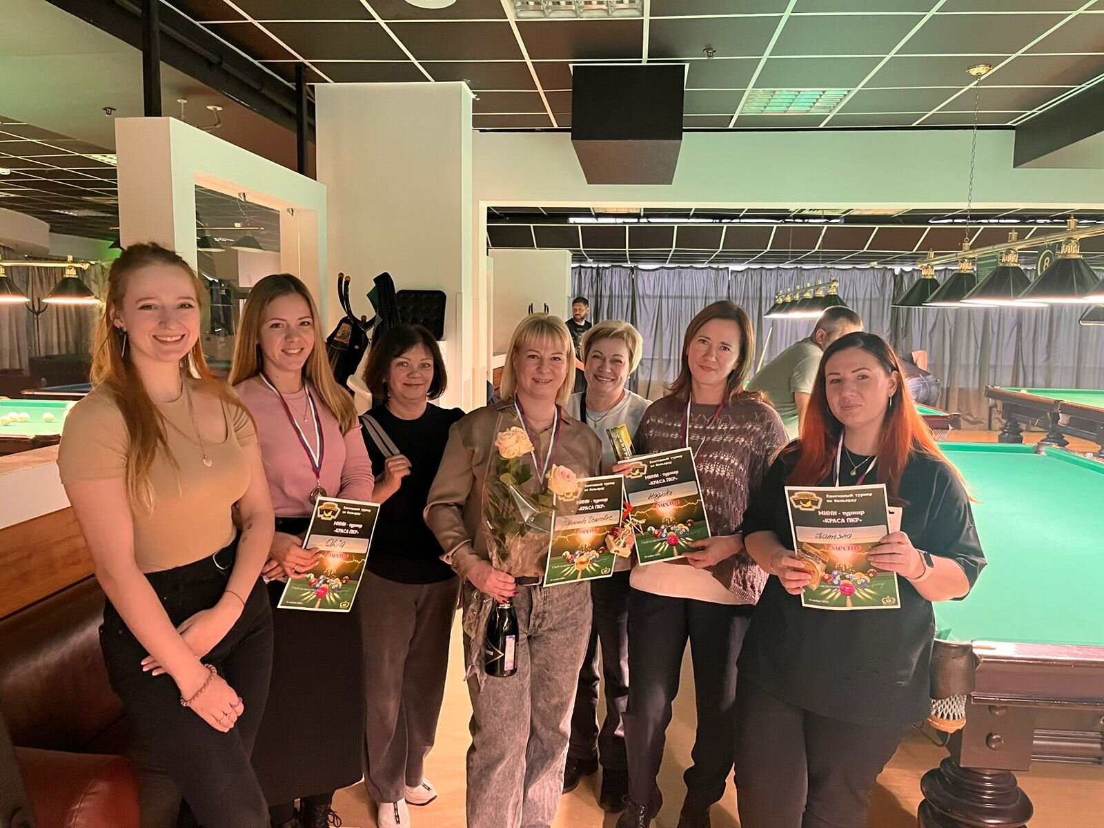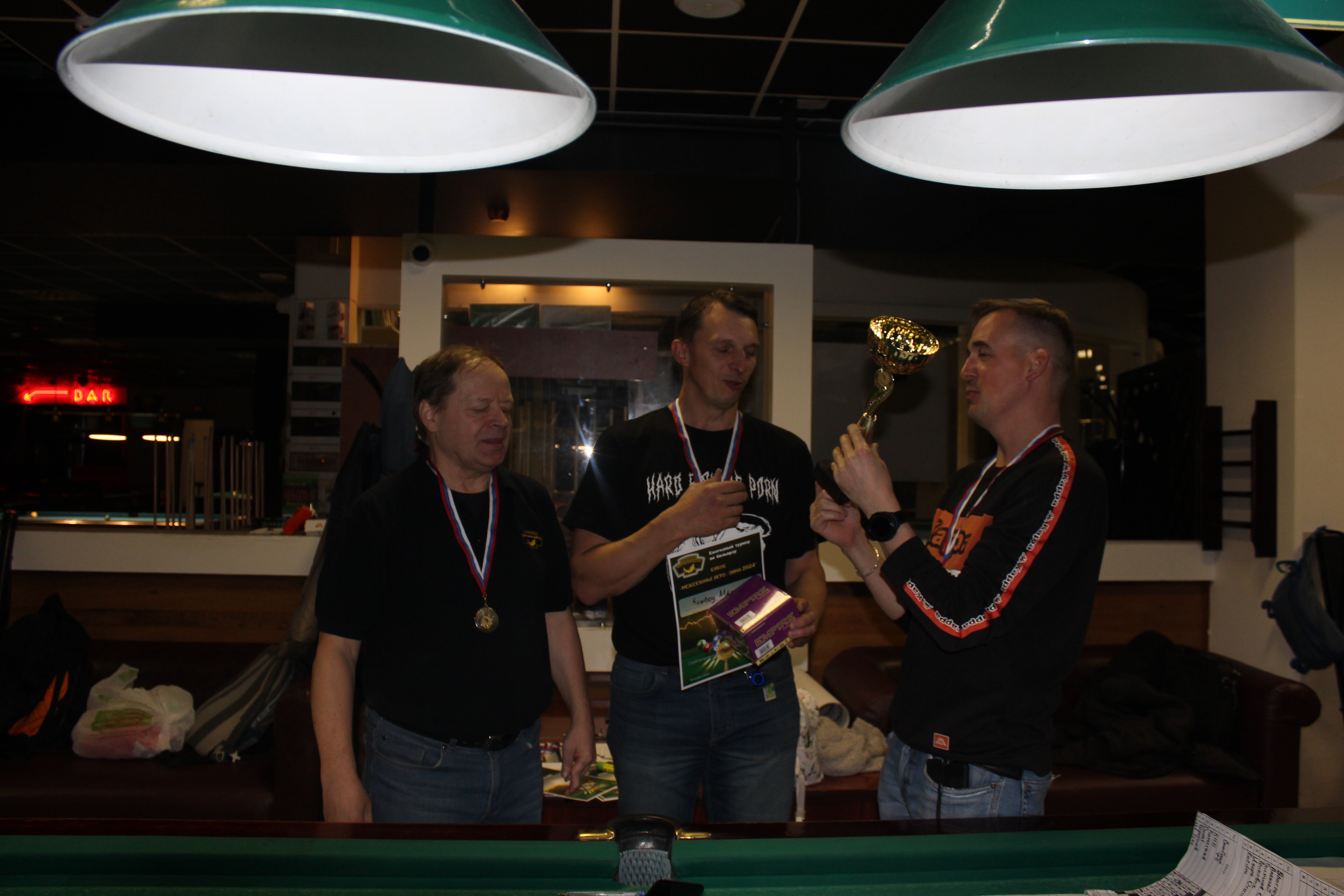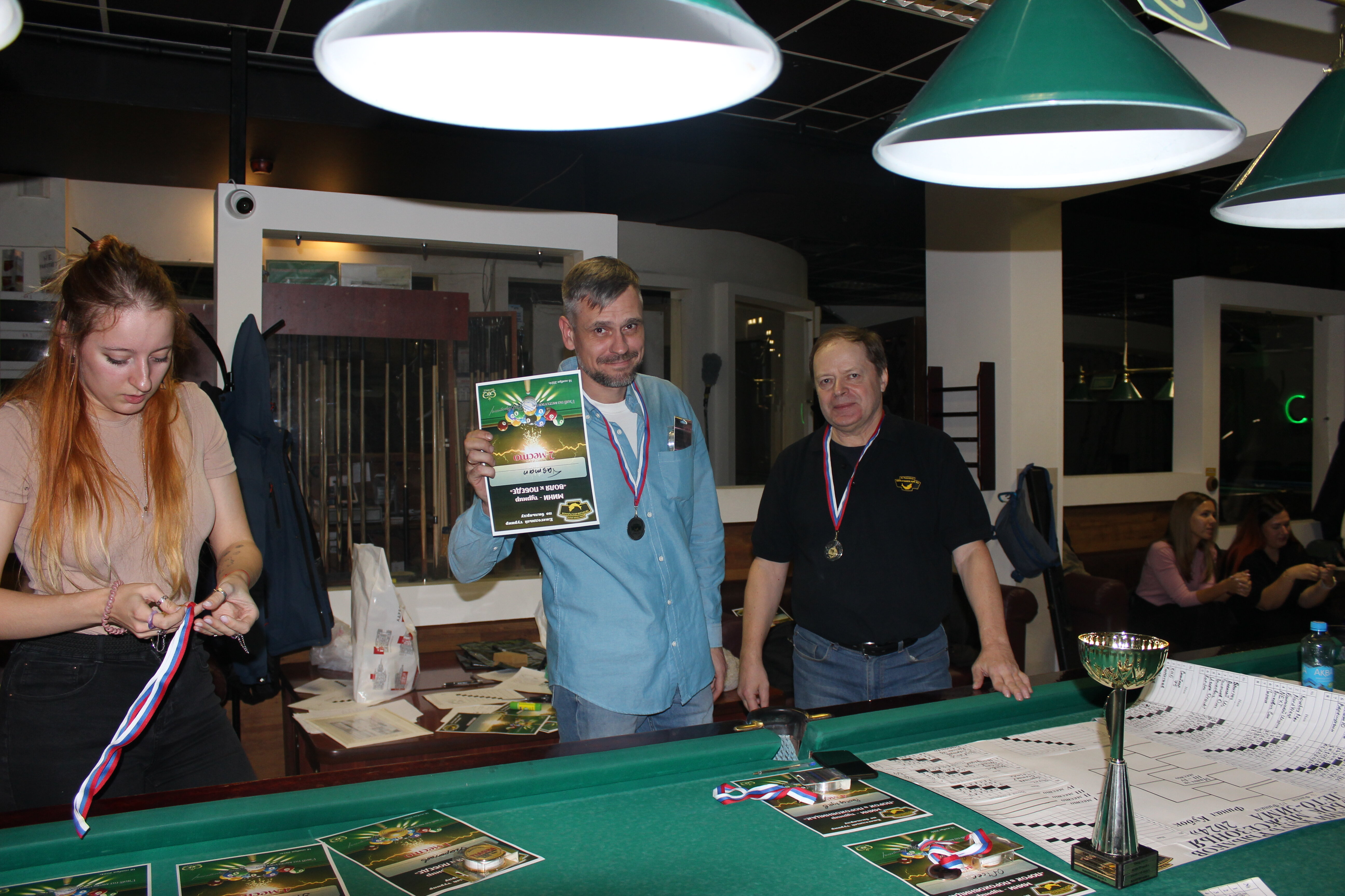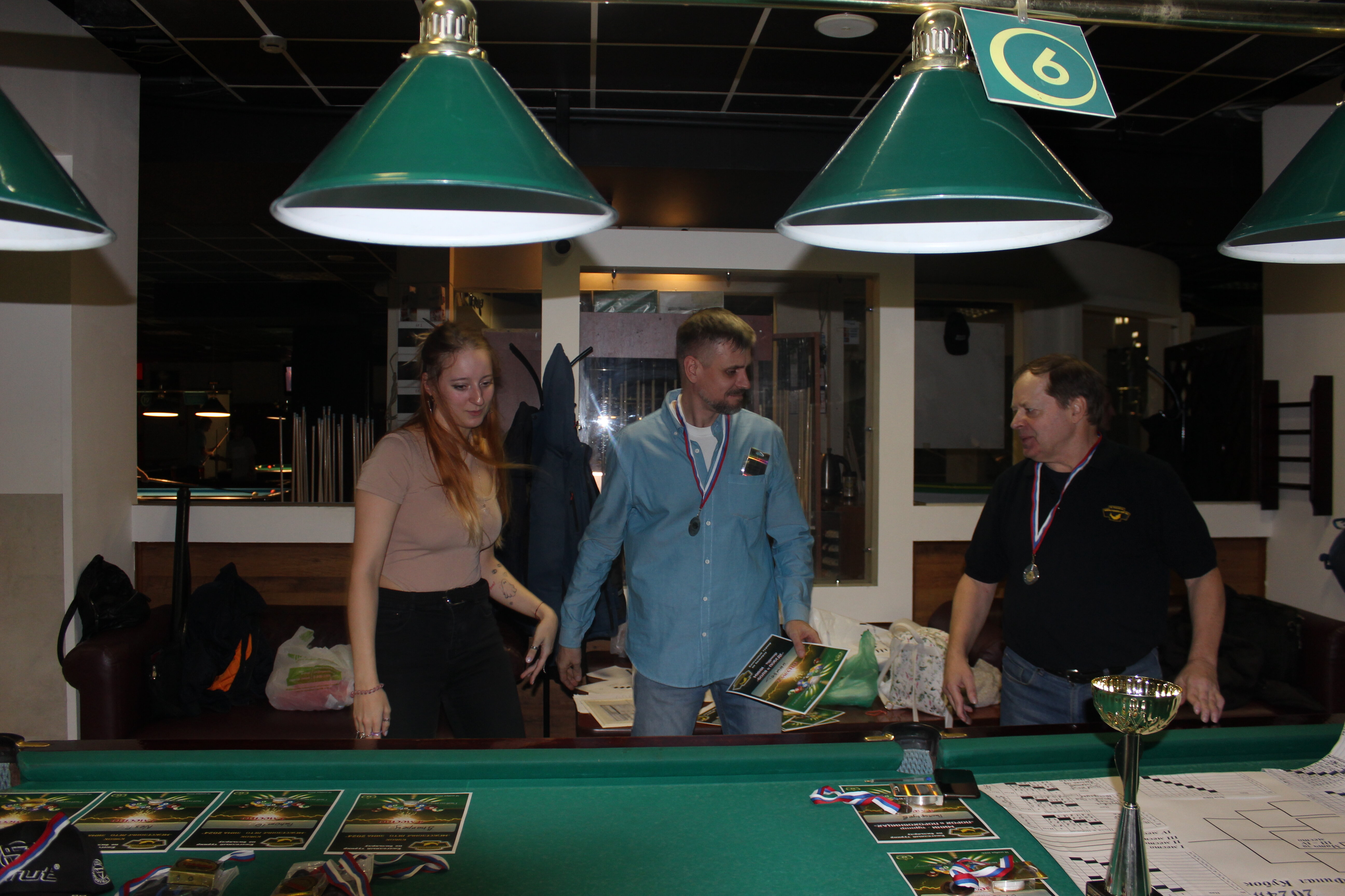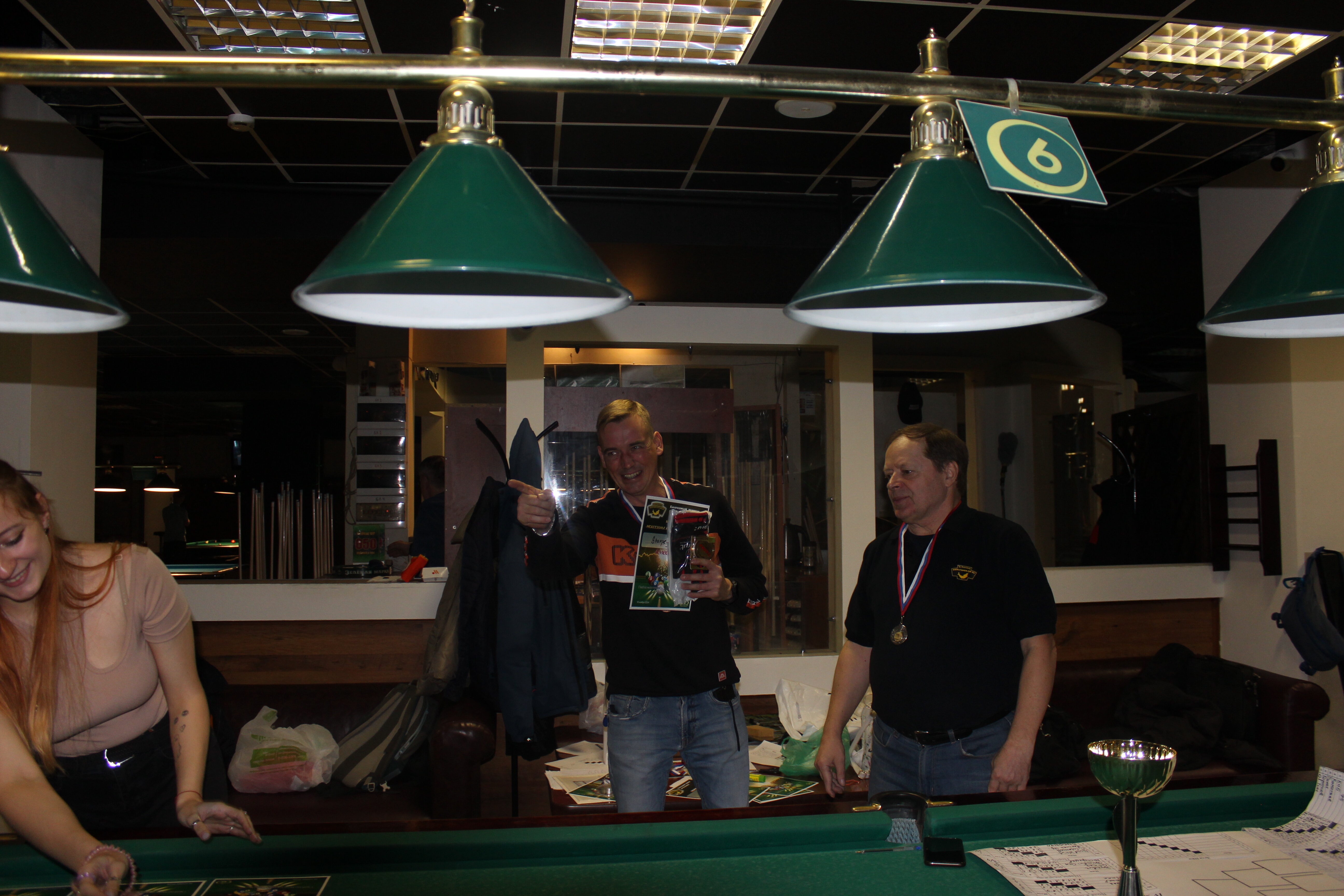 Верещагин Опубликовано: 21 ноября 2024 Жалоба Опубликовано: 21 ноября 2024 (изменено) Первенство ПКР по бильярду "Кубок межсезонья Лето – Зима 2024" ! Участники по факту: Мужчины: 1. Верещагин 2. Sharpey 3. Дима Снайпер 4. Алексей Щ 5. 75-ый 6. Белышев Олег 7. ТусклыЙ Воблер 8. Tasman85 9. Игорь Orochi 10.Эрикович-Сан 11.Эрикович 12. KowboyMax 13. Алексей Удача 14. Poker 15. Kapdva 16. NEXT 17. КНБ 18. Ростислав 19. Горюнов 20. Большой Шурик 21.oFicer 22. NordWest 23. Гараж 24. Pahom10 25 Расторгуев Дамы : 1. Olia 2 Татьяна 3. НадюХа 4. Анюта Сумская 5. Елена 6. Таня И. 7. Галина 8. Ирина Дети: 1. Илья 2. Колян 3. Вероника 4. Миша И снова собрались, поиграли, отдохнули. В этом юбилейном 20-ом турнире удалось провести и дамский турнир с большим количеством участниц -8 и детский- 4 участников. (здесь дружные несмолкающие овации ) Подтянулись достаточно дружно. Предварительно посчитались и оказалось, что заявившихся было слегка побольше. Выпали по разным обстоятельствам достаточно много участников, кто-то не сумел даже предупредить. Лёша Прораб, хоть и не смог участвовать непосредственно в турнире, сумел добраться со мной до клубного склада и забрать призовой фонд, а Кирилл (Тусклый Воблер) помог весь этот праздничный набор, таблицу и меня помог доставить к месту проведения, за что им, конечно, большущее спасибо. Успели четко началу. Итак, размявшись, "отжеребились", сфоткались и ринулись в бой. Стартовые 4 группы сформировались по 6-7 участников. Получилось вполне нарядно. Дамы и дети дружно поддержали турнир и азартно включились в борьбу. Мне не хватило времени последить в подробностях за их игрой , но видел, что там было довольно живенько и весело). Здесь отменно проявили себя мои помощники )НадюХа и Аннушка Сумская. Дима (DEMON) неожиданно захворал и я уже запаниковал, но дамы так активно взялись за организацию, что скоро стало понятно, что девчата справятся. Они-то, собственно, и провели на высочайшем уровне дамский и детский турниры. Оба эти соревнования проводились по специальным правилам, что помогло динамично и интересно добиться желаемых результатов. Ну молодцы же. В высшей степени отличились наши народные спонсоры. Артём "Poker" и конечно же, как всегда, Слава "Гараж". Там и цветы и Бутылочка вкусного вина для дамских финалистов. Спасибище за такую поддержку. Максим "Kowboy MAX" создал традиционные тематические дипломы, которые по достоинству оценили их обладатели. И, конечно же, сам турнир среди мужчин не прошёл бы так организованно и динамично без неоценимой помощи НадюХа и Аннушки, которые с первых минут включилась в работу и весь турнир тащили на себе организаторско - оформительскую часть этого действа. К ней активно подключался Володя kapdva. Да в принципе все участники по ходу турнира подключались активно. Крайне благодарен ребятам за такую поддержку. Спасибо гостям и зрителям. Спасибо Серёге MCHS, который приехал традиционно поболеть и поддержать. Благодарю всех участников турнира, "старичков" и новых бойцов. Спасибо Клубу и компании "Эко-Групп" за помощь в формировании медально-сувенирного фонда. Итоги: Самый преданный болельщик – Сергей MCHS Ветеран турнира- Эрикович Сан За самую длинную серию отмечен Kowboy MAX трижды по 4 шара - Минитурнир "Порох в пороховницах"(4-ые места в группах) 1-е место – NordWest .- медаль, диплом, приз. 2-е место – Верещагин - медаль, диплом, приз 3-е место – C.Горюнов - медаль, диплом, приз. 4-е место – Алексей Щ - медаль, диплом, пр