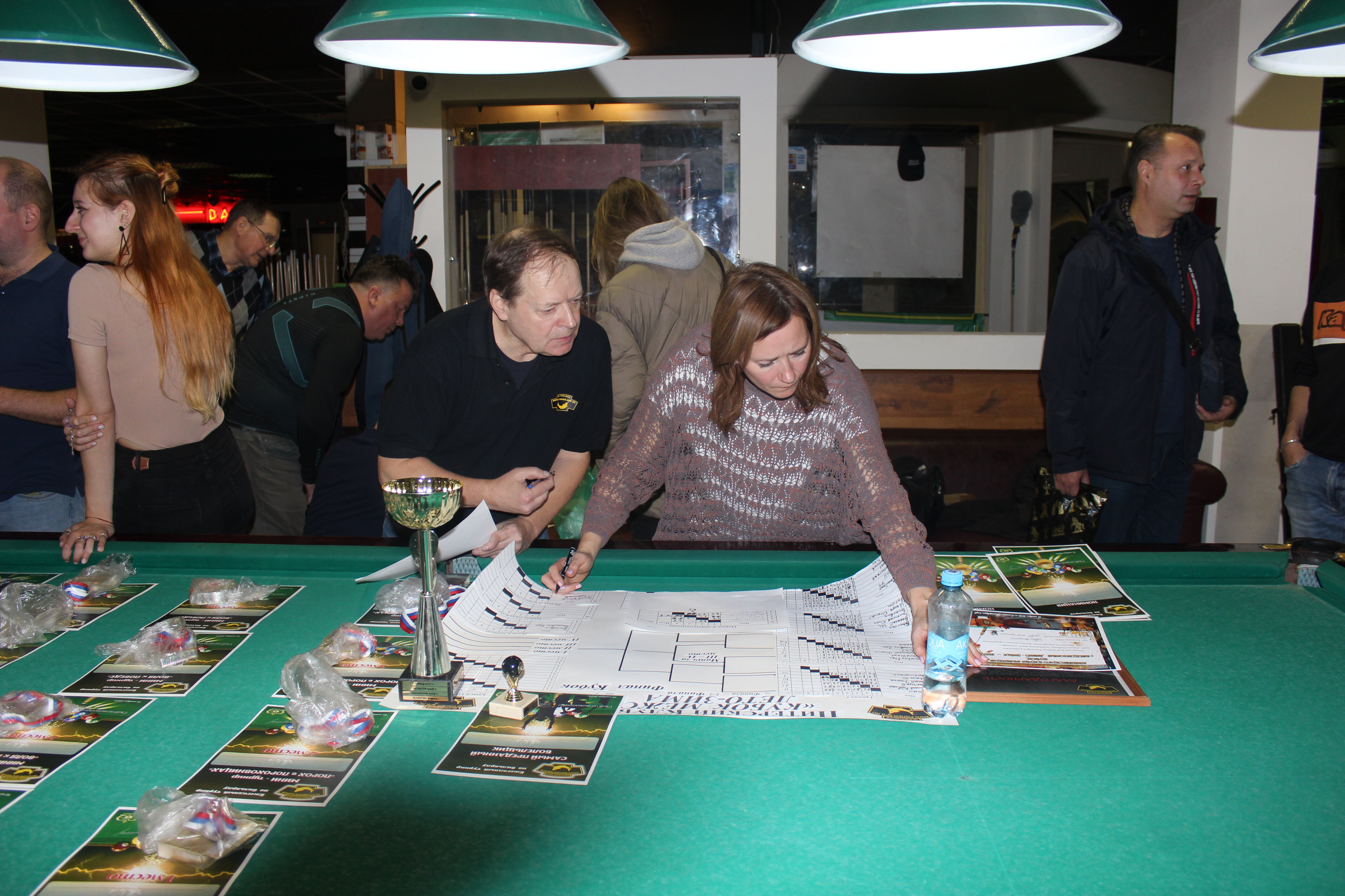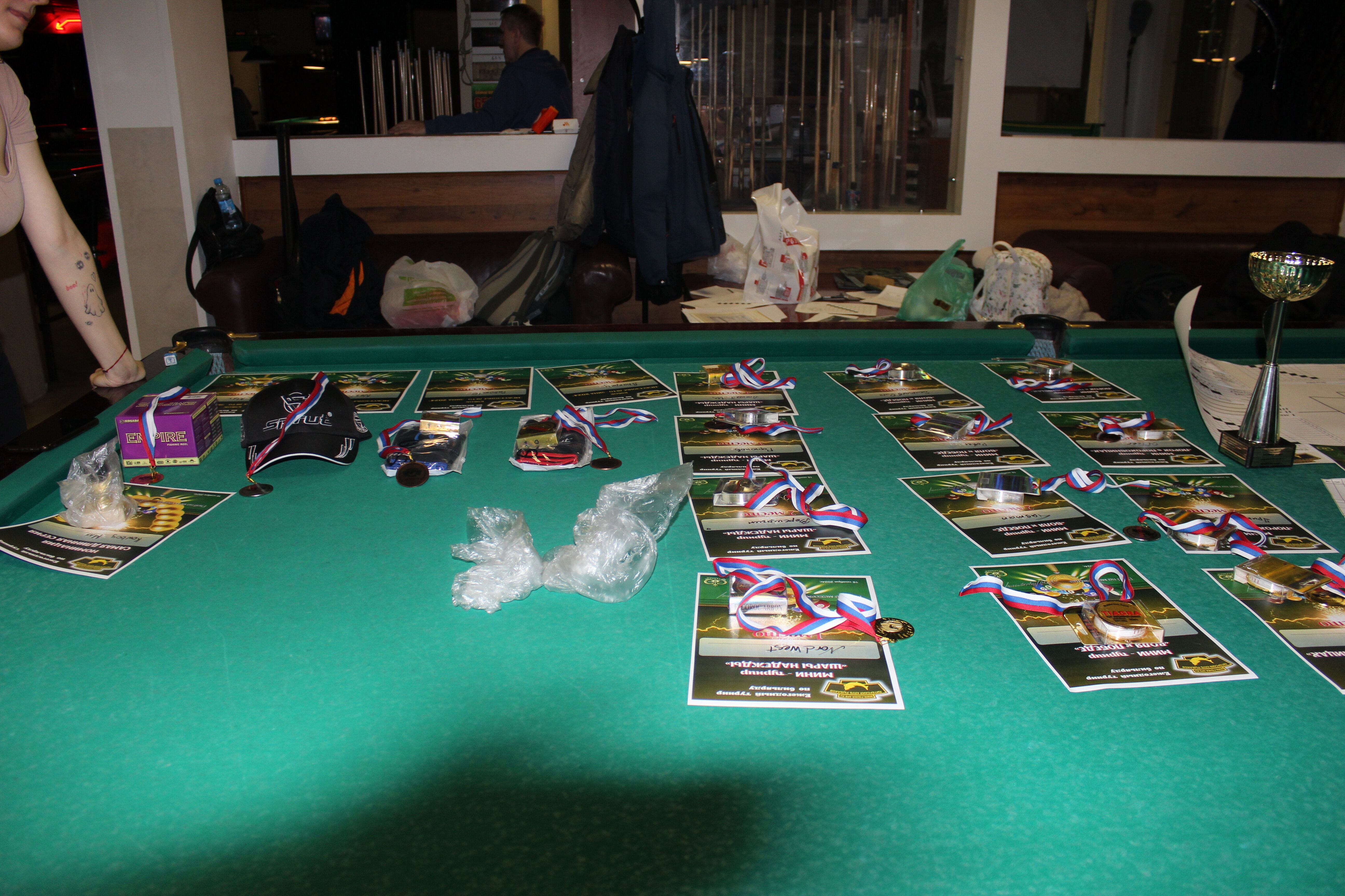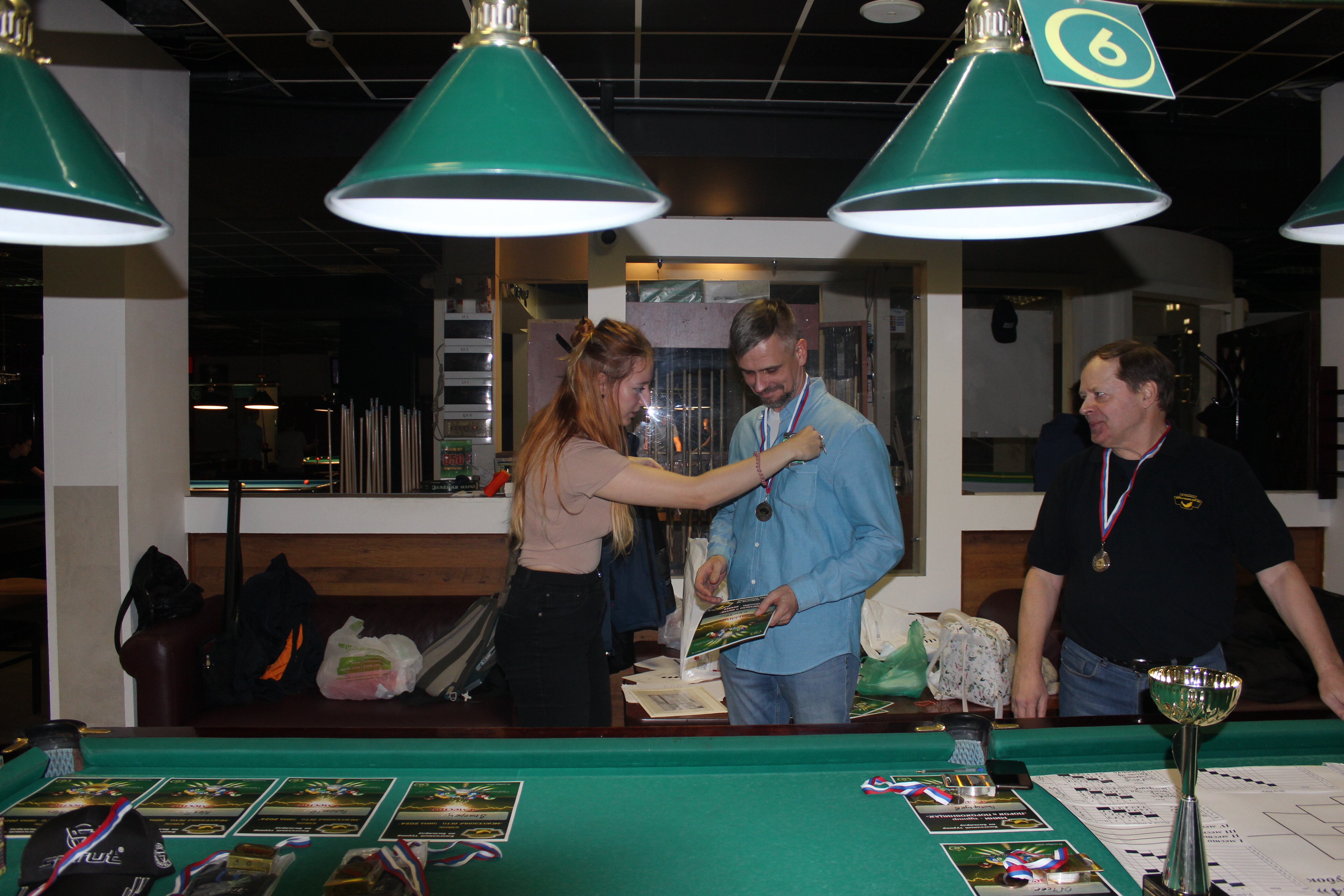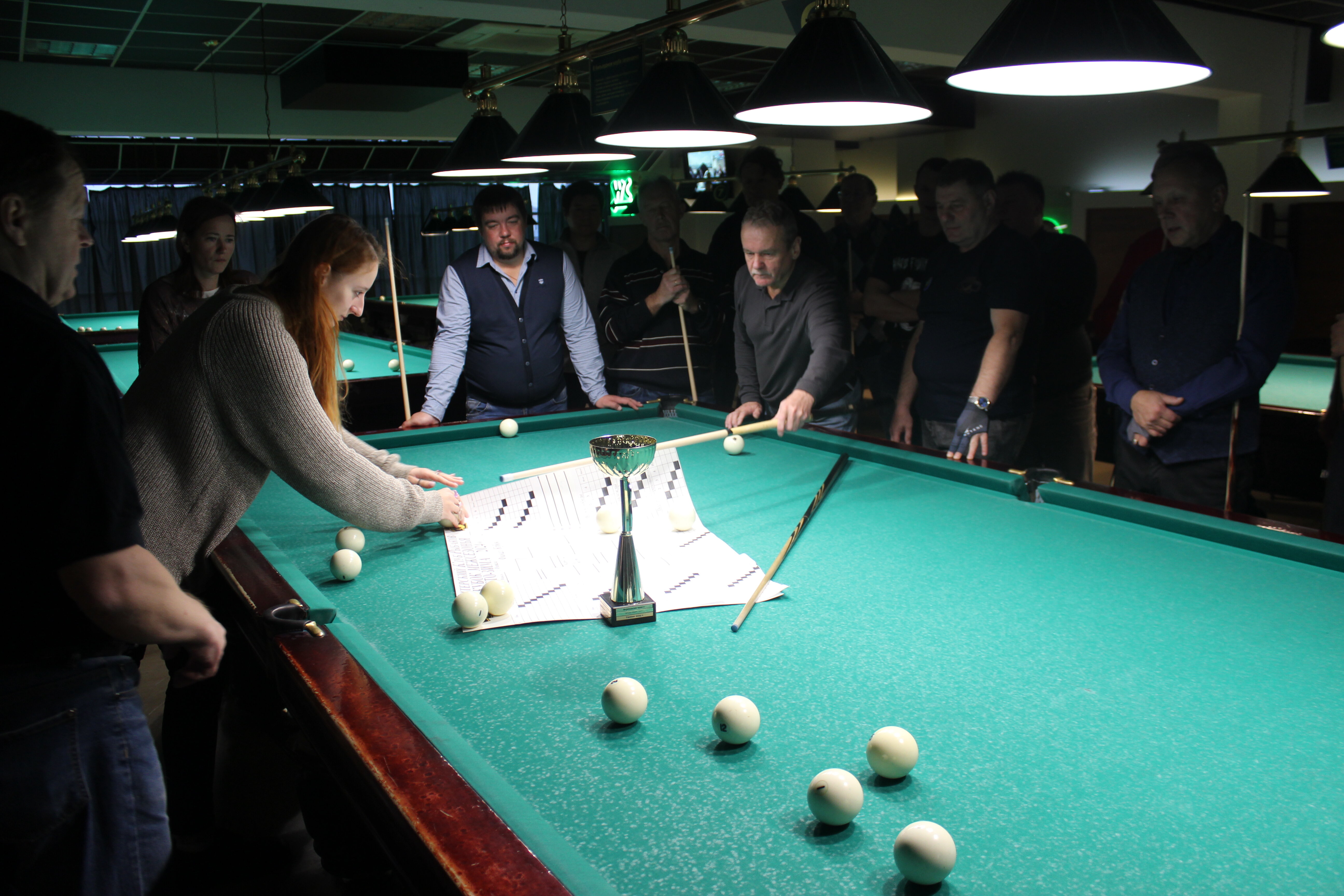 Верещагин Опубликовано: 21 ноября 2024 Жалоба Опубликовано: 21 ноября 2024 (изменено) Первенство ПКР по бильярду "Кубок межсезонья Лето – Зима 2024" ! Участники по факту: Мужчины: 1. Верещагин 2. Sharpey 3. Дима Снайпер 4. Алексей Щ 5. 75-ый 6. Белышев Олег 7. ТусклыЙ Воблер 8. Tasman85 9. Игорь Orochi 10.Эрикович-Сан 11.Эрикович 12. KowboyMax 13. Алексей Удача 14. Poker 15. Kapdva 16. NEXT 17. КНБ 18. Ростислав 19. Горюнов 20. Большой Шурик 21.oFicer 22. NordWest 23. Гараж 24. Pahom10 25 Расторгуев Дамы : 1. Olia 2 Татьяна 3. НадюХа 4. Анюта Сумская 5. Елена 6. Таня И. 7. Галина 8. Ирина Дети: 1. Илья 2. Колян 3. Вероника 4. Миша И снова собрались, поиграли, отдохнули. В этом юбилейном 20-ом турнире удалось провести и дамский турнир с большим количеством участниц -8 и детский- 4 участников. (здесь дружные несмолкающие овации ) Подтянулись достаточно дружно. Предварительно посчитались и оказалось, что заявившихся было слегка побольше. Выпали по разным обстоятельствам достаточно много участников, кто-то не сумел даже предупредить. Лёша Прораб, хоть и не смог участвовать непосредственно в турнире, сумел добраться со мной до клубного склада и забрать призовой фонд, а Кирилл (Тусклый Воблер) помог весь этот праздничный набор, таблицу и меня помог доставить к месту проведения, за что им, конечно, большущее спасибо. Успели четко началу. Итак, размявшись, "отжеребились", сфоткались и ринулись в бой. Стартовые 4 группы сформировались по 6-7 участников. Получилось вполне нарядно. Дамы и дети дружно поддержали турнир и азартно включились в борьбу. Мне не хватило времени последить в подробностях за их игрой , но видел, что там было довольно живенько и весело). Здесь отменно проявили себя мои помощники )НадюХа и Аннушка Сумская. Дима (DEMON) неожиданно захворал и я уже запаниковал, но дамы так активно взялись за организацию, что скоро стало понятно, что девчата справятся. Они-то, собственно, и провели на высочайшем уровне дамский и детский турниры. Оба эти соревнования проводились по специальным правилам, что помогло динамично и интересно добиться желаемых результатов. Ну молодцы же. В высшей степени отличились наши народные спонсоры. Артём "Poker" и конечно же, как всегда, Слава "Гараж". Там и цветы и Бутылочка вкусного вина для дамских финалистов. Спасибище за такую поддержку. Максим "Kowboy MAX" создал традиционные тематические дипломы, которые по достоинству оценили их обладатели. И, конечно же, сам турнир среди мужчин не прошёл бы так организованно и динамично без неоценимой помощи НадюХа и Аннушки, которые с первых минут включилась в работу и весь турнир тащили на себе организаторско - оформительскую часть этого действа. К ней активно подключался Володя kapdva. Да в принципе все участники по ходу турнира подключались активно. Крайне благодарен ребятам за такую поддержку. Спасибо гостям и зрителям. Спасибо Серёге MCHS, который приехал традиционно поболеть и поддержать. Благодарю всех участников турнира, "старичков" и новых бойцов. Спасибо Клубу и компании "Эко-Групп" за помощь в формировании медально-сувенирного фонда. Итоги: Самый преданный болельщик – Сергей MCHS Ветеран турнира- Эрикович Сан За самую длинную серию отмечен Kowboy MAX трижды по 4 шара - Минитурнир "Порох в пороховницах"(4-ые места в группах) 1-е место – NordWest .- медаль, диплом, приз. 2-е место – Верещагин - медаль, диплом, приз 3-е место – C.Горюнов - медаль, диплом, приз. 4-е место – Алексей Щ - медаль, диплом, пр