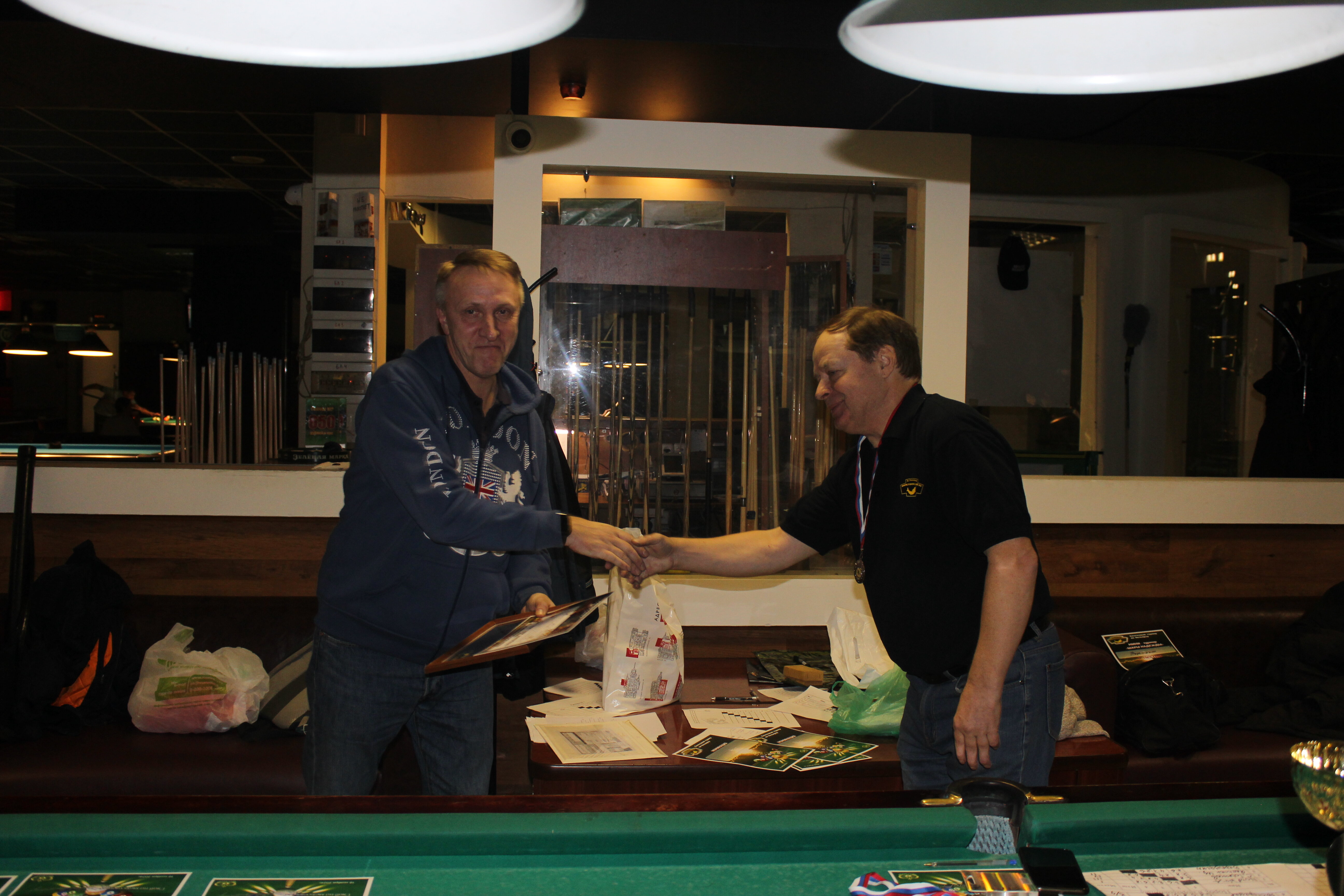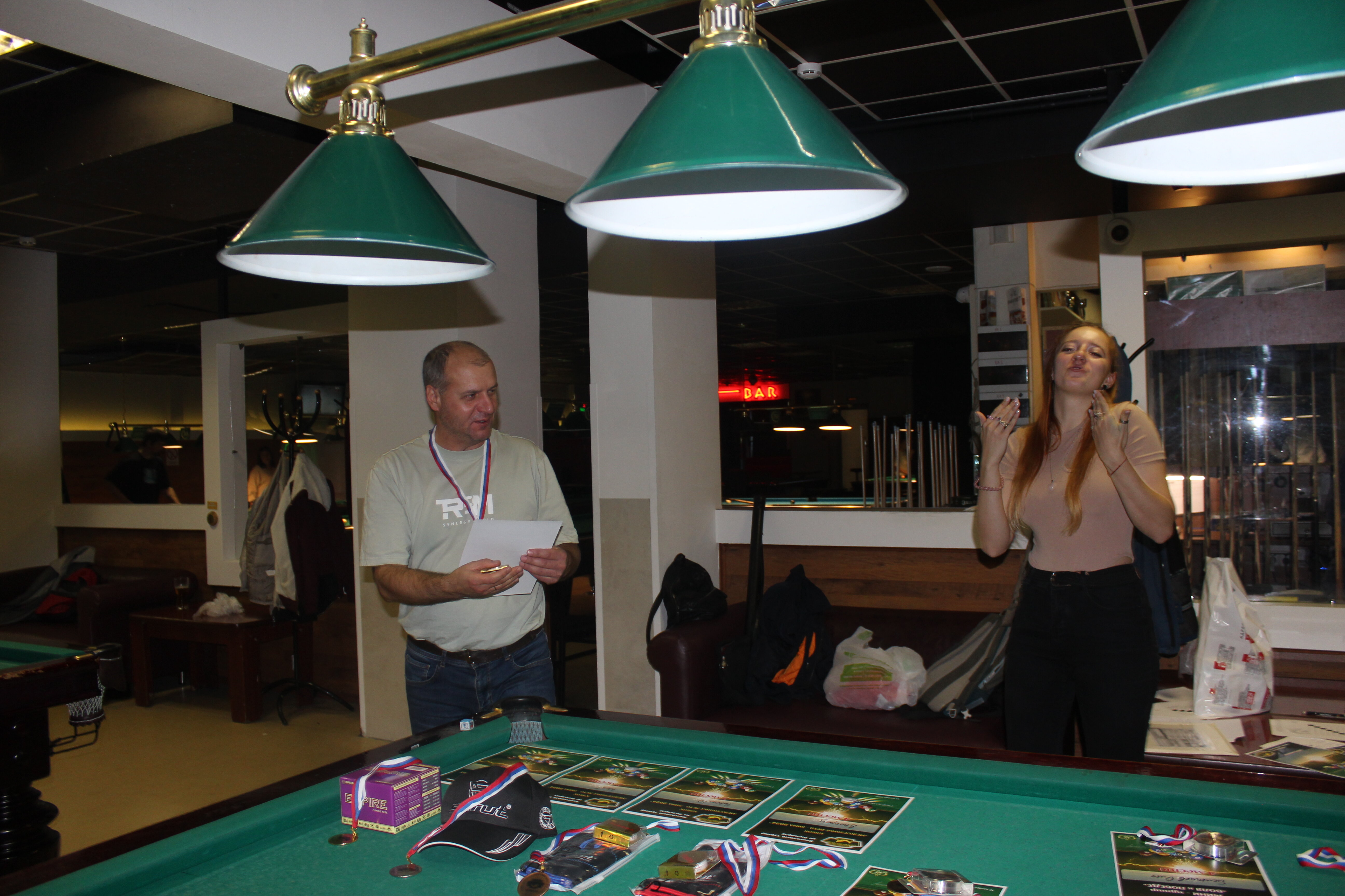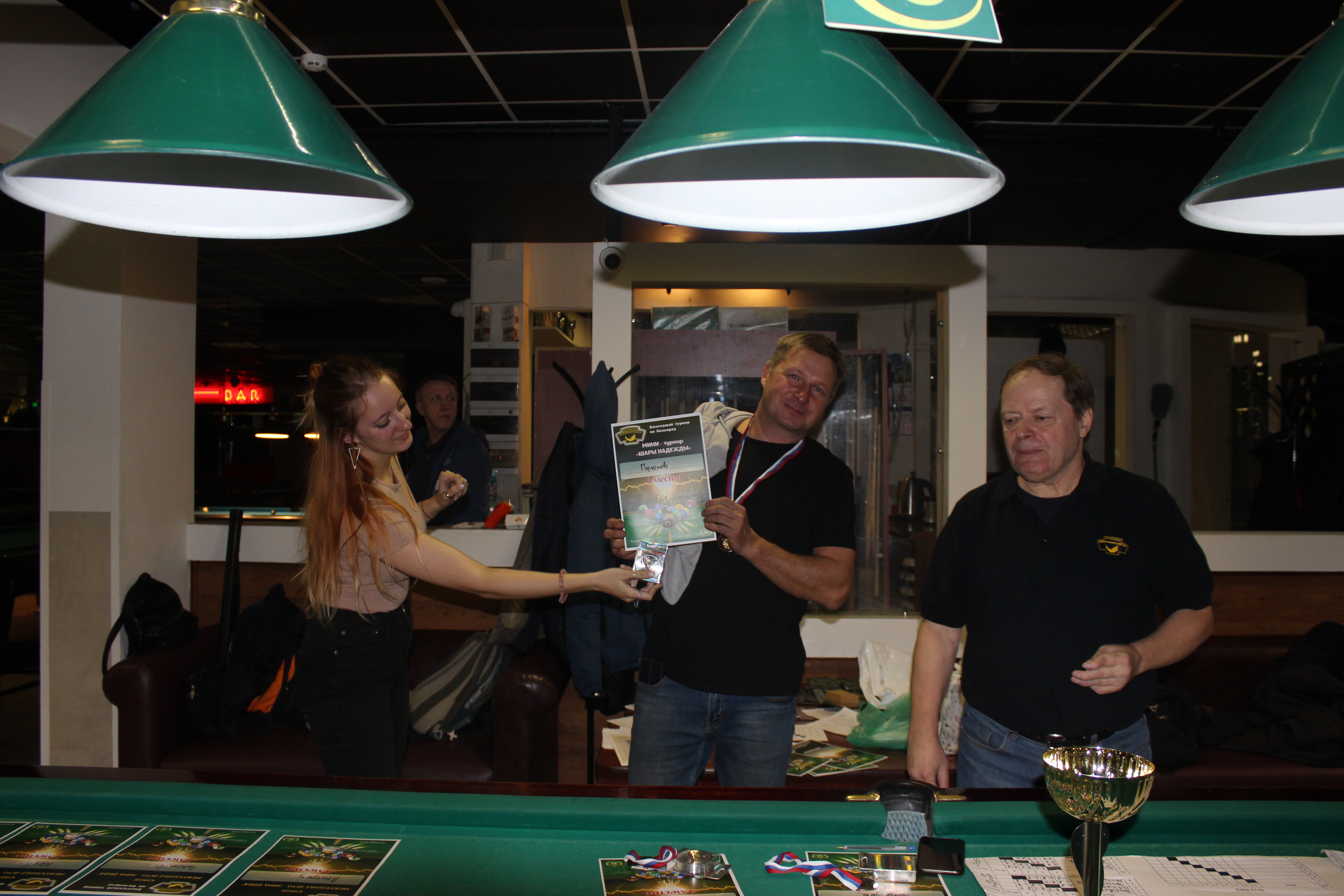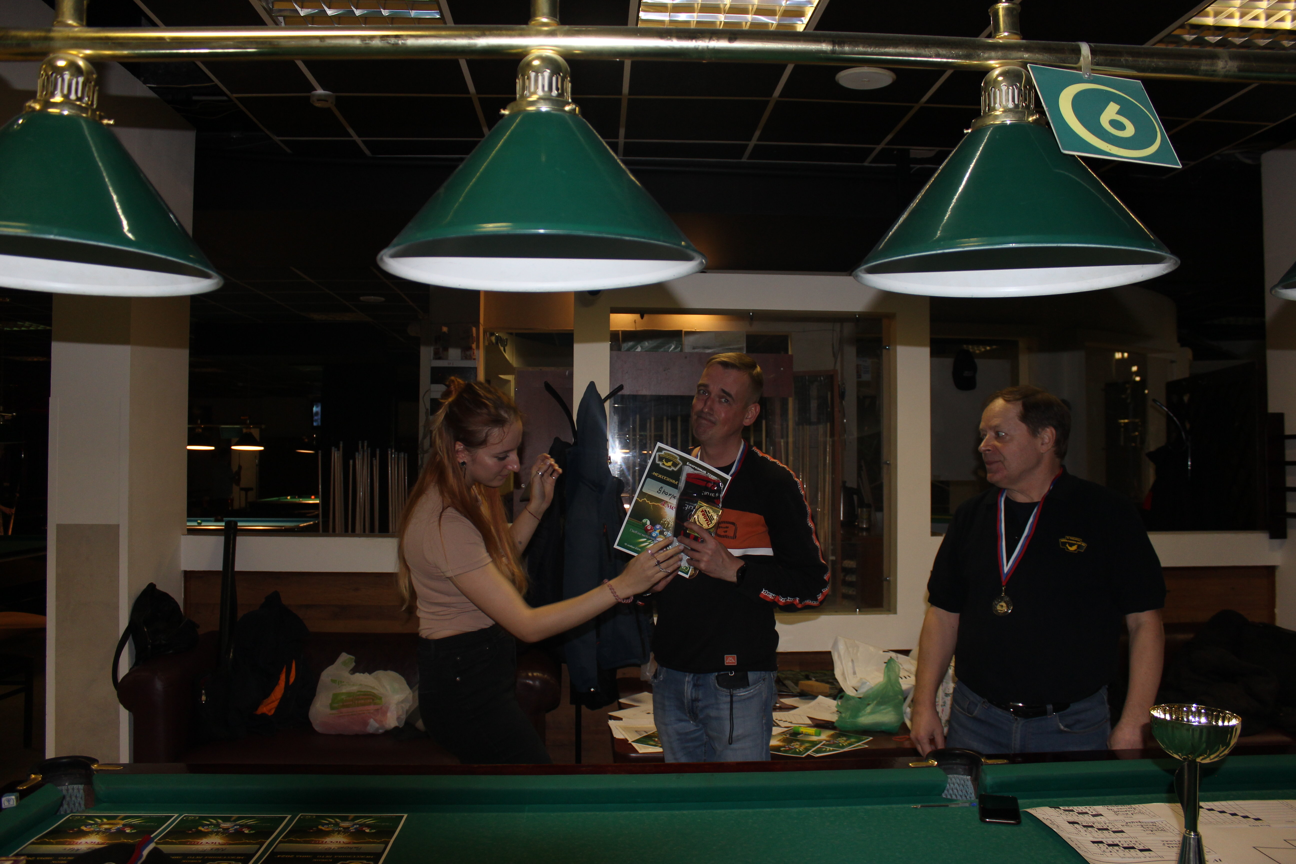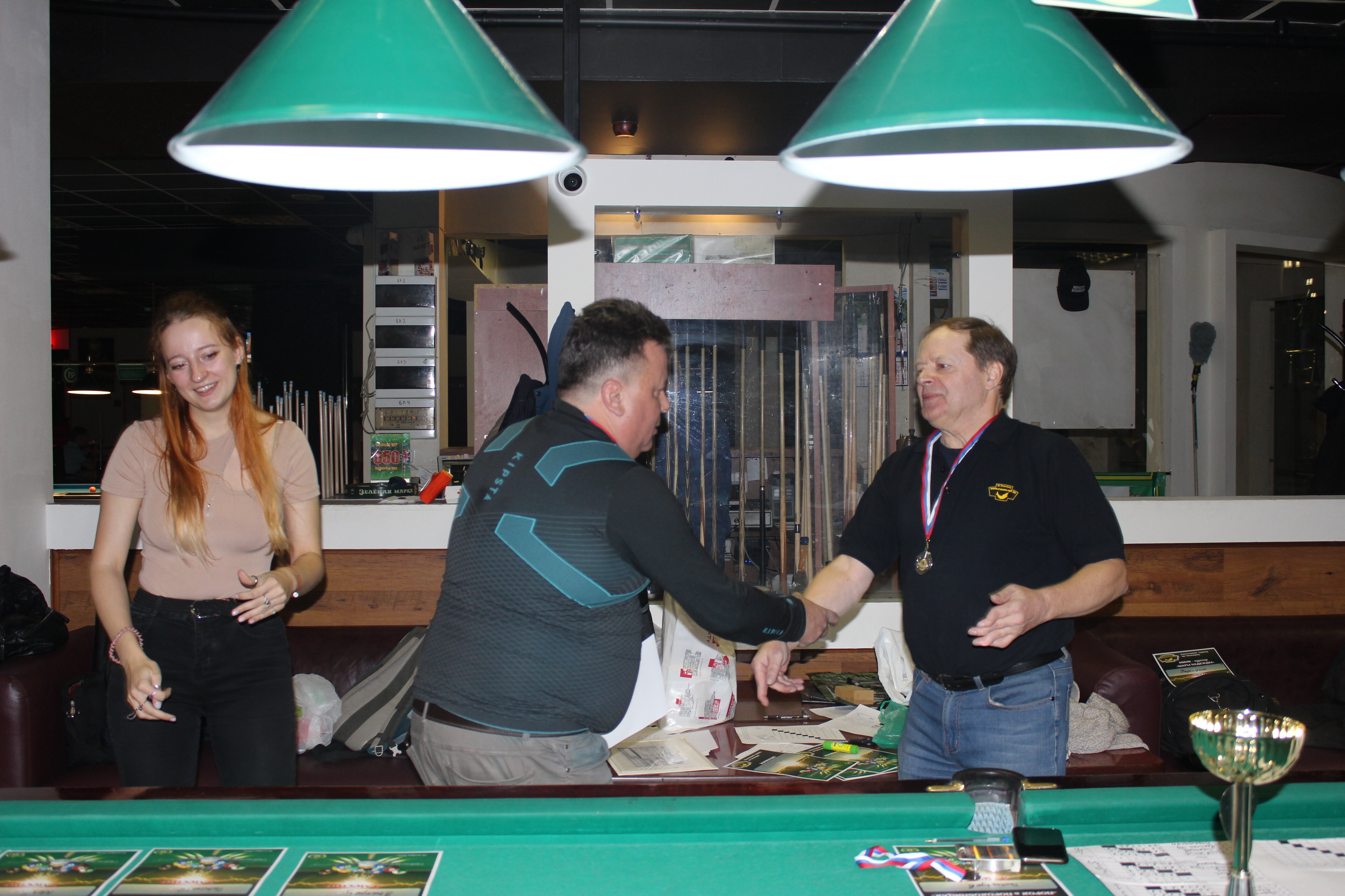 Верещагин Опубликовано: 21 ноября 2024 Жалоба Опубликовано: 21 ноября 2024 (изменено) Первенство ПКР по бильярду "Кубок межсезонья Лето – Зима 2024" ! Участники по факту: Мужчины: 1. Верещагин 2. Sharpey 3. Дима Снайпер 4. Алексей Щ 5. 75-ый 6. Белышев Олег 7. ТусклыЙ Воблер 8. Tasman85 9. Игорь Orochi 10.Эрикович-Сан 11.Эрикович 12. KowboyMax 13. Алексей Удача 14. Poker 15. Kapdva 16. NEXT 17. КНБ 18. Ростислав 19. Горюнов 20. Большой Шурик 21.oFicer 22. NordWest 23. Гараж 24. Pahom10 25 Расторгуев Дамы : 1. Olia 2 Татьяна 3. НадюХа 4. Анюта Сумская 5. Елена 6. Таня И. 7. Галина 8. Ирина Дети: 1. Илья 2. Колян 3. Вероника 4. Миша И снова собрались, поиграли, отдохнули. В этом юбилейном 20-ом турнире удалось провести и дамский турнир с большим количеством участниц -8 и детский- 4 участников. (здесь дружные несмолкающие овации ) Подтянулись достаточно дружно. Предварительно посчитались и оказалось, что заявившихся было слегка побольше. Выпали по разным обстоятельствам достаточно много участников, кто-то не сумел даже предупредить. Лёша Прораб, хоть и не смог участвовать непосредственно в турнире, сумел добраться со мной до клубного склада и забрать призовой фонд, а Кирилл (Тусклый Воблер) помог весь этот праздничный набор, таблицу и меня помог доставить к месту проведения, за что им, конечно, большущее спасибо. Успели четко началу. Итак, размявшись, "отжеребились", сфоткались и ринулись в бой. Стартовые 4 группы сформировались по 6-7 участников. Получилось вполне нарядно. Дамы и дети дружно поддержали турнир и азартно включились в борьбу. Мне не хватило времени последить в подробностях за их игрой , но видел, что там было довольно живенько и весело). Здесь отменно проявили себя мои помощники )НадюХа и Аннушка Сумская. Дима (DEMON) неожиданно захворал и я уже запаниковал, но дамы так активно взялись за организацию, что скоро стало понятно, что девчата справятся. Они-то, собственно, и провели на высочайшем уровне дамский и детский турниры. Оба эти соревнования проводились по специальным правилам, что помогло динамично и интересно добиться желаемых результатов. Ну молодцы же. В высшей степени отличились наши народные спонсоры. Артём "Poker" и конечно же, как всегда, Слава "Гараж". Там и цветы и Бутылочка вкусного вина для дамских финалистов. Спасибище за такую поддержку. Максим "Kowboy MAX" создал традиционные тематические дипломы, которые по достоинству оценили их обладатели. И, конечно же, сам турнир среди мужчин не прошёл бы так организованно и динамично без неоценимой помощи НадюХа и Аннушки, которые с первых минут включилась в работу и весь турнир тащили на себе организаторско - оформительскую часть этого действа. К ней активно подключался Володя kapdva. Да в принципе все участники по ходу турнира подключались активно. Крайне благодарен ребятам за такую поддержку. Спасибо гостям и зрителям. Спасибо Серёге MCHS, который приехал традиционно поболеть и поддержать. Благодарю всех участников турнира, "старичков" и новых бойцов. Спасибо Клубу и компании "Эко-Групп" за помощь в формировании медально-сувенирного фонда. Итоги: Самый преданный болельщик – Сергей MCHS Ветеран турнира- Эрикович Сан За самую длинную серию отмечен Kowboy MAX трижды по 4 шара - Минитурнир "Порох в пороховницах"(4-ые места в группах) 1-е место – NordWest .- медаль, диплом, приз. 2-е место – Верещагин - медаль, диплом, приз 3-е место – C.Горюнов - медаль, диплом, приз. 4-е место – Алексей Щ - медаль, диплом, пр