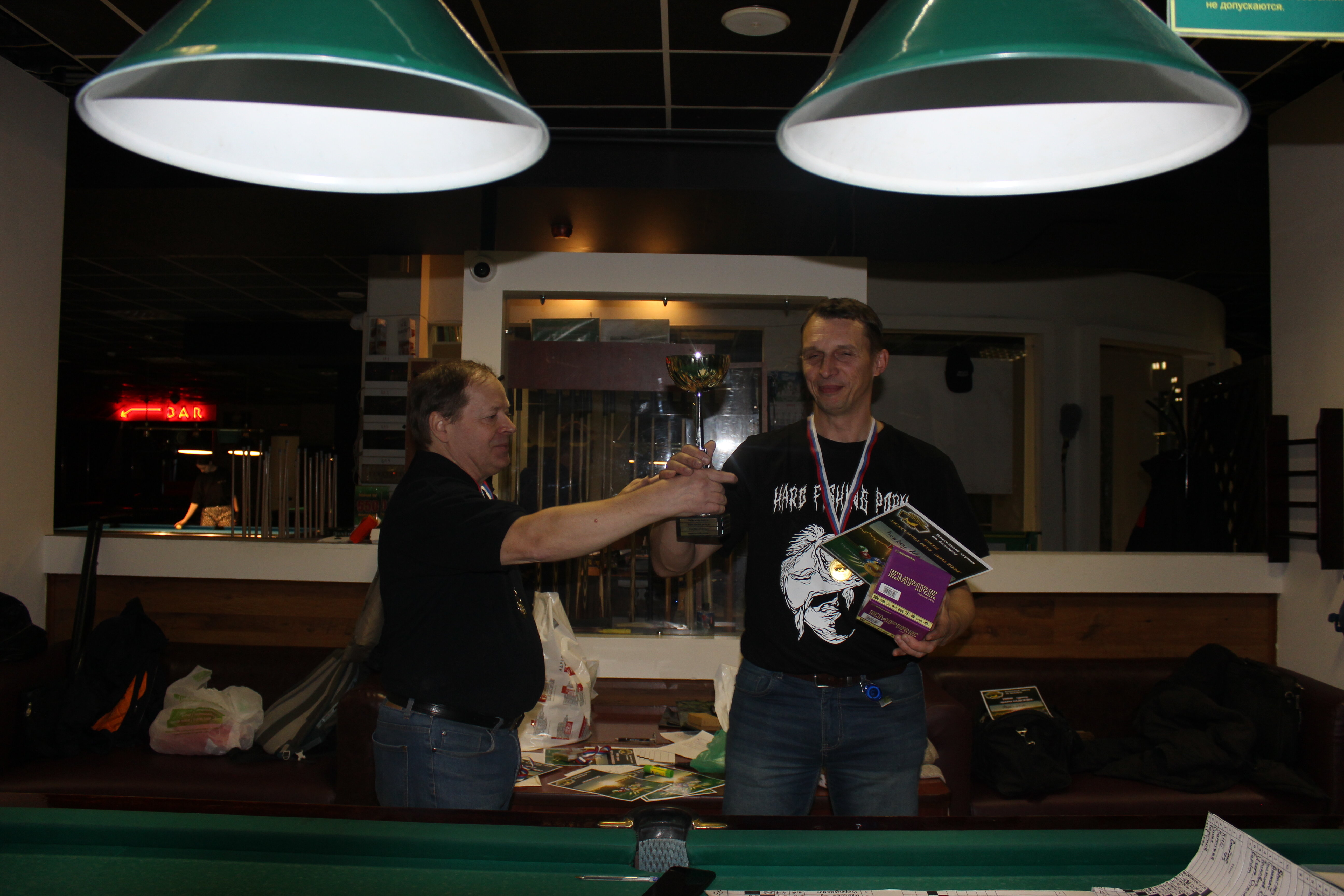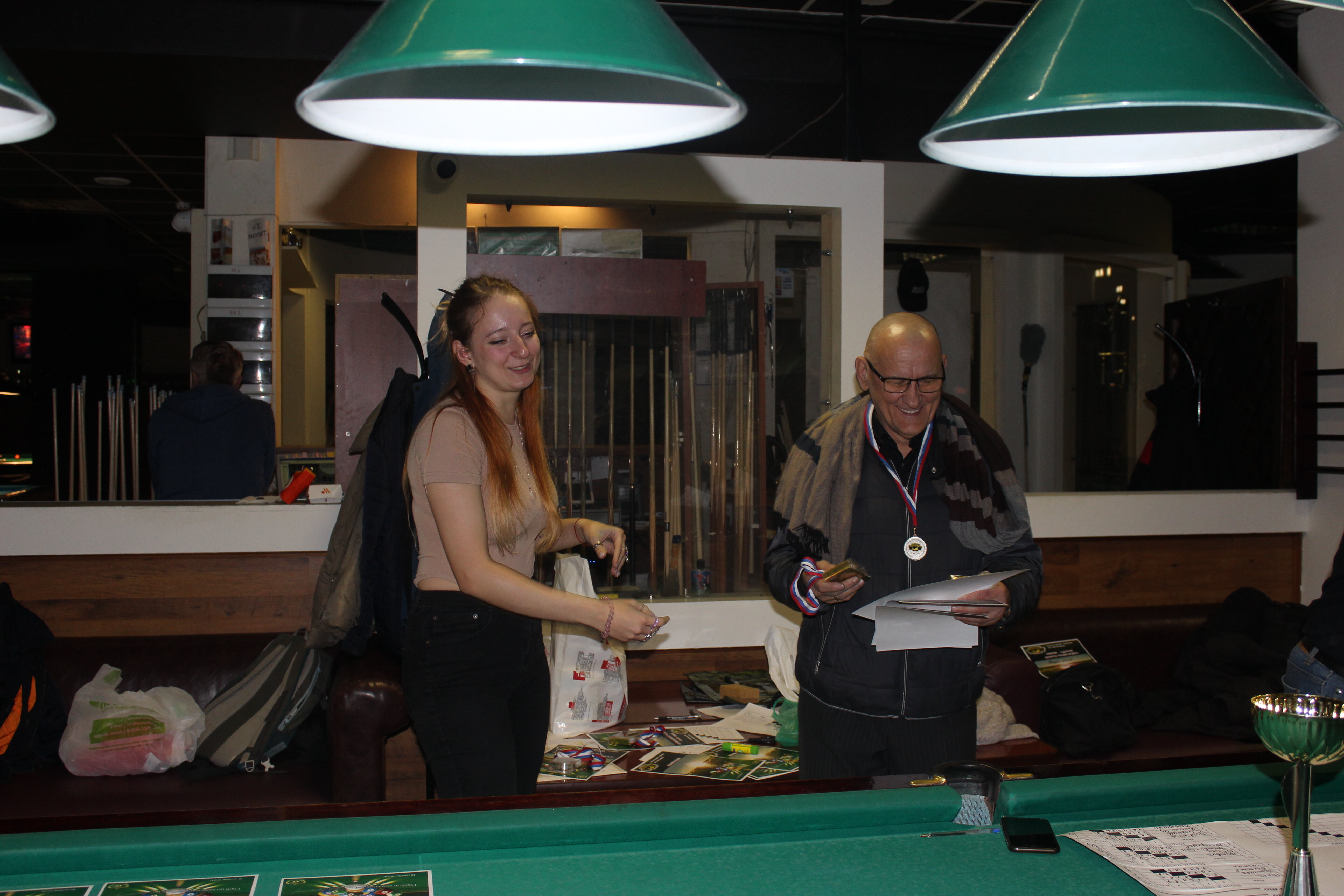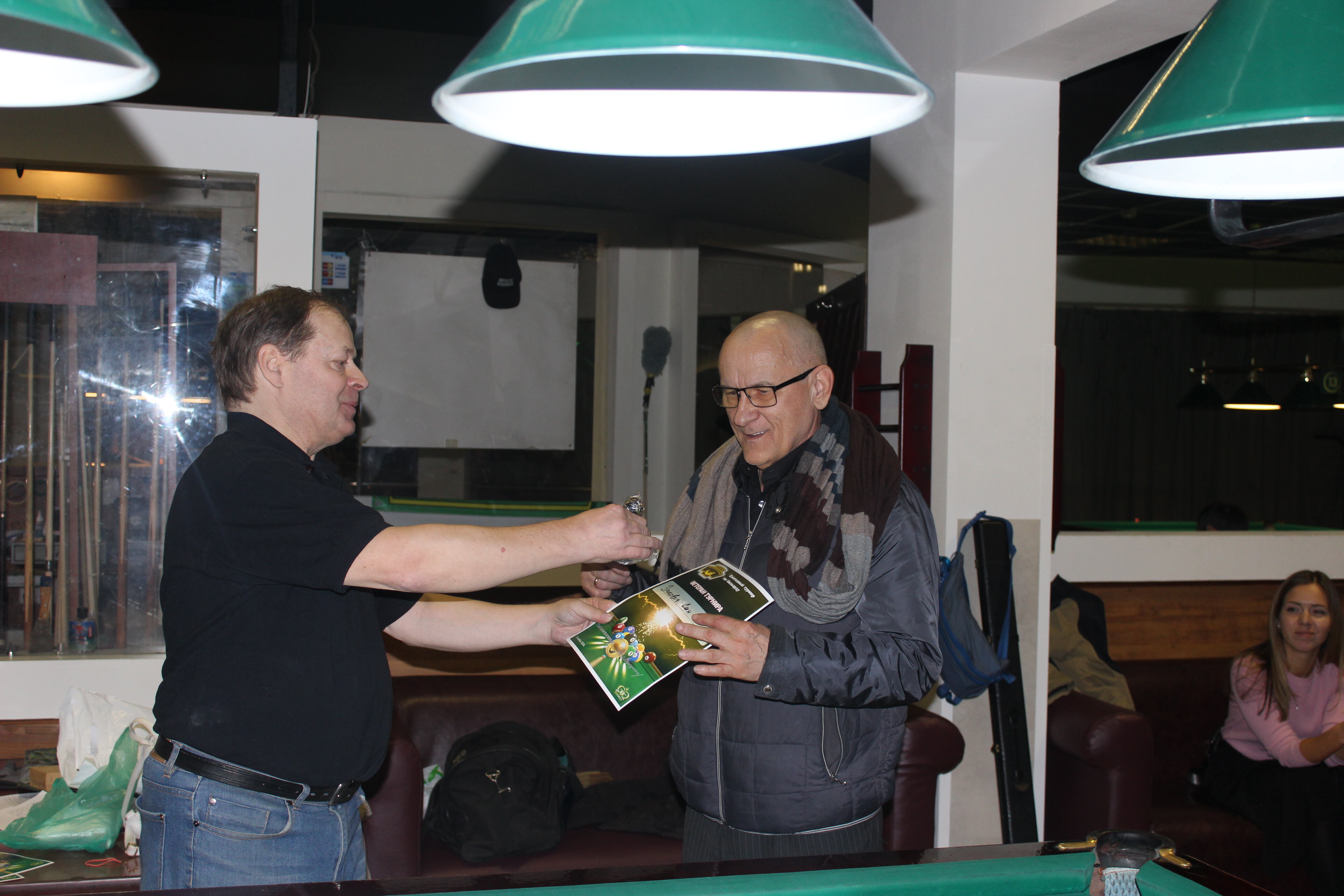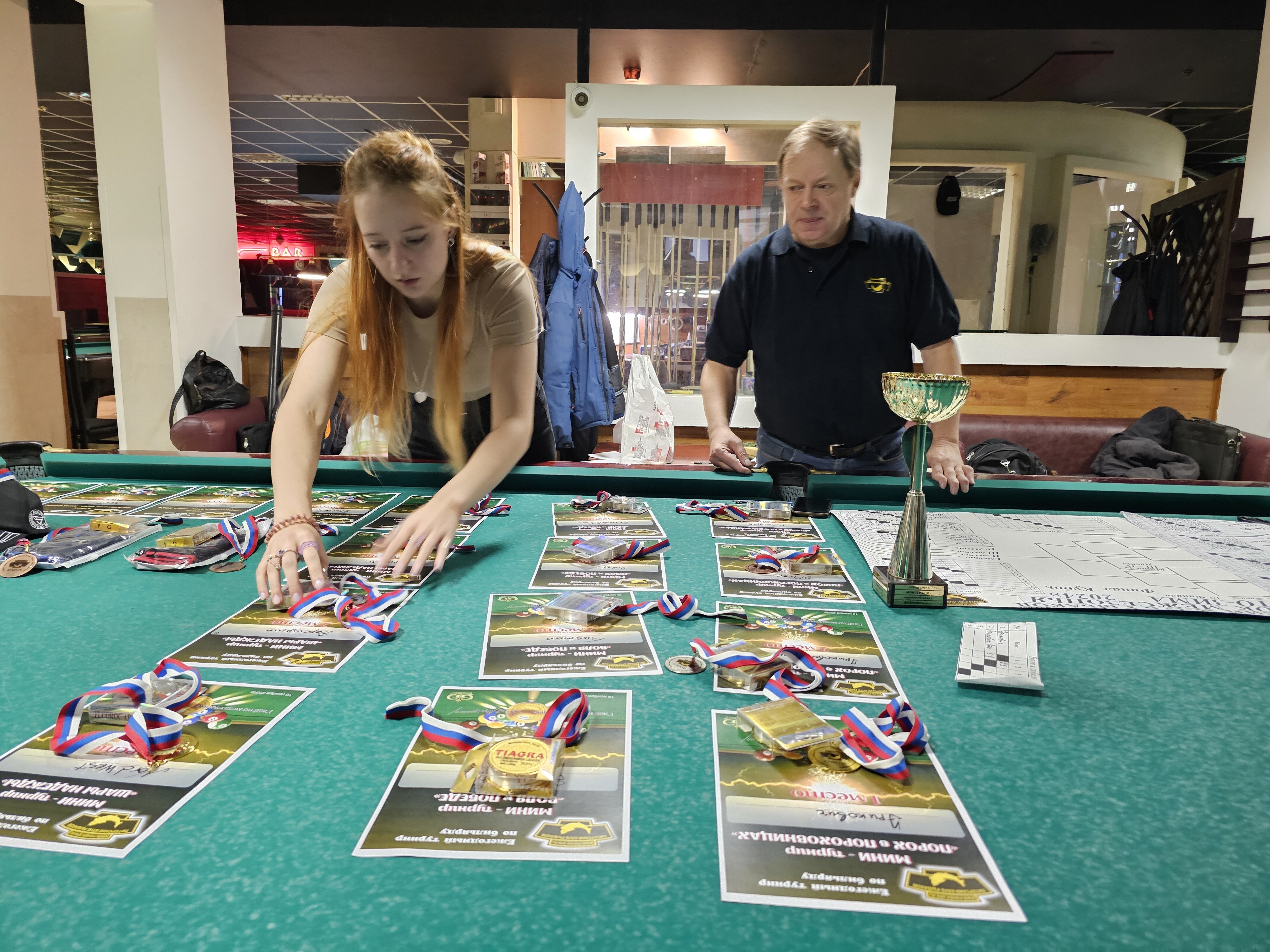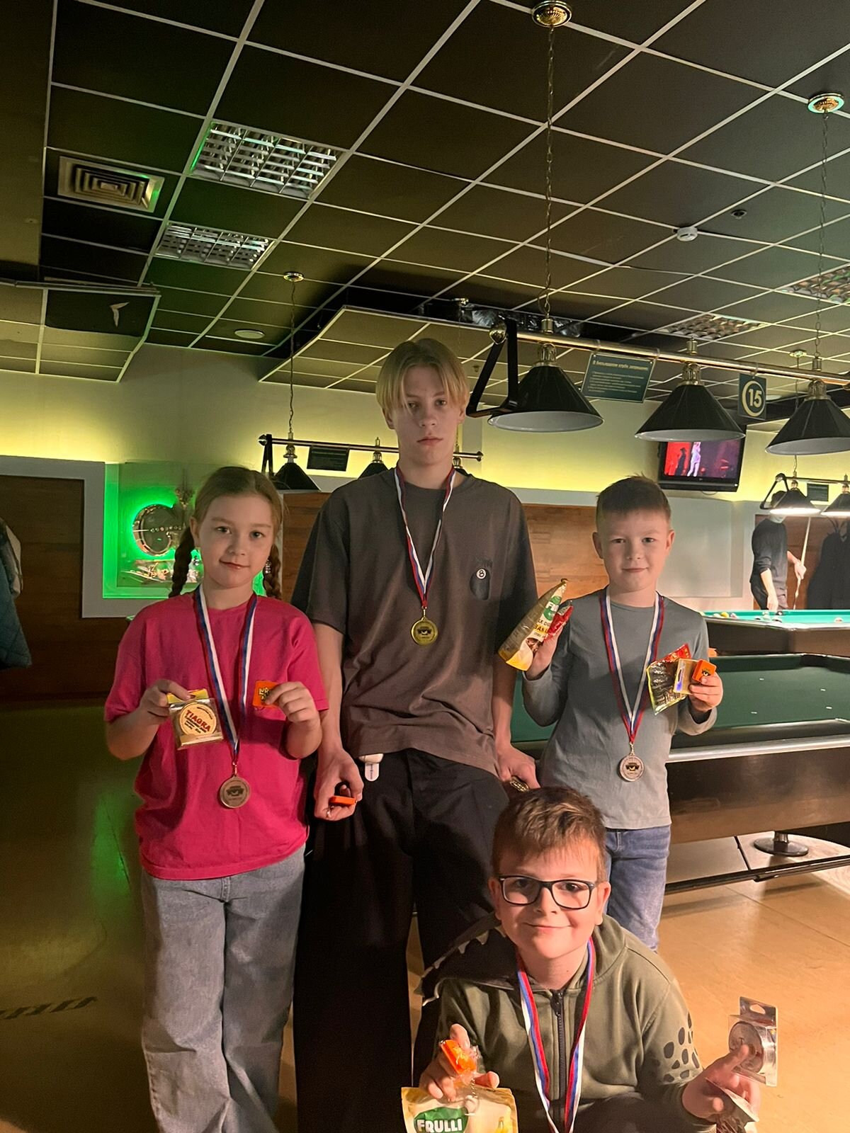 Верещагин Опубликовано: 21 ноября 2024 Жалоба Опубликовано: 21 ноября 2024 (изменено) Первенство ПКР по бильярду "Кубок межсезонья Лето – Зима 2024" ! Участники по факту: Мужчины: 1. Верещагин 2. Sharpey 3. Дима Снайпер 4. Алексей Щ 5. 75-ый 6. Белышев Олег 7. ТусклыЙ Воблер 8. Tasman85 9. Игорь Orochi 10.Эрикович-Сан 11.Эрикович 12. KowboyMax 13. Алексей Удача 14. Poker 15. Kapdva 16. NEXT 17. КНБ 18. Ростислав 19. Горюнов 20. Большой Шурик 21.oFicer 22. NordWest 23. Гараж 24. Pahom10 25 Расторгуев Дамы : 1. Olia 2 Татьяна 3. НадюХа 4. Анюта Сумская 5. Елена 6. Таня И. 7. Галина 8. Ирина Дети: 1. Илья 2. Колян 3. Вероника 4. Миша И снова собрались, поиграли, отдохнули. В этом юбилейном 20-ом турнире удалось провести и дамский турнир с большим количеством участниц -8 и детский- 4 участников. (здесь дружные несмолкающие овации ) Подтянулись достаточно дружно. Предварительно посчитались и оказалось, что заявившихся было слегка побольше. Выпали по разным обстоятельствам достаточно много участников, кто-то не сумел даже предупредить. Лёша Прораб, хоть и не смог участвовать непосредственно в турнире, сумел добраться со мной до клубного склада и забрать призовой фонд, а Кирилл (Тусклый Воблер) помог весь этот праздничный набор, таблицу и меня помог доставить к месту проведения, за что им, конечно, большущее спасибо. Успели четко началу. Итак, размявшись, "отжеребились", сфоткались и ринулись в бой. Стартовые 4 группы сформировались по 6-7 участников. Получилось вполне нарядно. Дамы и дети дружно поддержали турнир и азартно включились в борьбу. Мне не хватило времени последить в подробностях за их игрой , но видел, что там было довольно живенько и весело). Здесь отменно проявили себя мои помощники )НадюХа и Аннушка Сумская. Дима (DEMON) неожиданно захворал и я уже запаниковал, но дамы так активно взялись за организацию, что скоро стало понятно, что девчата справятся. Они-то, собственно, и провели на высочайшем уровне дамский и детский турниры. Оба эти соревнования проводились по специальным правилам, что помогло динамично и интересно добиться желаемых результатов. Ну молодцы же. В высшей степени отличились наши народные спонсоры. Артём "Poker" и конечно же, как всегда, Слава "Гараж". Там и цветы и Бутылочка вкусного вина для дамских финалистов. Спасибище за такую поддержку. Максим "Kowboy MAX" создал традиционные тематические дипломы, которые по достоинству оценили их обладатели. И, конечно же, сам турнир среди мужчин не прошёл бы так организованно и динамично без неоценимой помощи НадюХа и Аннушки, которые с первых минут включилась в работу и весь турнир тащили на себе организаторско - оформительскую часть этого действа. К ней активно подключался Володя kapdva. Да в принципе все участники по ходу турнира подключались активно. Крайне благодарен ребятам за такую поддержку. Спасибо гостям и зрителям. Спасибо Серёге MCHS, который приехал традиционно поболеть и поддержать. Благодарю всех участников турнира, "старичков" и новых бойцов. Спасибо Клубу и компании "Эко-Групп" за помощь в формировании медально-сувенирного фонда. Итоги: Самый преданный болельщик – Сергей MCHS Ветеран турнира- Эрикович Сан За самую длинную серию отмечен Kowboy MAX трижды по 4 шара - Минитурнир "Порох в пороховницах"(4-ые места в группах) 1-е место – NordWest .- медаль, диплом, приз. 2-е место – Верещагин - медаль, диплом, приз 3-е место – C.Горюнов - медаль, диплом, приз. 4-е место – Алексей Щ - медаль, диплом, пр