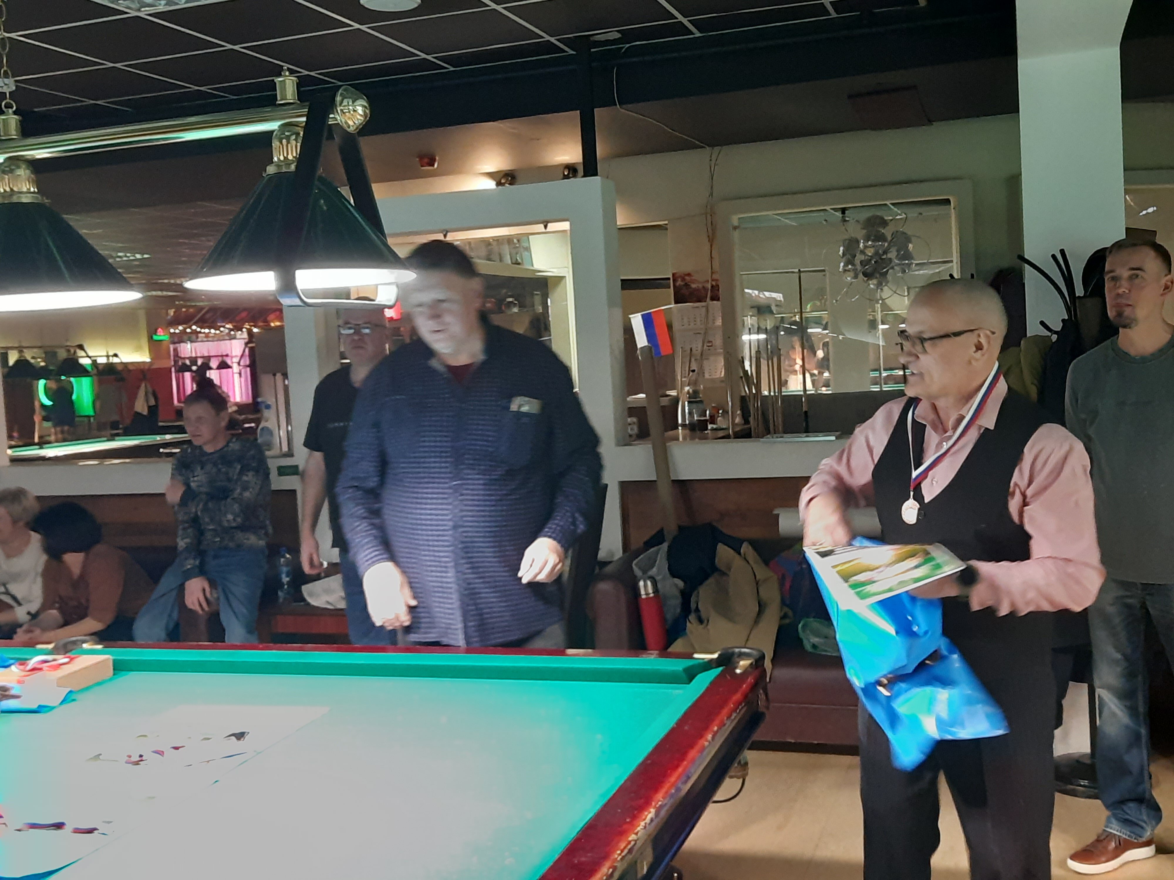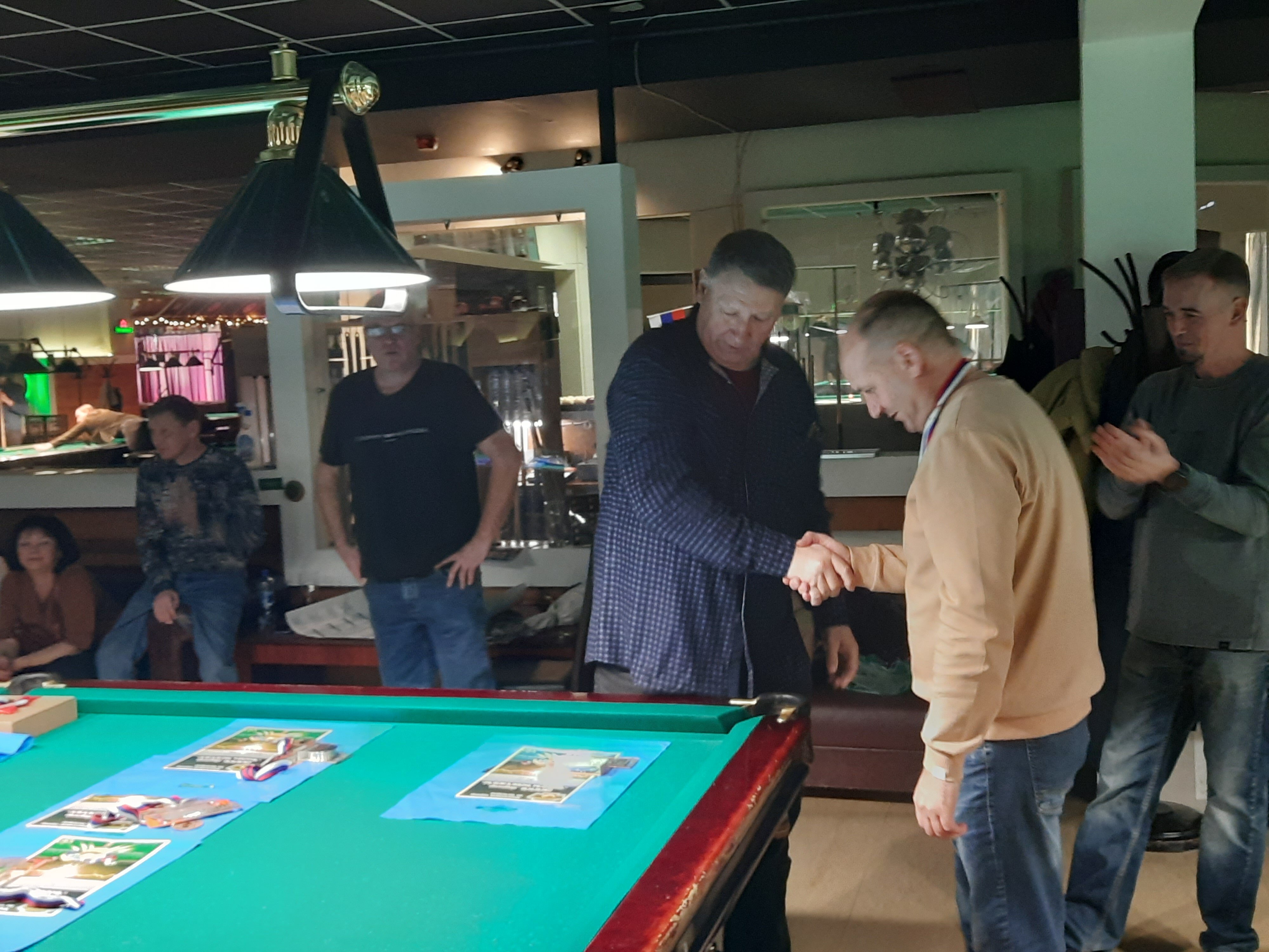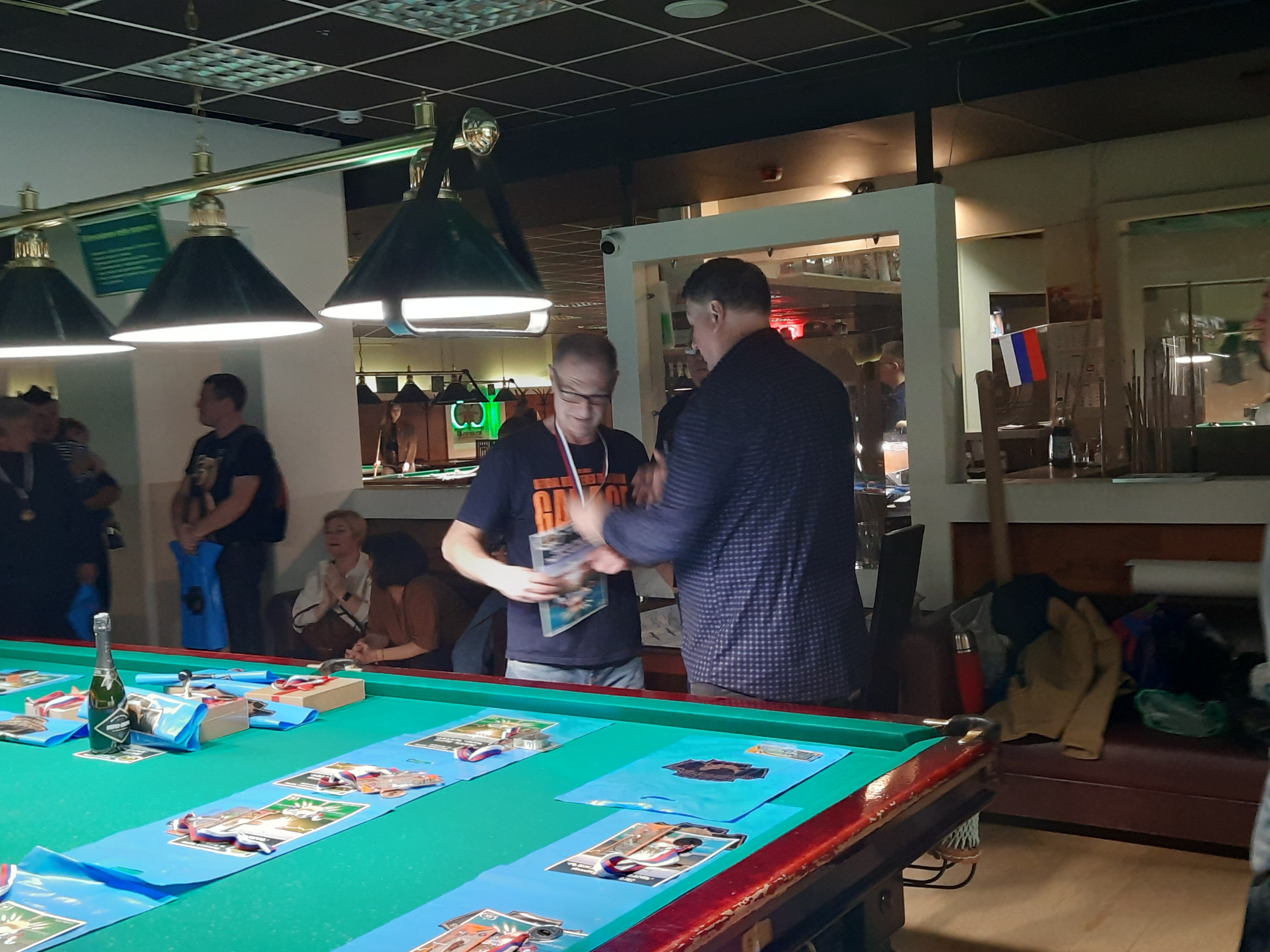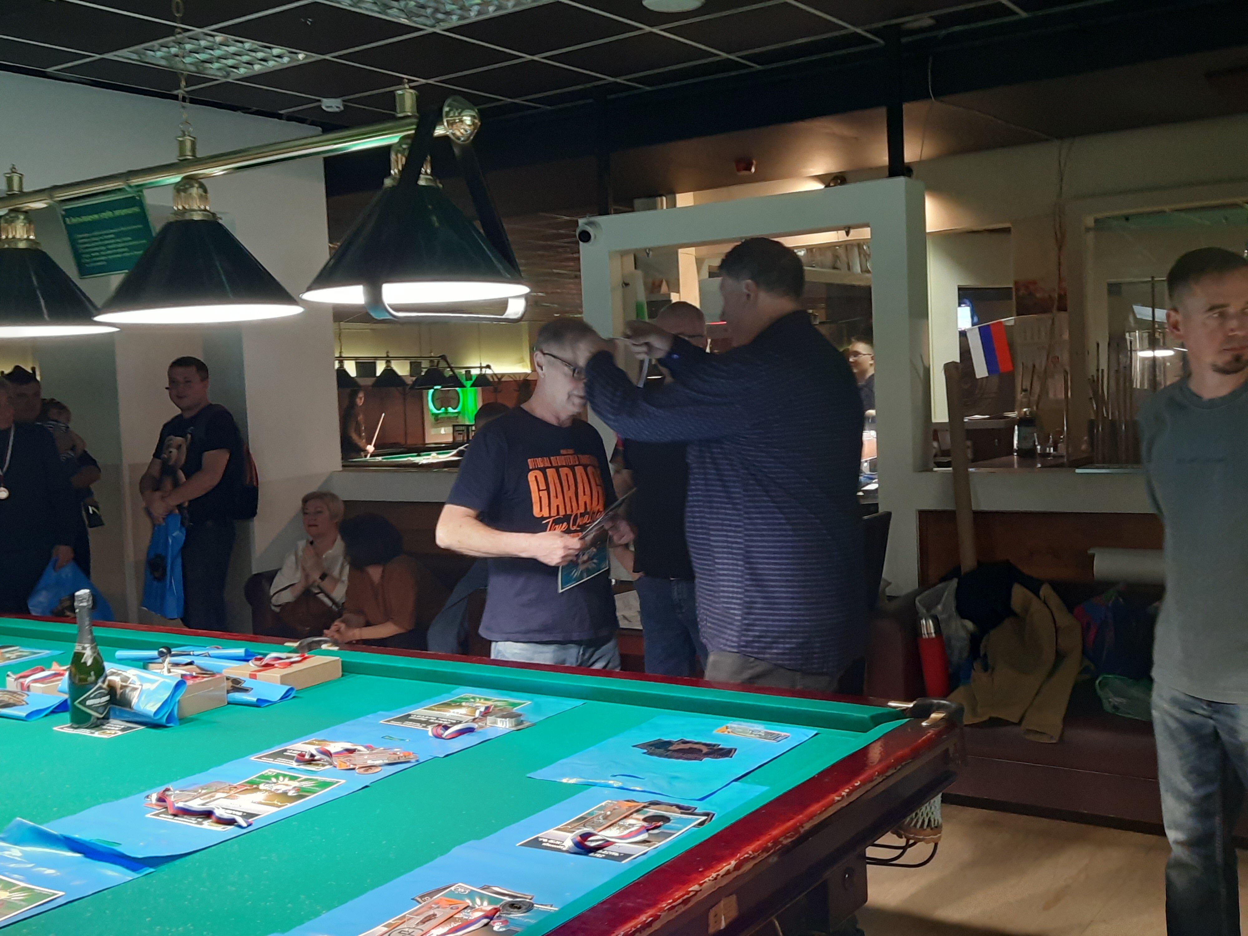 Tasman Опубликовано: 17 ноября Жалоба Опубликовано: 17 ноября Эта была славная битва! В одном месте собрались самые матерые волки, львицы и и младшее поколение перенимающее опыт. Пот, слезы, скрежет зубов и изредка доносящиеся стоны от поражений или громкие восклицания от побед заполонили эту территорию. В воздухе летал дух ожесточенной борьбы... Кто то делал подножки, кто то отодвигал стол в момент удара соперника, кто то забирался на стол и перехватывал летящие шары в лузу. Но это не остановило самых стойких взойти на пьедестал. Просушив сукно от слез и пота началась уже праздничная часть награждения. Всех был рад видеть! Спасибо как всегда нашим неравнодушным "Оргам", которые взяли на себя организацию мероприятия. Очень получилось душевно. А то сидели бы по пещерам да грызли бы кость. По братски, от души!!! Поделиться сообщением Ссылка на сообщение Поделиться на других сайтах More sharing options...