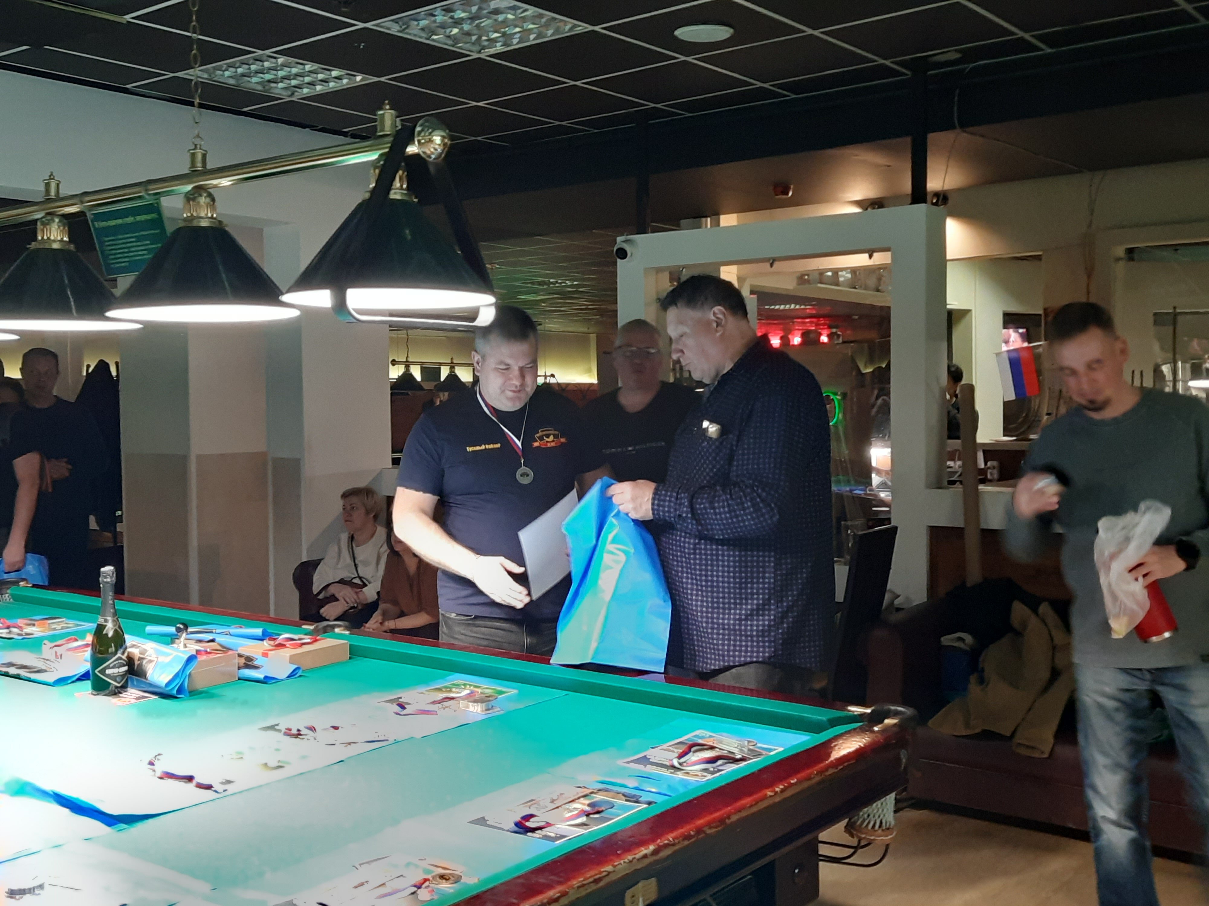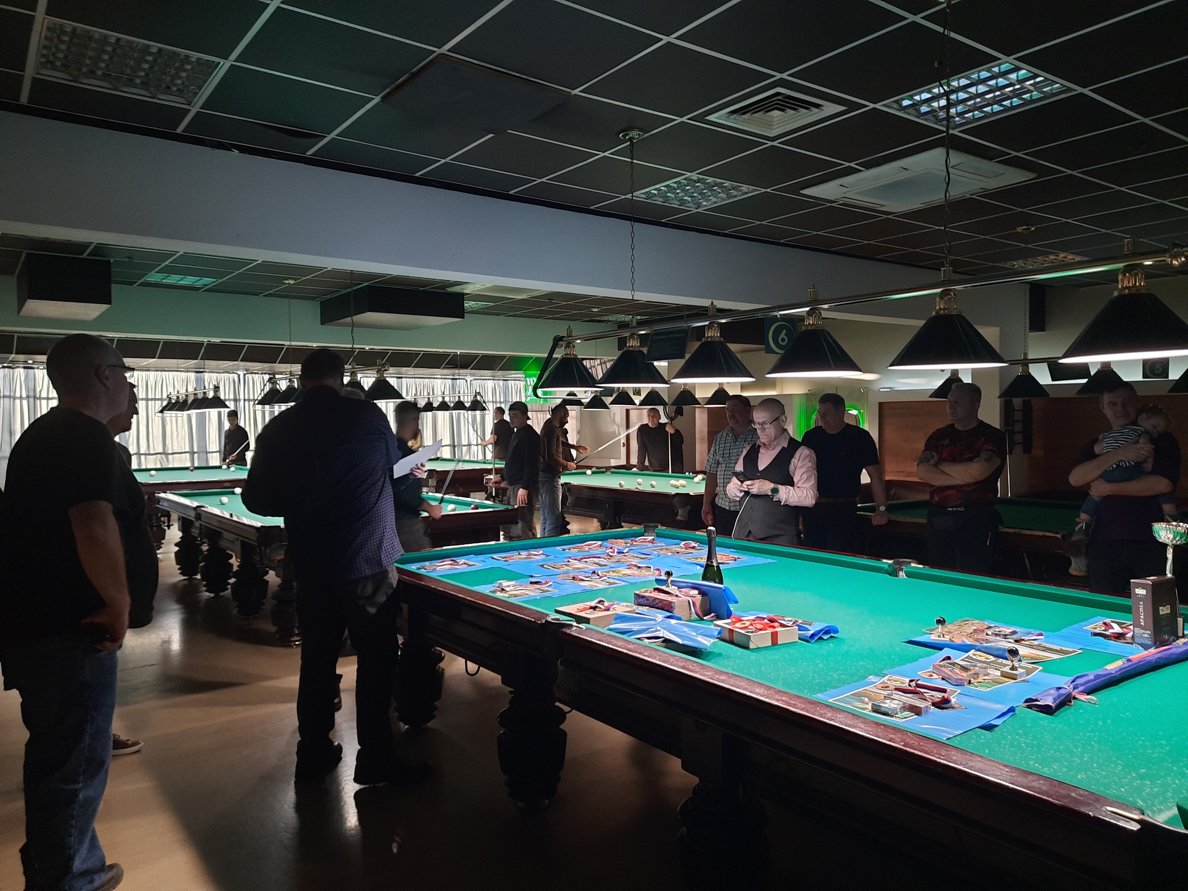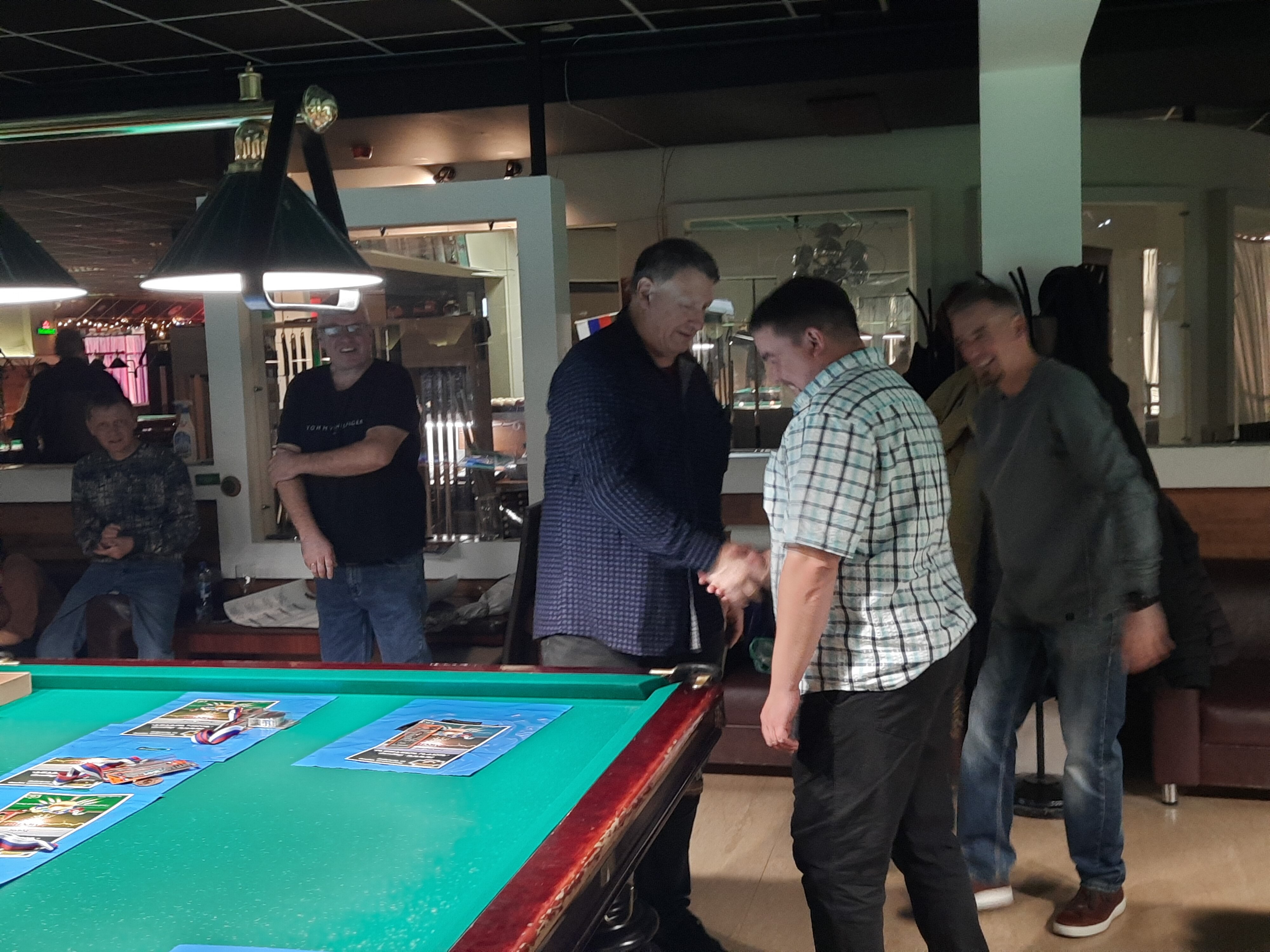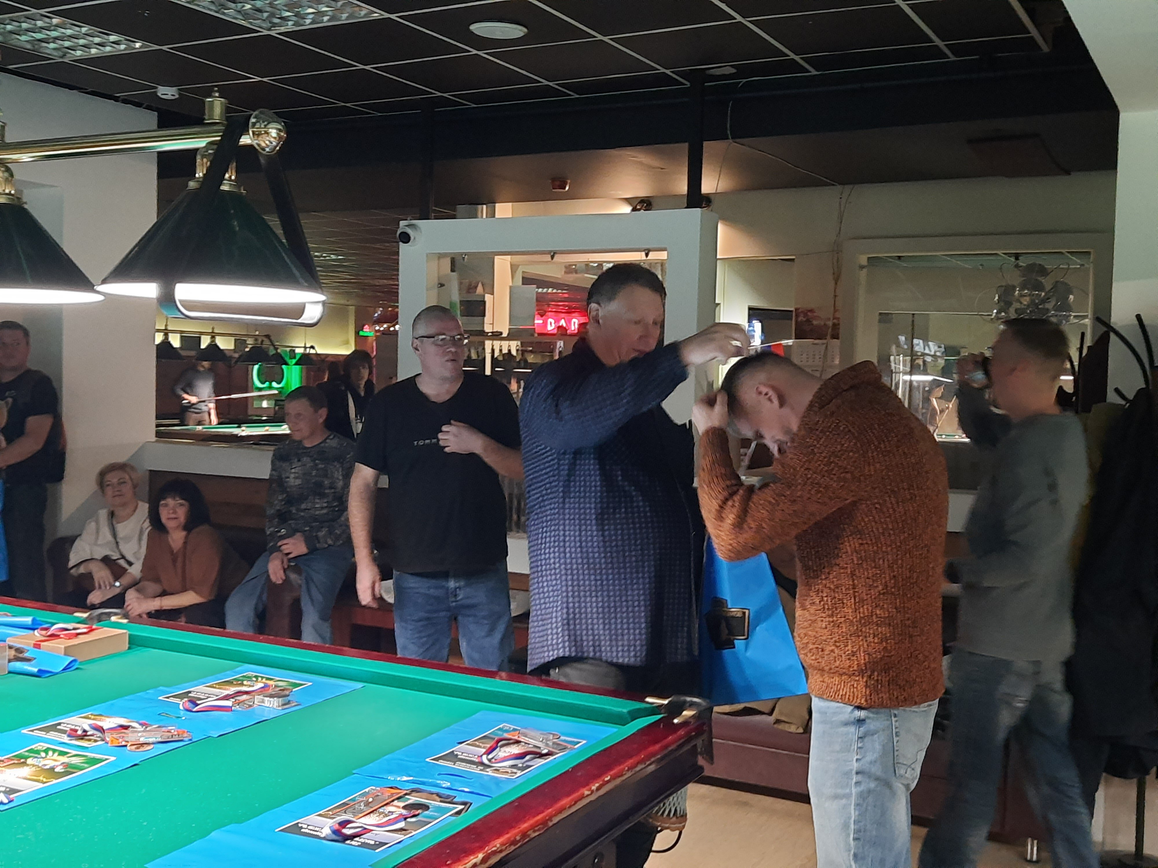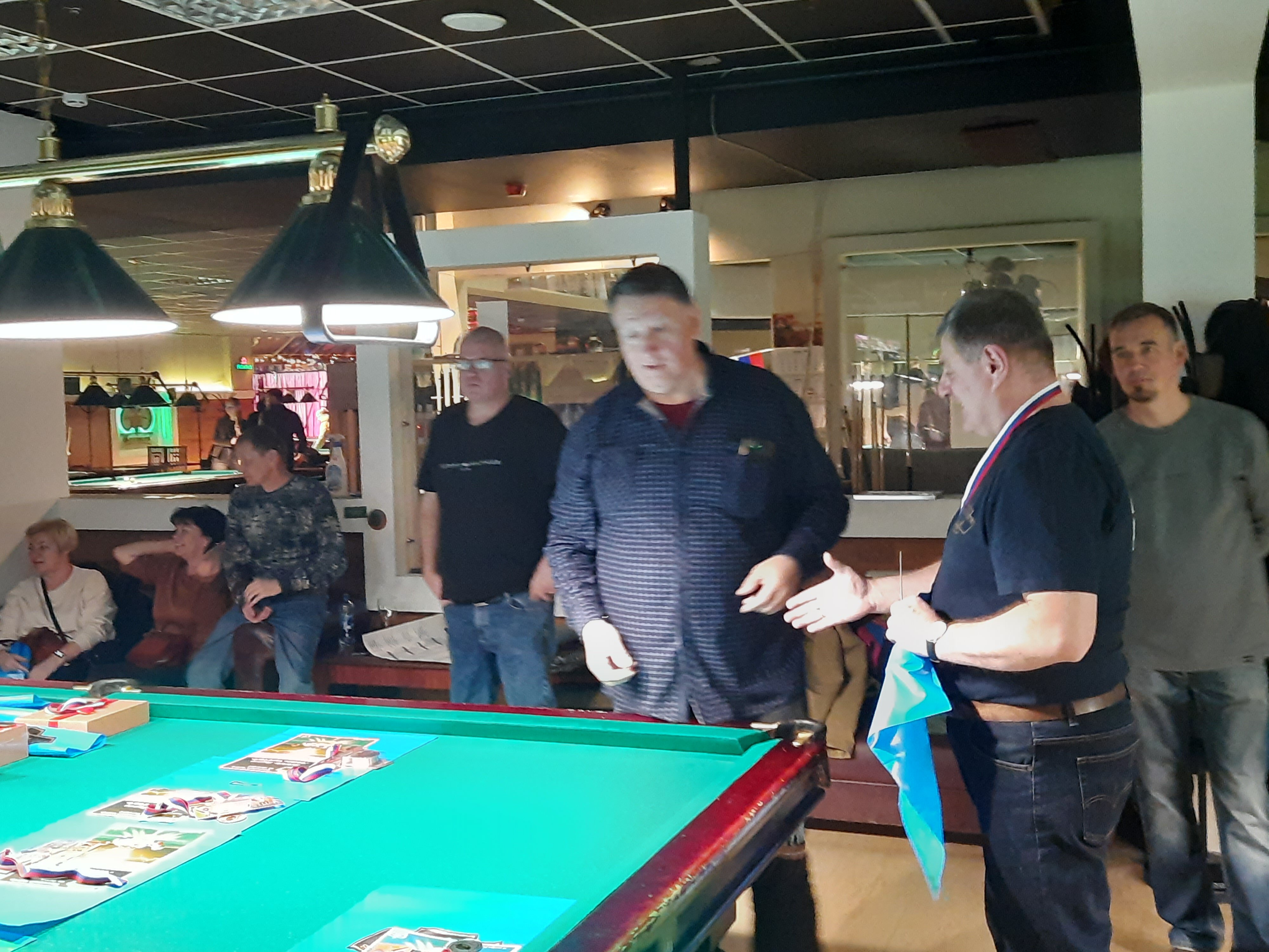 Tasman Опубликовано: 17 ноября Жалоба Опубликовано: 17 ноября Эта была славная битва! В одном месте собрались самые матерые волки, львицы и и младшее поколение перенимающее опыт. Пот, слезы, скрежет зубов и изредка доносящиеся стоны от поражений или громкие восклицания от побед заполонили эту территорию. В воздухе летал дух ожесточенной борьбы... Кто то делал подножки, кто то отодвигал стол в момент удара соперника, кто то забирался на стол и перехватывал летящие шары в лузу. Но это не остановило самых стойких взойти на пьедестал. Просушив сукно от слез и пота началась уже праздничная часть награждения. Всех был рад видеть! Спасибо как всегда нашим неравнодушным "Оргам", которые взяли на себя организацию мероприятия. Очень получилось душевно. А то сидели бы по пещерам да грызли бы кость. По братски, от души!!! Поделиться сообщением Ссылка на сообщение Поделиться на других сайтах More sharing options...