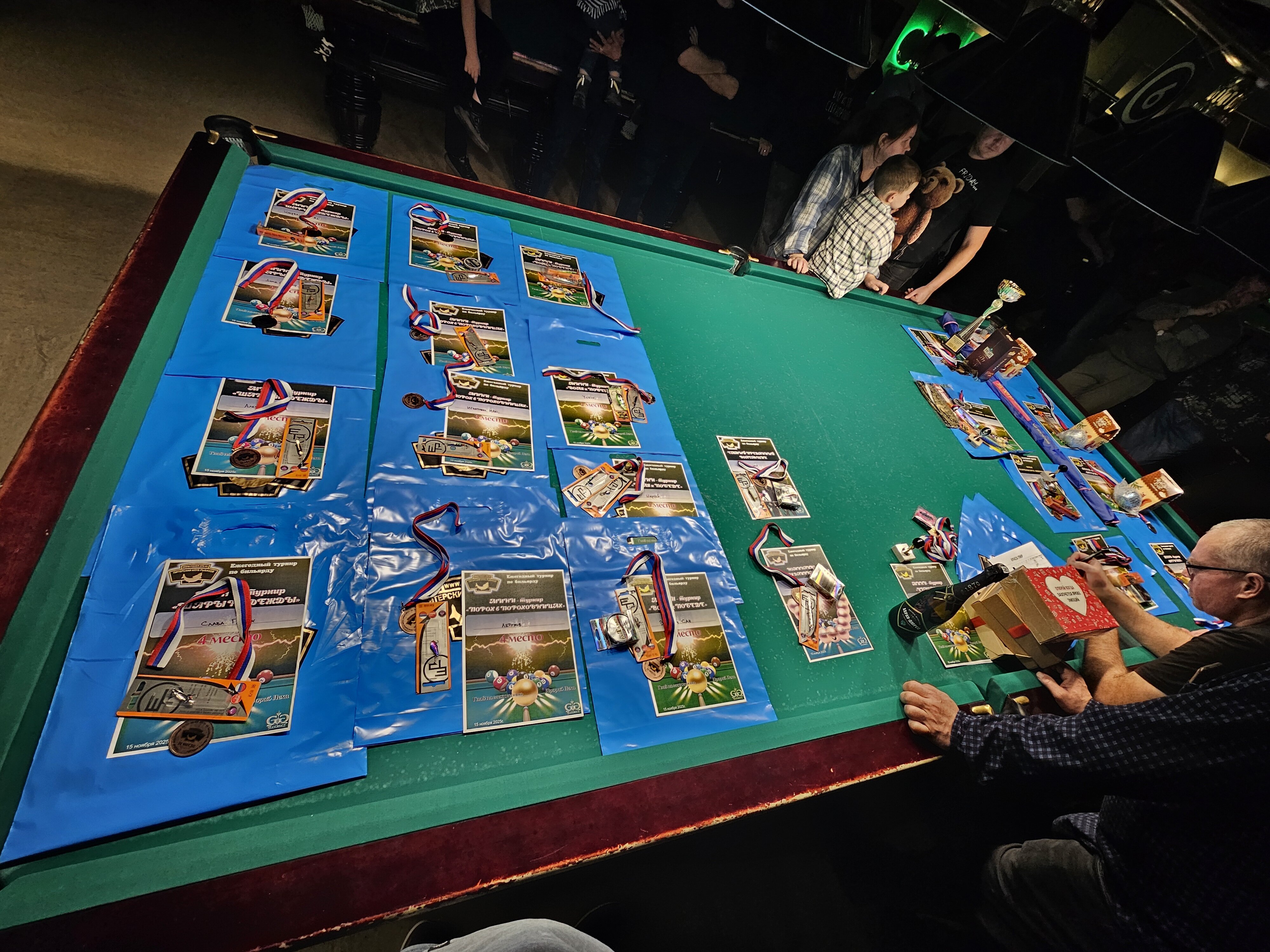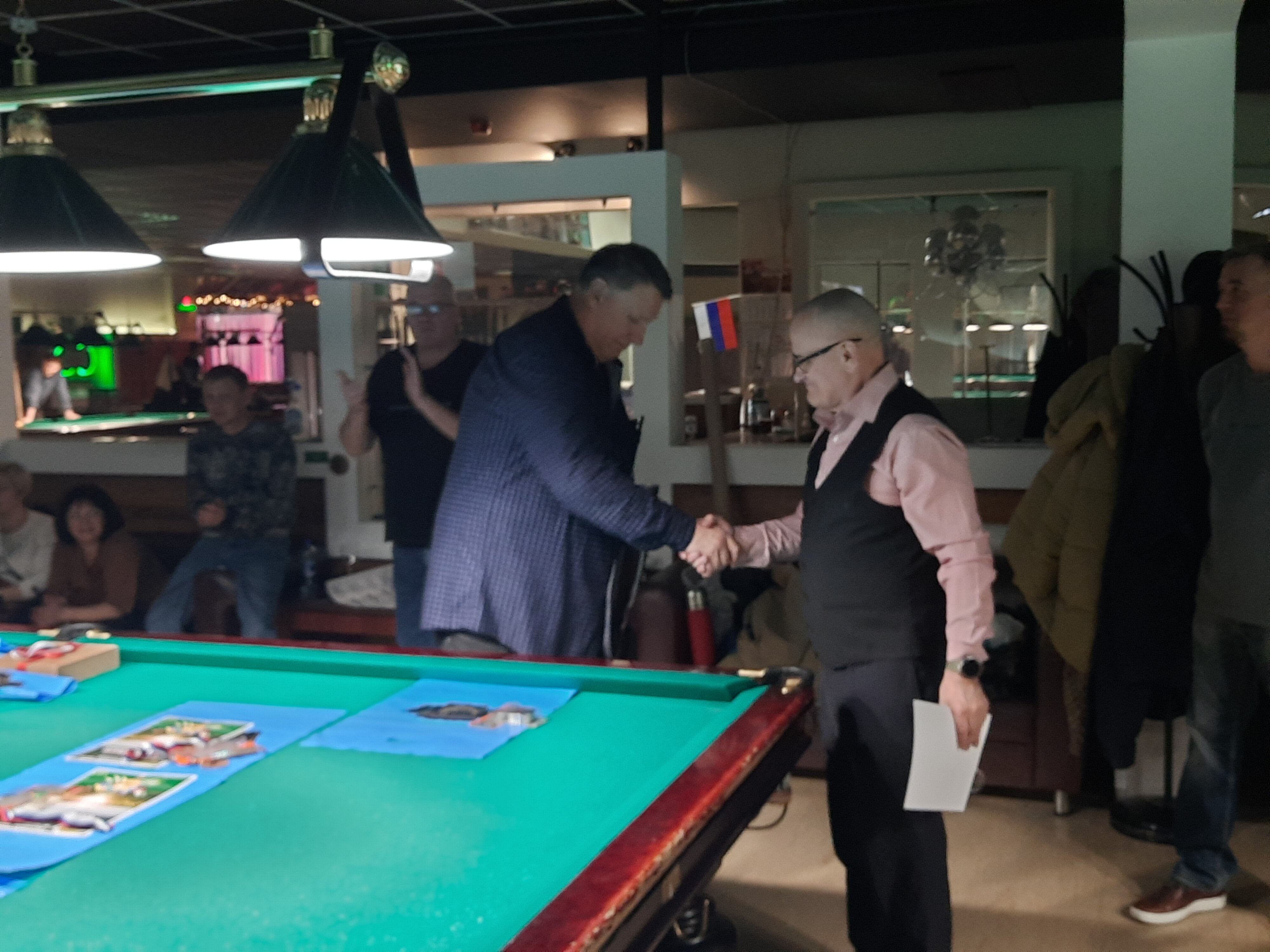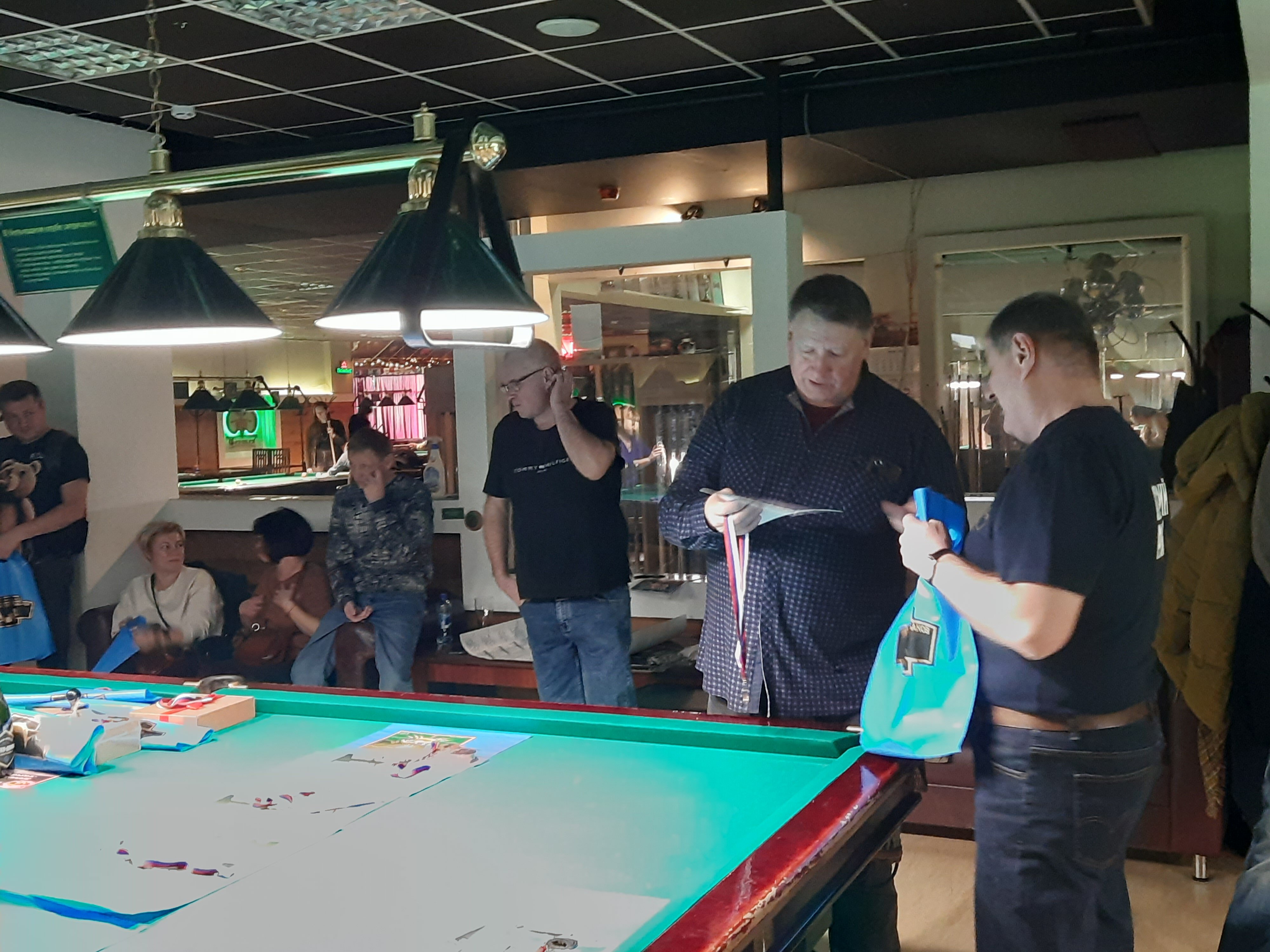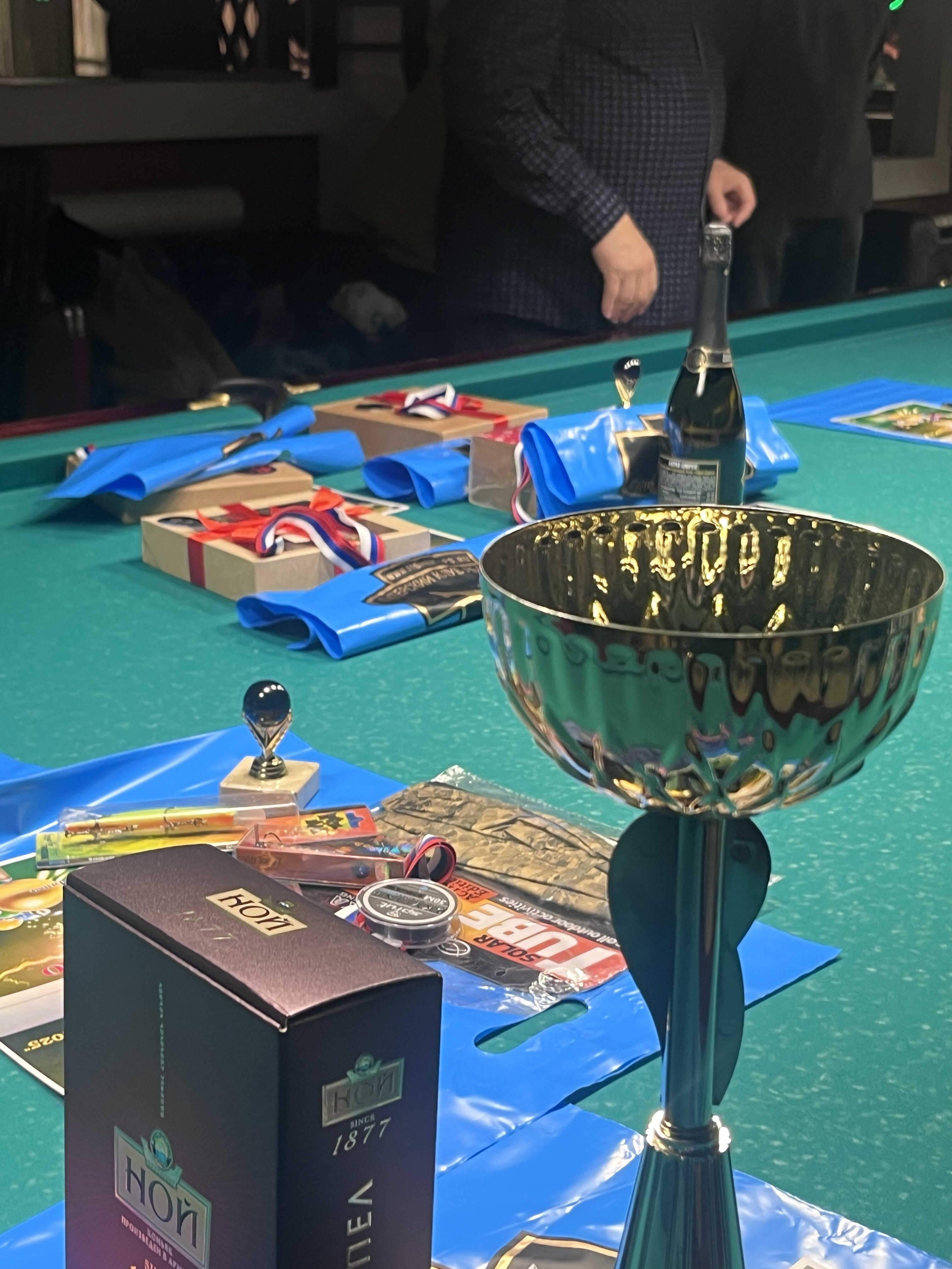 Tasman Опубликовано: 17 ноября Жалоба Опубликовано: 17 ноября Эта была славная битва! В одном месте собрались самые матерые волки, львицы и и младшее поколение перенимающее опыт. Пот, слезы, скрежет зубов и изредка доносящиеся стоны от поражений или громкие восклицания от побед заполонили эту территорию. В воздухе летал дух ожесточенной борьбы... Кто то делал подножки, кто то отодвигал стол в момент удара соперника, кто то забирался на стол и перехватывал летящие шары в лузу. Но это не остановило самых стойких взойти на пьедестал. Просушив сукно от слез и пота началась уже праздничная часть награждения. Всех был рад видеть! Спасибо как всегда нашим неравнодушным "Оргам", которые взяли на себя организацию мероприятия. Очень получилось душевно. А то сидели бы по пещерам да грызли бы кость. По братски, от души!!! Поделиться сообщением Ссылка на сообщение Поделиться на других сайтах More sharing options...