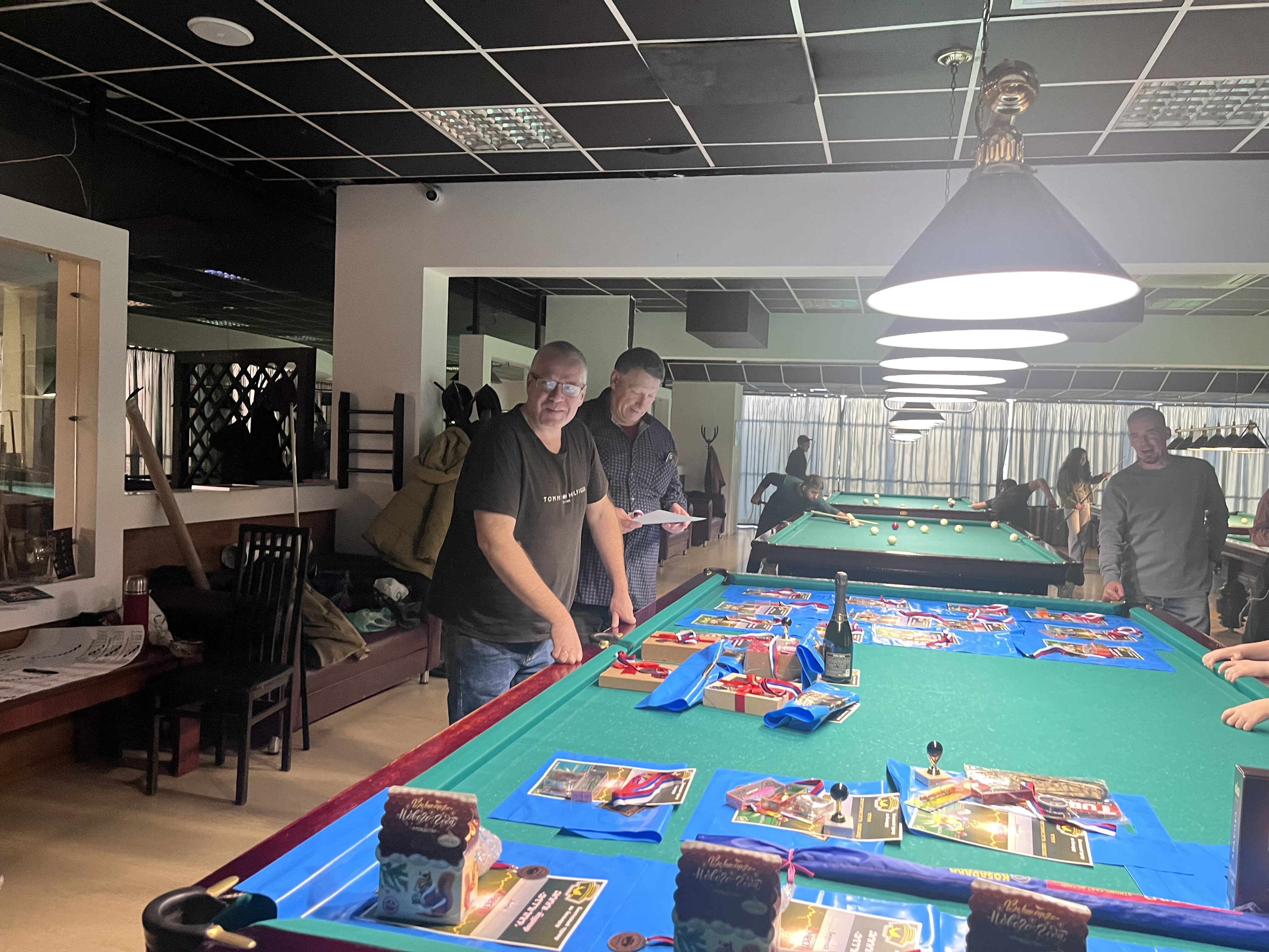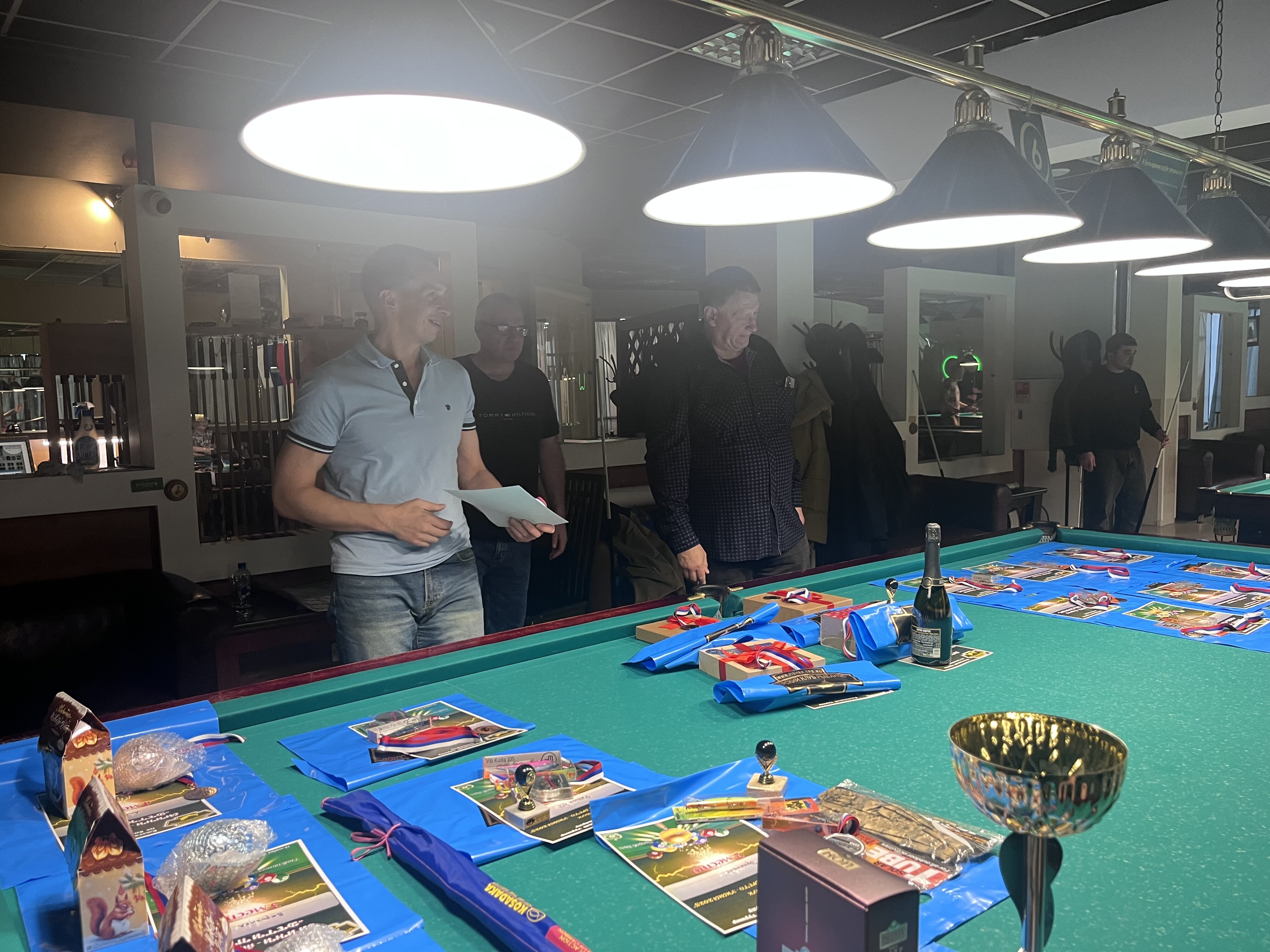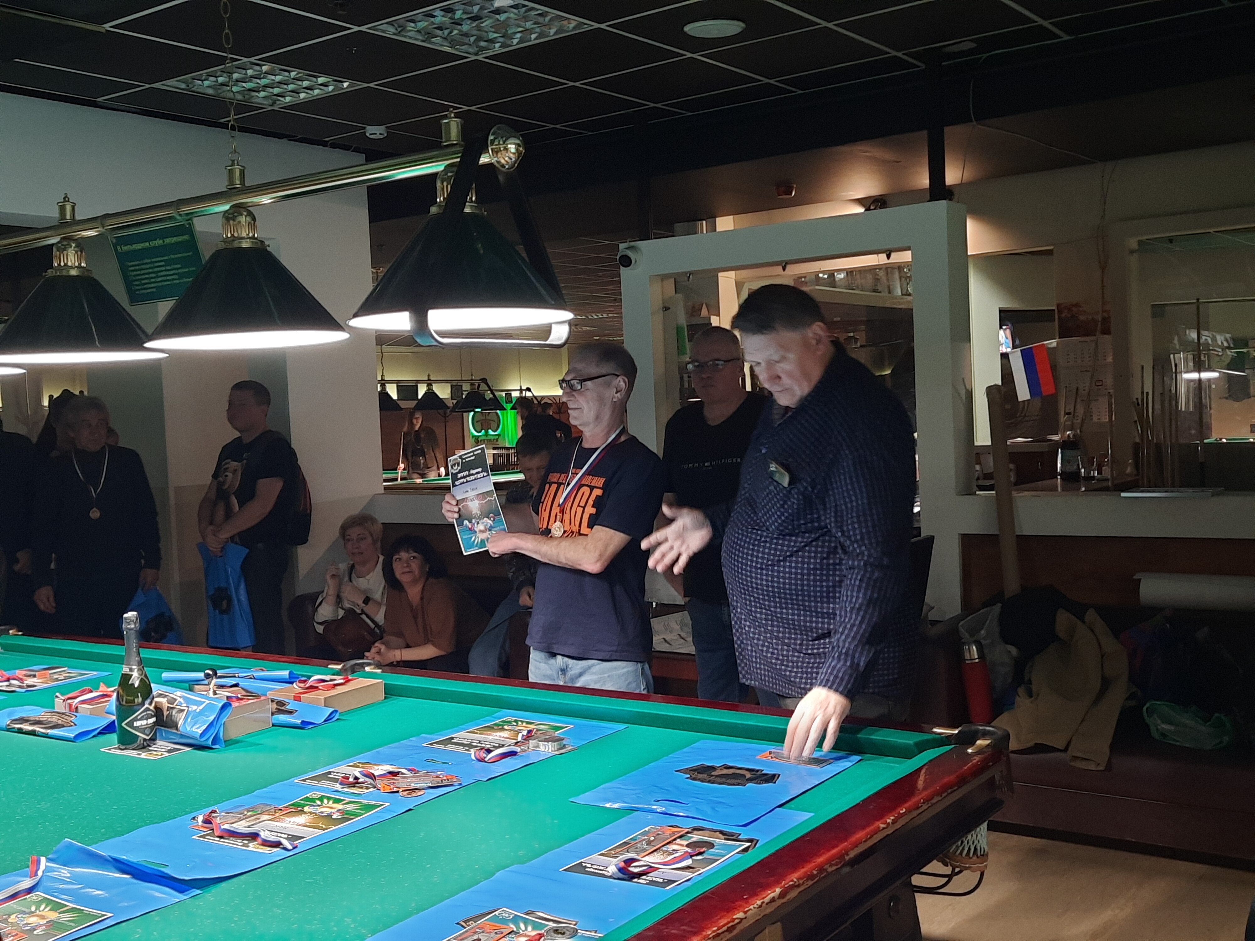 Sharpey Опубликовано: 16 ноября Жалоба Опубликовано: 16 ноября @Верещагин Михаиль! Турнир состоялся! Бильярд был, бильярд есть, бильярд будет быть! Игра традиционно прошла в теплой и дружеской атмосфере, все были на своих местах и четко выполняли свои функции! Всем, кто приложил свои усилия, к данному событию - ОГРОМНОЕ спасибо! Встретились, поиграли, посмеялись! Финал по предварительному сговору группой лиц был захватывающим! Победителю респект! Спасибо вам, друзья! До новых встреч! @Алексей Удача чутка фото! Поделиться сообщением Ссылка на сообщение Поделиться на других сайтах More sharing options...
