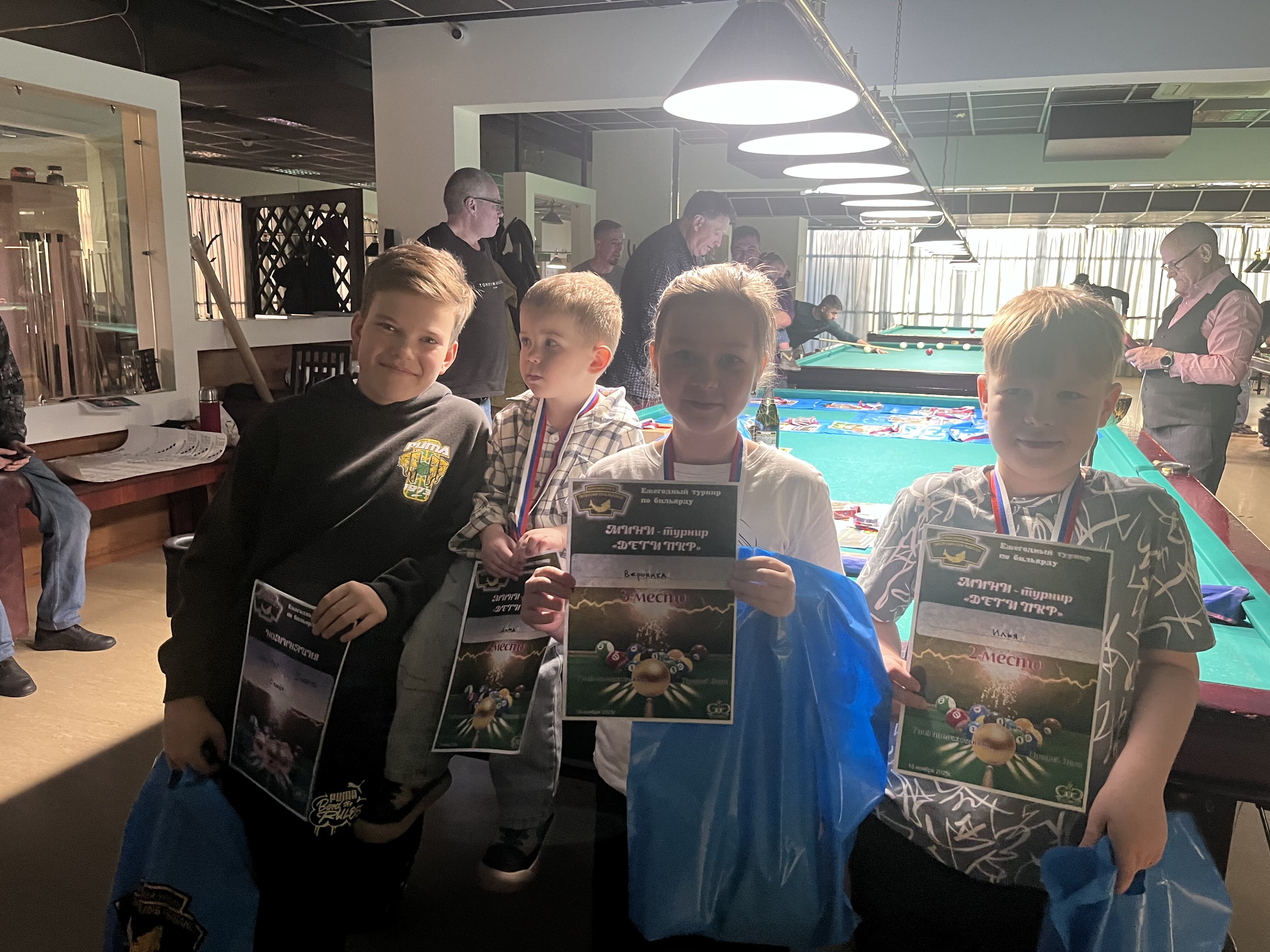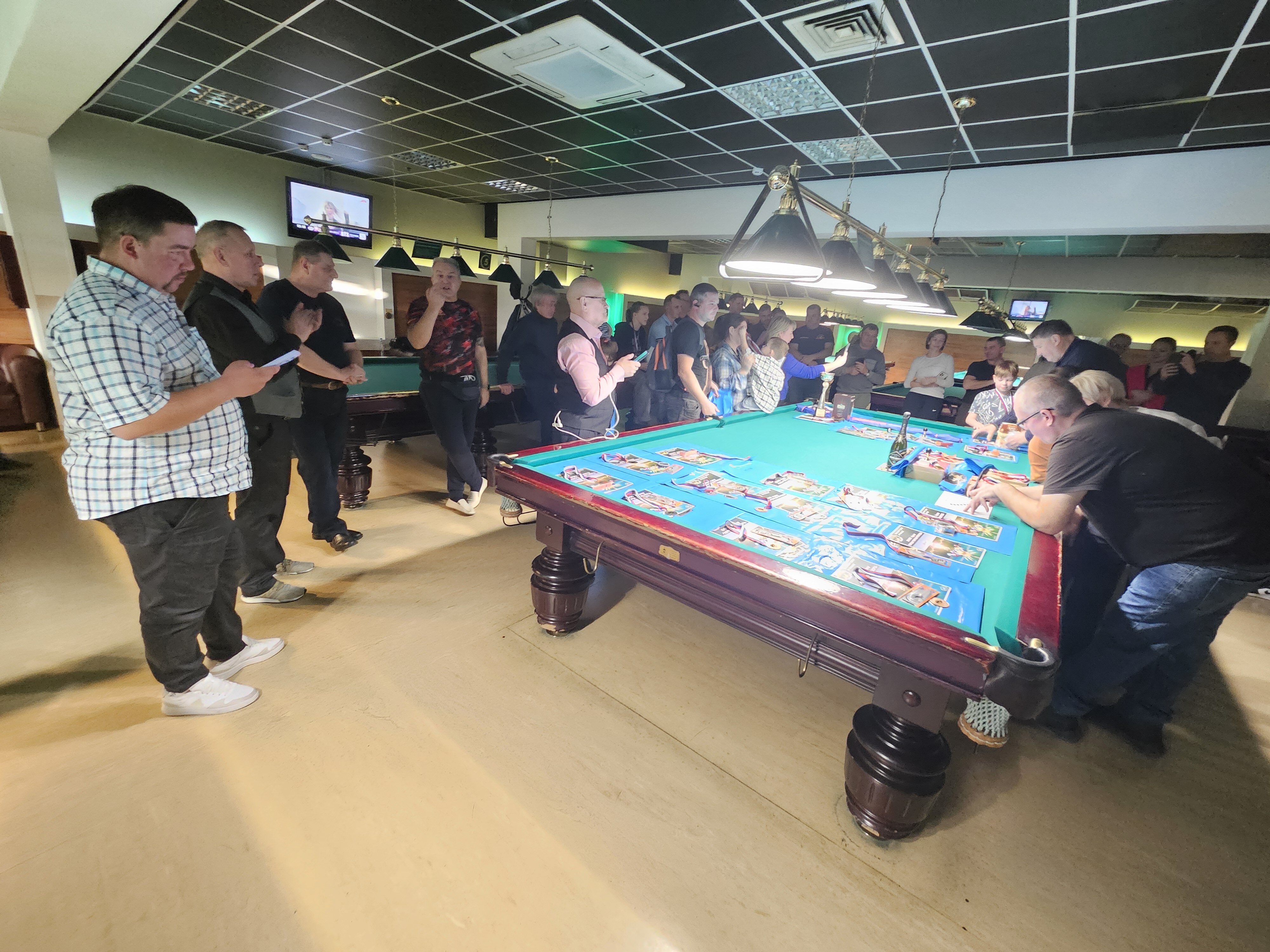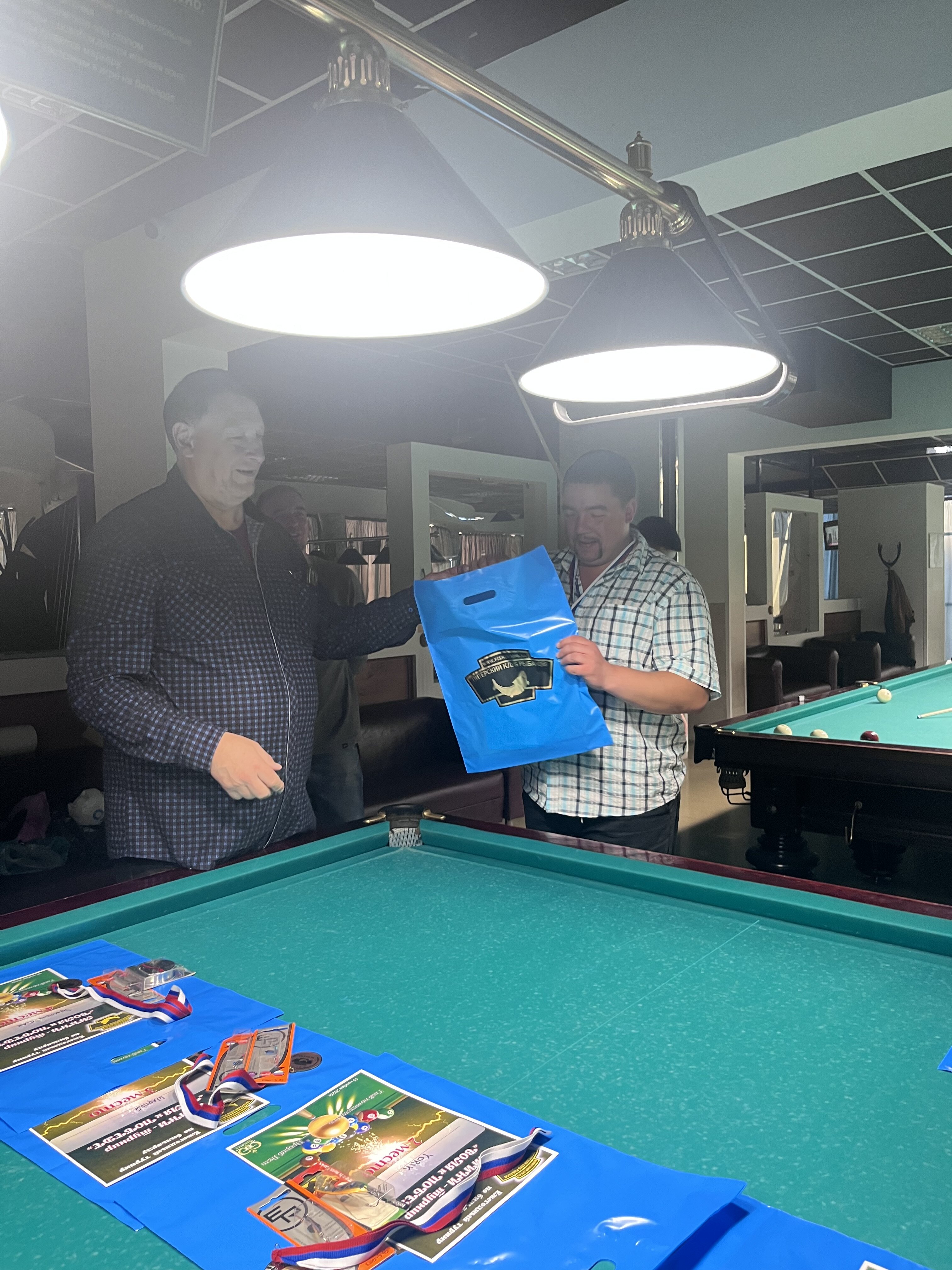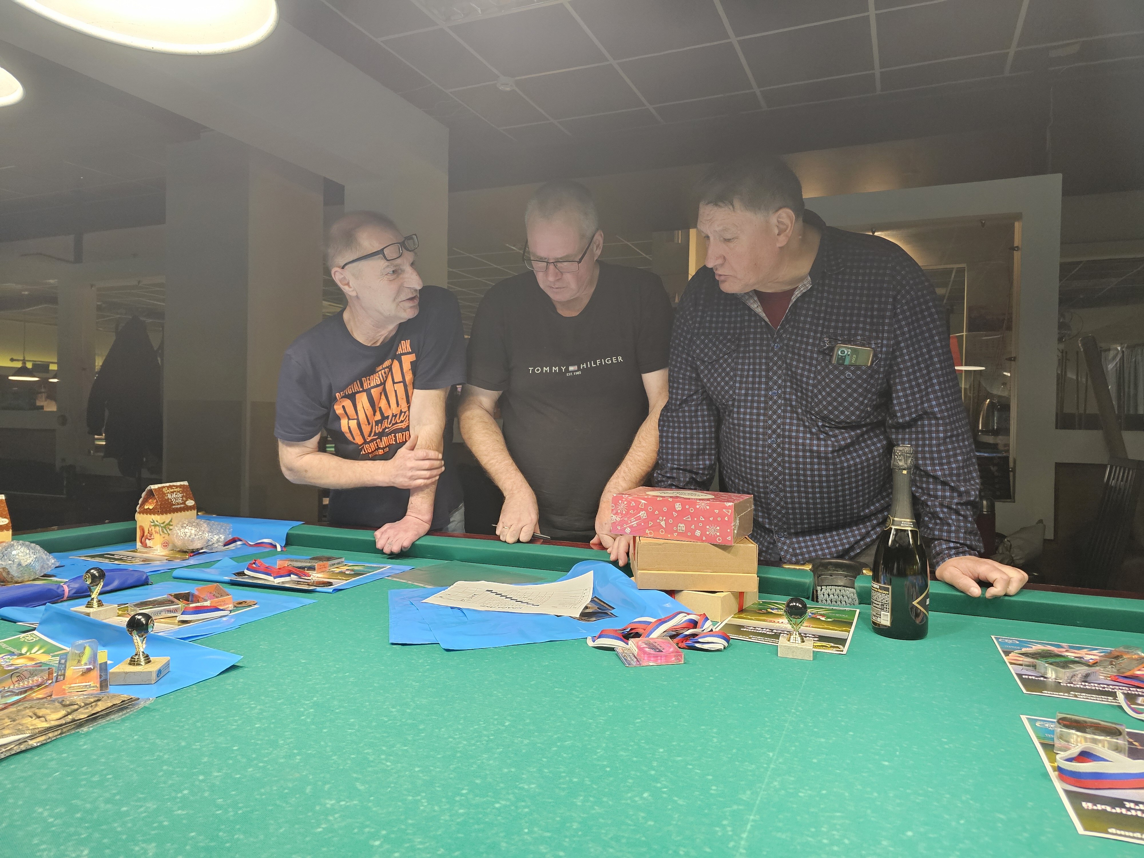 Sharpey Опубликовано: 16 ноября Жалоба Опубликовано: 16 ноября @Верещагин Михаиль! Турнир состоялся! Бильярд был, бильярд есть, бильярд будет быть! Игра традиционно прошла в теплой и дружеской атмосфере, все были на своих местах и четко выполняли свои функции! Всем, кто приложил свои усилия, к данному событию - ОГРОМНОЕ спасибо! Встретились, поиграли, посмеялись! Финал по предварительному сговору группой лиц был захватывающим! Победителю респект! Спасибо вам, друзья! До новых встреч! @Алексей Удача чутка фото! Поделиться сообщением Ссылка на сообщение Поделиться на других сайтах More sharing options...