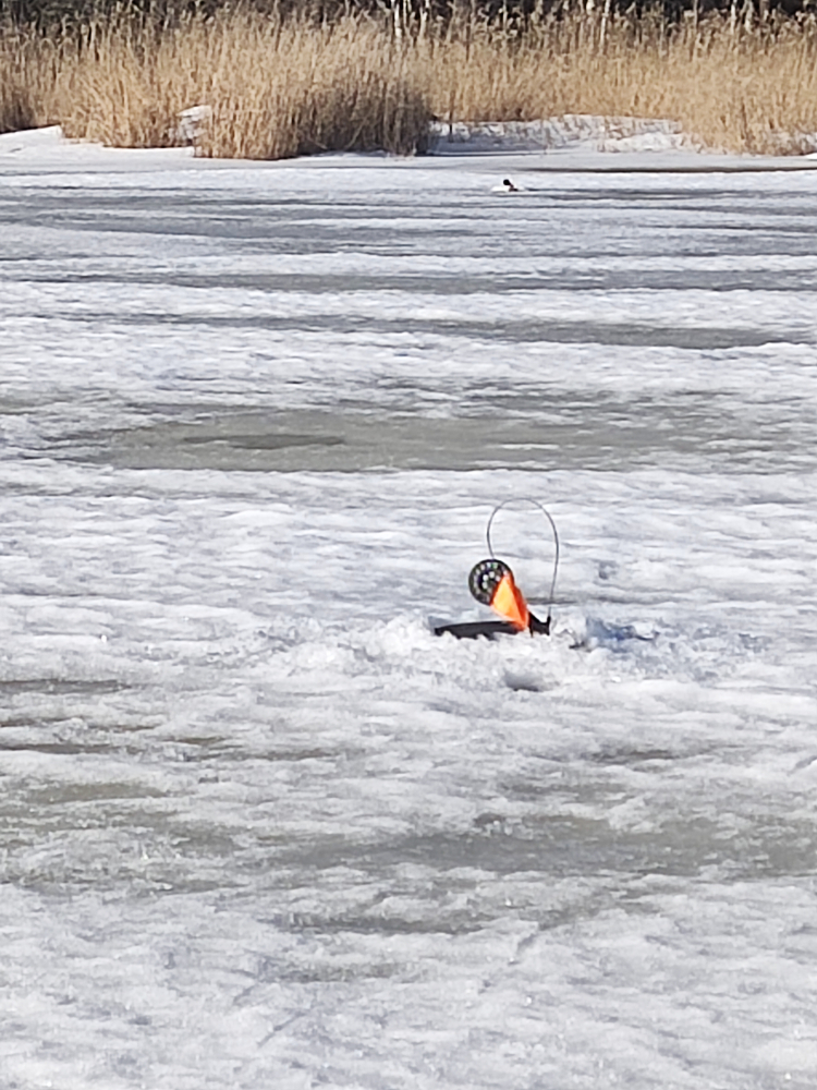 Вчера был на21км,спонтанно.Не собирался,обещали катаклизм но с ветром надули.Ветер был несильный то что надо и солнце.Проснулся около двух,не спится .А позавчера на прогулке в Озерках очень доброжелательная пожилая рыбачка подарила пятнадцать живцов плотвы так что наживка была.Взял ещё одного крупного живца карася за сто рублей и поехал на рыбалку.Не спешил ,чтобы по народу определиться что да как.Но и другие не спешили,рыбаков было немного,руками не махали,выстроились по свалу.Тропа представляла собой канал глубиной до 20см ,удобно если корыто немаленькое и плывёт.В стороне снег,под ним вода,идти тяжело.Рыбаки стояли плотно,я отошёл метров на сто.Потом рыбаков стало больше и у меня появились соседи.Сначала клёва не было,в районе одинадцати побегал,потом в час по чайной ложке.Результат81корюха и две крупных бельдюги.Плотва карася разгромила.Опросил пять человек,результаты от 20 до сорока двух.Ушли все рано,хотя поклёвывало,но без особого жора.Рыбаков от Зеленогорска до Смолячково почти нет,пешком далеко не уйдёшь,да и собаку я думаю надо мощную.Кто поедет при заходе осторожно посередине лужи трещину размывает.Есть живая трещина.Вниз на пузотёрках нельзя,глубокая колея.