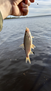 Всем привет с реки Паша! Вчера утром я отправился на рыбалку на лодке. Северо-восточный ветер поднимал волны, которые шли против течения. Я встал на бровку после плато перед ямой, используя два якоря. Опустил кормушку, и плотва сразу начала активно клевать на пучок опарышей на мормышке. Рыба хороших размеров, в основном самки, попался и один шершавый самец. Ловил я до часу дня, затем ушёл на обед. После обеда снова вышел на реку. Плотвы стало меньше, на прикормку подошла крупная густера. К закату ветер стих, и клёв тоже прекратился. В итоге я поймал довольно много рыбы. Ловил на глубине около 2,5+ метров. В улове был подлещик весом около 800+ граммов. Рыба, несмотря на ночные морозы, активно идёт на нерест. Желаю всем удачных рыбалок и крепкого здоровья!
