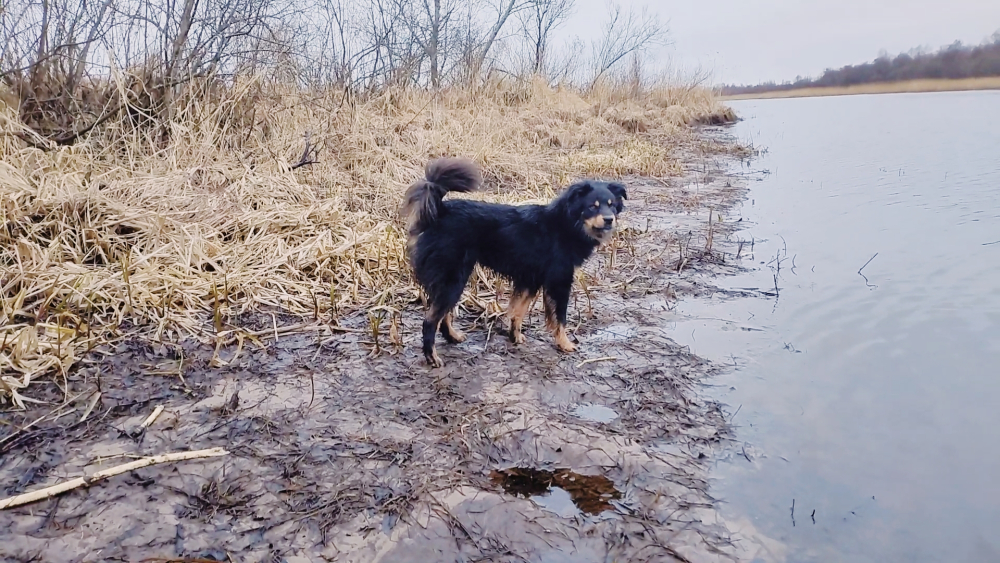Но даже несмотря на неудачу, я получил массу удовольствия от рыбалки. Мой пушистый друг Хотошо тоже был рад разделить со мной это мокрое и холодное утро. Он запрыгнул в лодку и начал развлекаться на острове, пока я разгадывал ребус не берущей рыбы. Он гонял по грязи и воде, лаял на кого-то и в итоге вернулся ко мне чумазый и мокрый.