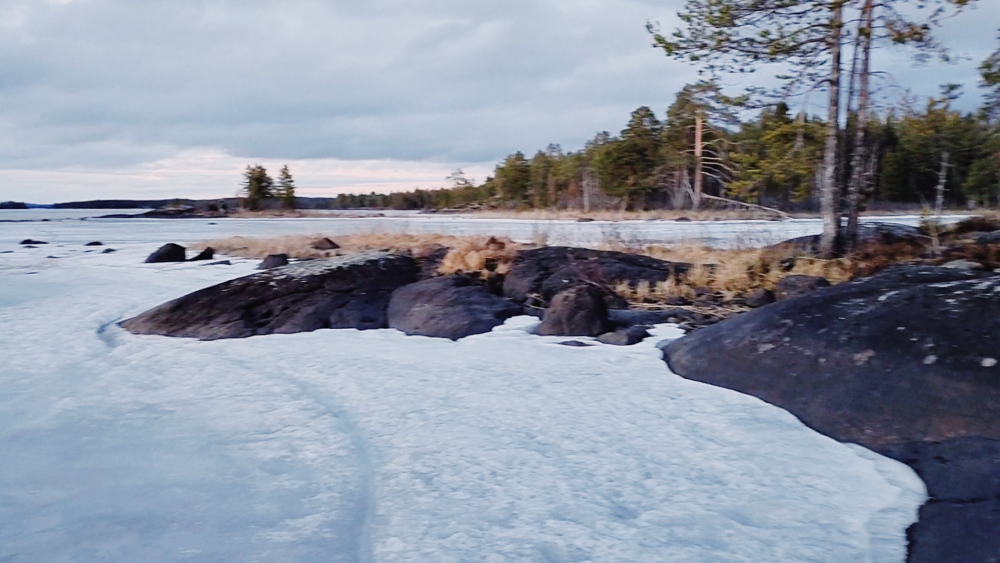 Утром заморозок прихватывает наст, можно идти как по Невскому. Потом солнце начинает активно жрать остатки наста, он шипит, а под ним говнолёд. Тонкий. Ибо не успел нарасти зимой, наверно снегом хорошо прикрыло в начале зимы. Именно поэтому на Ладоге он толще, там позже лёд становился и без особого снега. Именно поэтому вваливаются в середине марте по озёрам, что нонсенс.