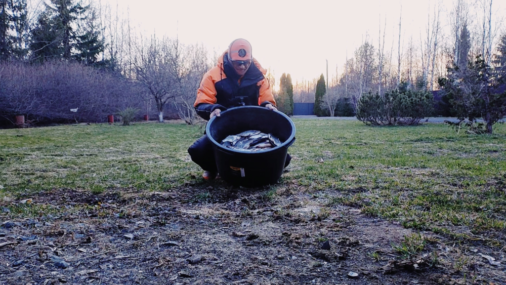 На Свердловской набережной в полдень19.04.2026 года ко мне подбежал шустрый пацан тараторя: "Хочу поймать рыбу! Улиток я уже наловил!" Его симпатичная бабушка рассказала, что внук полазил по отмели промышляя. Они показали мне банку с пятёркой улиток называемых катушками. В это время как по заказу на мой фидер произошла поклёвка. Я подсёк и вывел к берегу крупного подлещика. Бабушка тут же схватилась помогать мне подсачивать. Я опустил кончик удилища фидера к самой воде и подвёл рыбку к нему. Затем под вопли зрителей, мягким махом вытащил рыбку на парапет. Нас всех троих сфотографировали. Когда бабушка увела парня обедать он гордо унёс подаренный ему мною пакет с этим подлещиком и пятком королевских ершей.