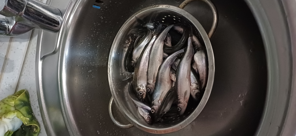 сегодня с 9:30 до 13 ч (в ночь на смену).. На воде лодок 200+, недалече от решëтки глубина 11м, немного взяли.. потом на 1 км подальше отошли.. переодически поклëвывало, потом ветрило поднялся.. Мы спешно смотались. Микатсу 4 л/с двоих с вещами кисло - 13 км/ч, но это не вëслами махать.. Поймали 50 корюх + 1 ëрш. Корюшка мелковата☹️