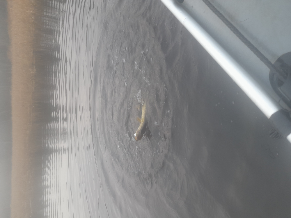 На большой воде был в начале девятого. Окунь есть, но такой активности как в прошлый раз, не видно (возможно из-за волны, ветер запад, как раз в тросту). Редкие поклевки зубастой, вся вдоль тросты.