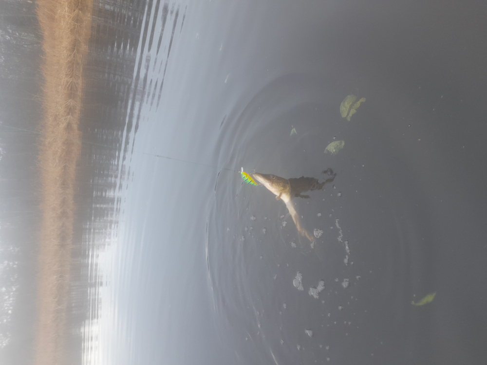 По работе ездил в Соколинское, ну и само собой ехать в такие места, без рыбалки, ну никак нельзя. В восемь был на воде, погода огонь, полный штиль, рыба плещется, раз даже целиком выскочила. Но, клевать не хотела... Перепробовал почти все что было и только на трофейную (нашёл на Новоладожском канале) вертушку взяла, потом ещё и ещё. Двух недомерков утопил и тут хренак и крокодил. Пару раз показалась зубастая у лодки и... Вместе с моей уловистой вертухой ушла. После этого подбор приманки особых результатов не дал. Один шнурок на зеленоватый воблер, пару тычков на белый с красной башкой и обидные сход прямо у лодки на незацепляйку (серьёзная была рыбина). Как итог, домой без рыбы...