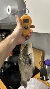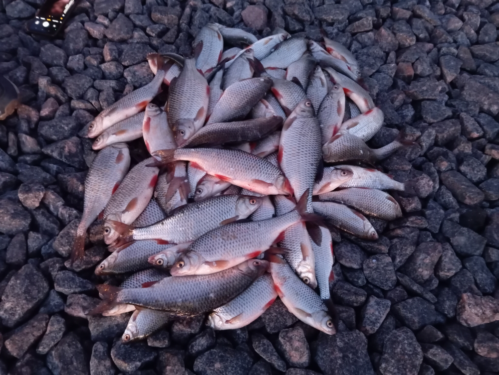 Нырялкой это не назовёшь, но во время так сказать плавания я набрёл на место с хорошим жирным карасём. Стадо этих серебристых рыб я проредил на несколько штук, самый крупный у меня на почти кг, а самый карлик на 600 грамм.