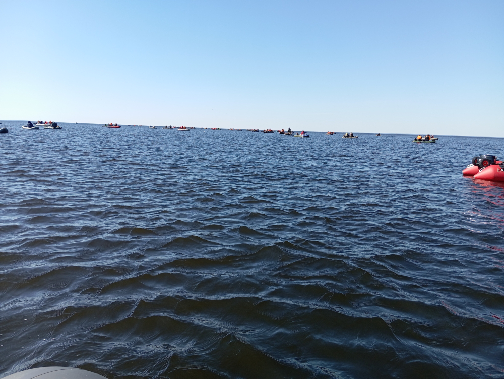 В четверг 16 апреля в Шпунтах было на воде вдоль фарватера лодок четыреста на глазок без подсчета, конечно. Погода- прекрасная- волны и ветра нет- когда возвращались в 17-30 волна появилась небольшая. Клёв умеренно разнонестабильный- от мелкой до средней- но были и покрупнее- в общем итоге от 1,5-3 кг на рыбака за неполный рыболовный день.