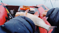 Всем привет. Вчера рыбачил в районе Приветенского на заливе с лодки в доль берега . Спининг вертушка троечка . Начало было грустным но желание поймать неотпускало упорно обкидывая все каменные места. В районе песочное была первая поклёвка окунь грам 300. С переменным успехом удалось ещё 4 поймать . Самый крупный 420 грамм. Обратный путь принөс ещө двух мелких которых пришлось отпустить . Рыбалкой был доволен что с уловом прибыл. Решил отдохнуть перекусить и после обеда сделать вторую попытку лодку оставил на берегу перевернув. После перекуса уснул . Проснулся от того что на машину шишки и ветки падали с деревьев. Выдя на берег обнаружил что лодки нет. При осмотре места видны только мои следы. По программе посмотрел направление ветра по всей вероятности район Шепелево и Соснового бора унесло ветром. На этой ноте рыбалка . закончилась.