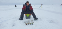 Сегодня с 7-40 до 11-30 поймал 3 огурца. Довольно сильный западный ветер гнал поземку, ловить было совсем не комфортно.Кто сегодня был в палатке не прогадали.