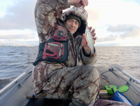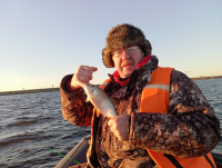 Вчера, после ноч. смены поехал на Юж. дамбу гор. сторона.. Увидеди ещё 2а экипажа, они на корюшкк с лодки. Мы вышли в 12 ( пока лодку накачаешь, перевязали мормыхи в авто, по рюмахе накатили).. Ветер был 6-9 м/сек С/З.. не криминал, но руки мёрзли - жесть! Насадить опарыша пальчики отказываются.. глубина более 7 м.. сетка с сухарями на дне рулила! Поймали 9960 гр ( электр. безмен).. стояли на одном якоре, болтало ( то запад, то север) соответственно снос лодки от прикорма.. У меня рулила попловочная уда с светомормыхой, у Лёхи бортовуха (с моей хитрой светомормыхой).. Клёв набегами, 2е плотвизи 450гр, штук 5 - около 300 гр.. отпустили 100 шраммовых штук 12 плотвичек.. К вечеру вылезло солнце и лодка обмёрзла, еле свернули, пвх ткань - капец дубовая! Корюшатников ( 2 экипажа) не было, видимо "тухло" у них..