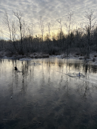 Прокатился по Кировскому району Ленинградской области. Заехал в Шлиссельбург. Вода здорово ушла. На Неве, возле берега, лед 3-4см. Каналы промерзли получше. Один рыбачек ловил в канале между дорогой и заводом. Дальше поехал в сторону Малуксы. На лесных озерах, в метре от берега, толщина льда 5-6 см. Но дальше начинал трещать. Было стремно, так что ограничился прибрежной акваторией.