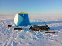 Всем привет!!! Причастных с днём Святого Трифона. Сестрорецк,гаражи. Вчера была дилемма-ехать или нет. Несмотря на прогноз,решили ехать. Около 7 на стоянке были третьи.Потом народ начал подтягиваться. На улице - 18. Выехали на лед-впереди огни в районе форта Первомайки. Рванули туда.Проезжаем форт-огни впереди,слева Горбатый уже остался.Руки замёрзли,встали. Огни вдали. Куда ехать? Впереди похоже уже Обруч...Никого рядом. Разворачиваемся. Идём в обратку,едем,встаём,смотрим -навионикс-тел сел. На Гармине нашли прошлогоднюю точку-поехали.Замёрзли. Вплоть валить до берега.Настоял,нашли,встали. Палатка,печка,отогрелись. Две лунки в палатке первые,удочки снизу блесна дали первый результат. 2 Штуки! Ура! от ноля ушли! Хоть и дует, вне палатки поставили 4 удочки. К 10 проклюнулось немного,и так до 14 -ти.С переменным успехом,даже успели покушать,наковыряли 61 шт на 1.8 кг. Мелких три,крупных нет. С икрой мало. Прибыли к гаражам последние,рядом только микроавтобус был. Всем НХНЧ!!!