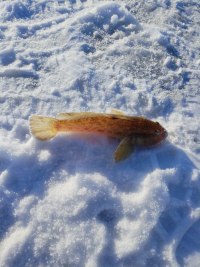 Сегодня экипаж 3 человека. Погода жесть. Итог 8, 7, 7 корюшин. В прилове одна бельдюга и один ёрш. По эхолот у рыба есть, но не ест.