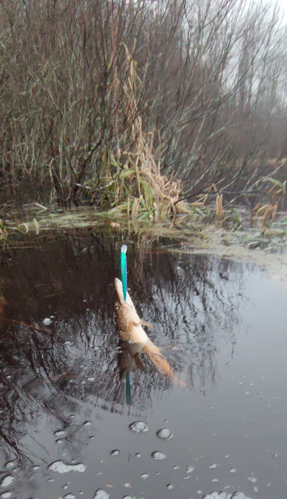 Вечером пятницы Яндекс вдруг на весь световой день субботы отменил дождь, правда падающее давление в субботу сменялось растущим в воскресенье, также почти на противоположный менялся ветер... Но, возможно (...но это не точно!), последняя спининговая рыбалка в уходящем году... Воды на берегу "чуть ниже пояса", в "летних" ботинках долго стоять в воде как-то уже не комфортно (...где мои 17 лет...), почти что самый короткий день, и тишина... Но, несмотря на коматозное состояние всего живого, время обеда отменять не стали и к "столу" вышла таки парочка зубастых красавиц порадовав и свечками, и хорошими подтяжками ко дну... Получились, конечно, не очень, но в моем положении удобно было только отпускать положив рядом...