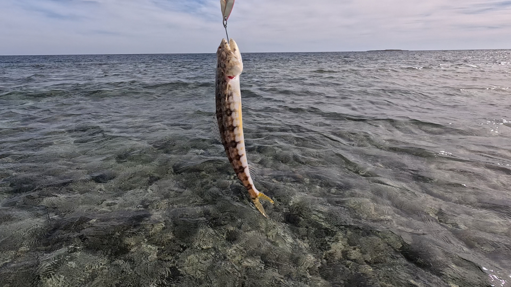 До саргана не дошёл, но зато несколько скорпен зацепил остальное разноцветные карасики и пару щучек, похоже на них по пасти но конечно это не щуки.