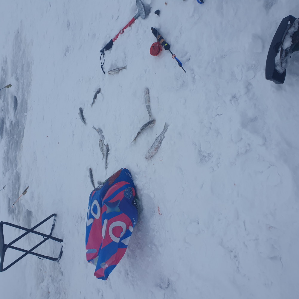 Доброго дня . По рыбе , она есть и на 10 и на 17 м. С 11 ,30 до 16.00 выцедио 130 шт. ВАЖНО. Для того чтобы пешеходы и собачники не плутали мы установили на льду вешки из брускв 20^50 , длинная сторона сооринтирована на берег парковку шанца .Убедительно прошу их не ломать ( это не сети)