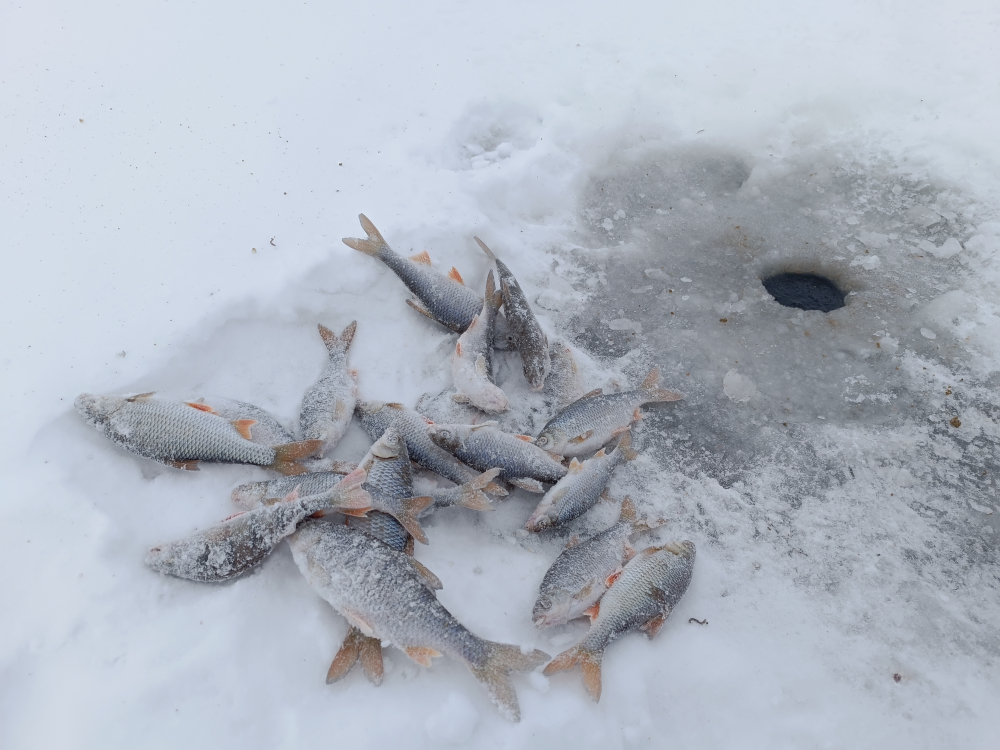 Приехал в 7 утра на пляж сестрорецка, пол часа топал в море, встал на глубине ~6-8 метров, закормил. Два часа глухо, ни единой полёвки, потом на точку подошла стая плотвы, до часу дня дергал красавцев с перерывами в пару минут. Потом понял что набрал достаточно, да и зябко стало, ушел. Ловил на мотыля, прикормка зимняя готовая Дунаев. Лед отличный 20+ точно.