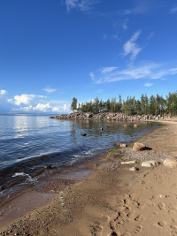 Вышел в Ладогу на 5 метров и влево. Дошёл почти до Птинова. Потом на 3 метра и обратно. Поклёвывола. Средне-крупный окунь. Цеплялся слабо. Много сходов. Пришлось каждого подсачивать.