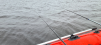 Из Криниц до Сумской. В Ладоге ни кого. Вернулся в протоку, где полавливали мелочь. Поймал микроокуня. Пошел в Ладогу влево, метров 300 от камыша. Глубина 1,5 м. Кормил. За час ни одной поклевки. Ушел в берег к камышу. Глубина 30 см. Вся рыбалка под дождём. НЕ клюёт. По газам и домой. Промок на сквозь. В гараже с лодки слил два ведра воды. В дождь больше не поеду.