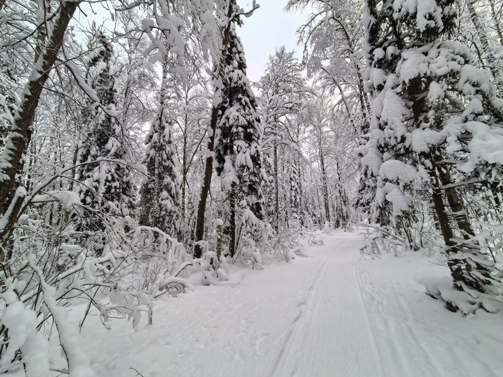 Прогулялся по заснеженному лесу до бухты "Глубокая"))) Глубина "Глубокой", как и предупредили местные, оказалась метр с кепкой (в прямом смысле)... "Свою" стайку полосатиков вроде и нашел дёрнув с 3-4 лунок с десяток живцового размера, но предпочёл бурить лед дальше... Народ к середине дня стал прижиматься к берегу и около 3-х почти все свернулись...