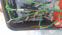 Выход из деревни. От машины до точки 1.7 км. Глубина 13 -14 м. Ночью ушел лёд. Получается что сидели не далеко от воды. Лёд хороший, погода не очень, клёв не очень. В час домой. Итог 18 штук. Наживка окунь.