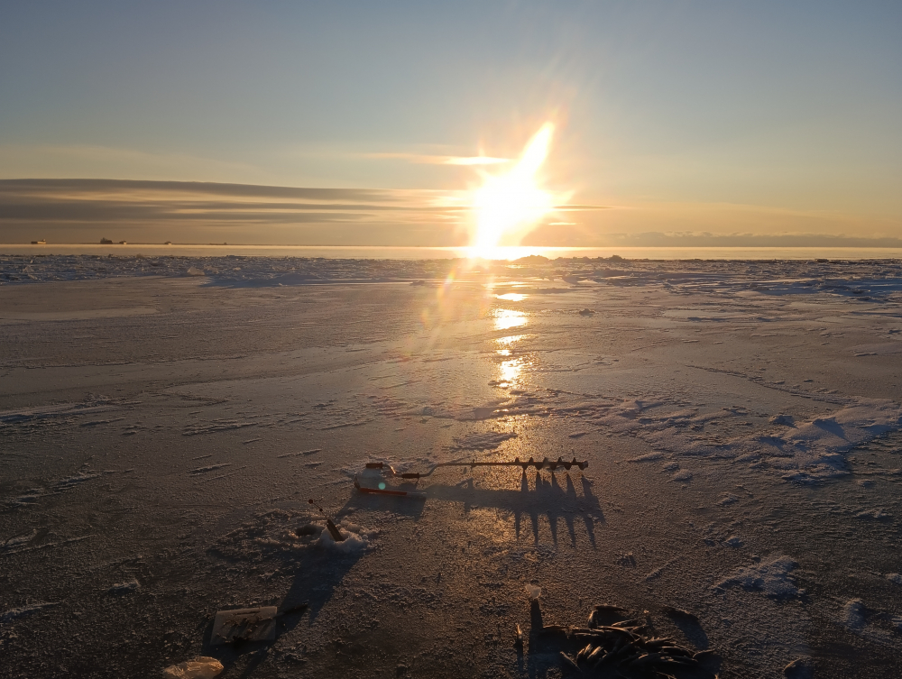 Вчера. Бухта Тихая. Морозно, солнечно и по рыбе плохо. Но сезон открыл и это главное.