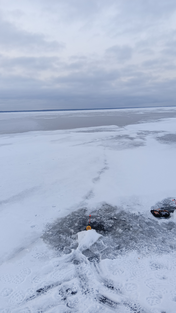 Бронка. Сегодня с 8 до 12 00.на троих не одной поклёвки. Лёд 10 см. Стояли на 6 метрах. 500 м от берега дальше новый лёд 10 см