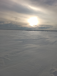 Сегодня посетили оз.Балахановское, ранее не были с ним знакомы, но слышали много хорошего. Озеро встретило нас относительно приветливо. Уходящие со льда рыболовы рассказали , что ничего не ловится, кроме мелкой густеры, плотвы и небольших матросиков. Жерлицы добычи им тоже не принесли. Лед оказался неравномерной толщины,где то 15см, а где то и 5-7см. Местами очень много снега , а местами воды (но техника ездила). Ветер был злющий, морозило не плохо.