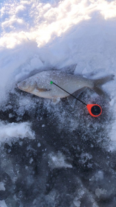 На блесны было поймано десятка два окуней весом от 30 до 100гр, густера и несколько ершей. На жерлицы сработки были, но холостые. Клев закончился примерно в 12:30, дальше один мелкий окунь с 3-5 лунок и надо еще уговаривать.