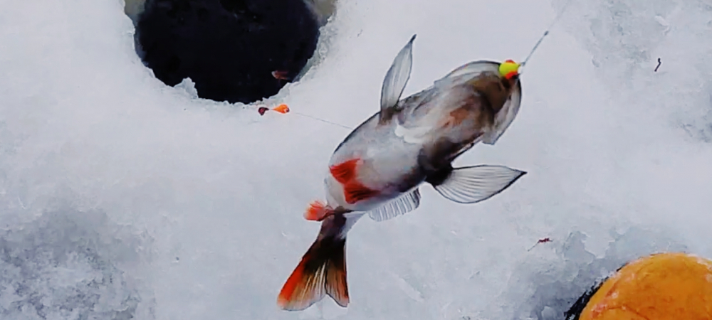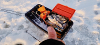 Сегодня с товарищем и его женой поехали на рыбалку. Определились с местом, приходим, завсегдатые уже на месте. Разговорились, ну вот вчера ого-го. Хорошо, думаю, и рванул на другую сторону к заповеднику. Ставка была на то, что окунь с утра будет по краю ямы и глубже. Первая лунка — балансир, выше мормышка «звёздная пыль». Качаю, хоп — подбил, дальше хоп — походу по морде, и вот она, долгожданная поклёвка, подсечка и приятная тяжесть. Вытащил хорошего окунька на балансир. Ну, думаю, отлично, всё сейчас будет. Следующий некрупный позарился на мормышку. Достал удилник с мормышками и молчок. Бурю, бурю обрабатываю, ну ничего. Смещаюсь метров на тридцать, вот они, родимые, один за другим на мормышку, но размер для лисицы. Двигаюсь дальше по бровке, и на тебе, нашёл ловлю, размер на завялку. Созвонился ребятами, у них десяток и молчок. Пришли ко мне, смотрим в камеру, рыба отсутствует. Ребята вернулись на другую сторону реки, я остался. Возвращаюсь на утренние лунки, что-то ещё кое-как подловил. Непонятно, сижу размышляю. Возвращаюсь, где хотя бы завялочные были. Начинаю качать балансир, и как понеслось, на мормышку, что сверху, раз за разом окуни вешаются. Решил балансир поднять, и вот оно, счастье, крупнее окунь стал охотно атаковать балансир. Ура, в одиночестве наловил полный рыбацкий ящик. Целый день мне понадобился для того, чтобы понять, где крупный окунь есть. Мужик на собаке разъезжал туда-сюда. Как проедет, поклёвки прекращаются. Был бы эхолот, сани, и ящик уж точно набил до отказа. Ладно, получилось как есть.