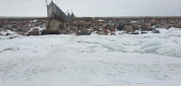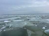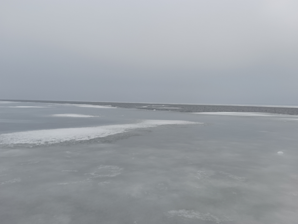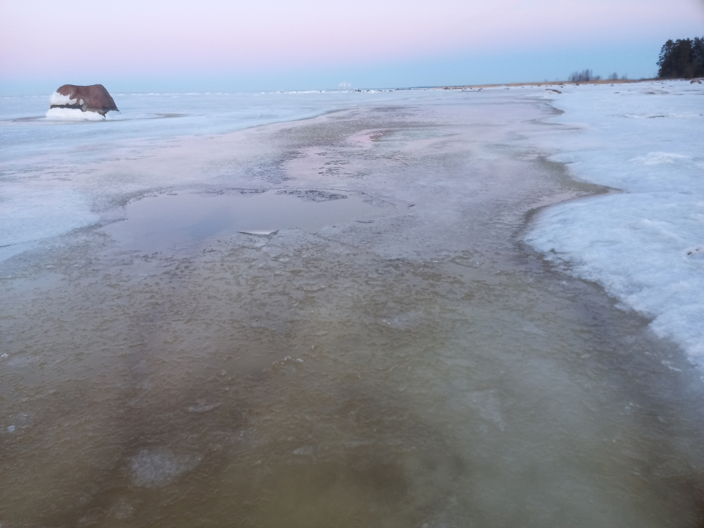 Приехали на колгомпля, навстречу 2 машины. Льда нет. Вышли. У берега крошево, метров 200. Далее поля.