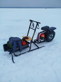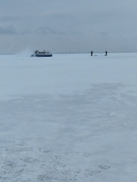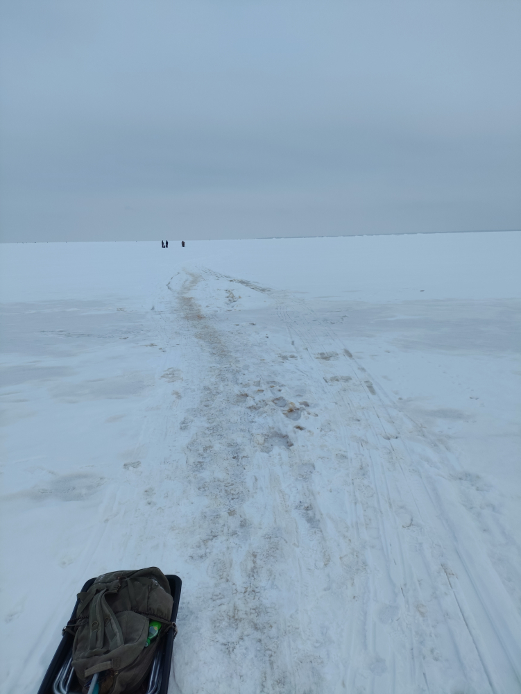 Всем добрый день. Сегодня попытались поймать корюшки. Стартовали на снегоходе с пляжа(шпунты) и двигались в сторону Толбухина маяка. Справа от маяка примерно в километре провалились. Снежик утонул, сами выбрались. Будьте аккуратны ребят. PS. Дай Бог здоровья тем ребятам на собаке которые вернули нас к машине.