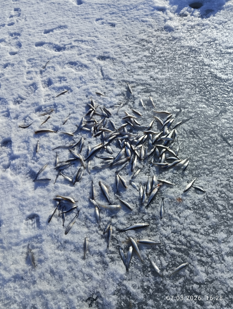 07.03.2026 Старое Гарколово на тех же лунках что и в понедельник.Глубина 19-19,5 метра. По рыбе 159 хвостов, по весу получилось 4,3кг.Всем нхнч!
